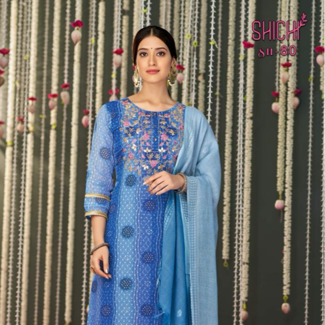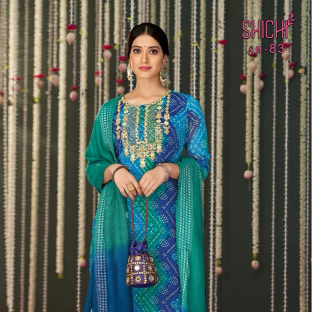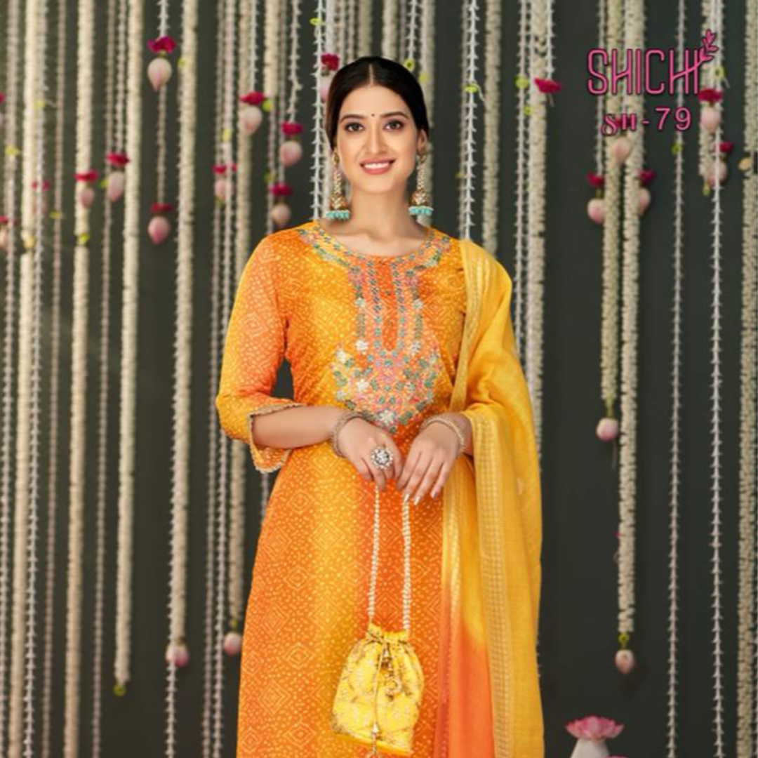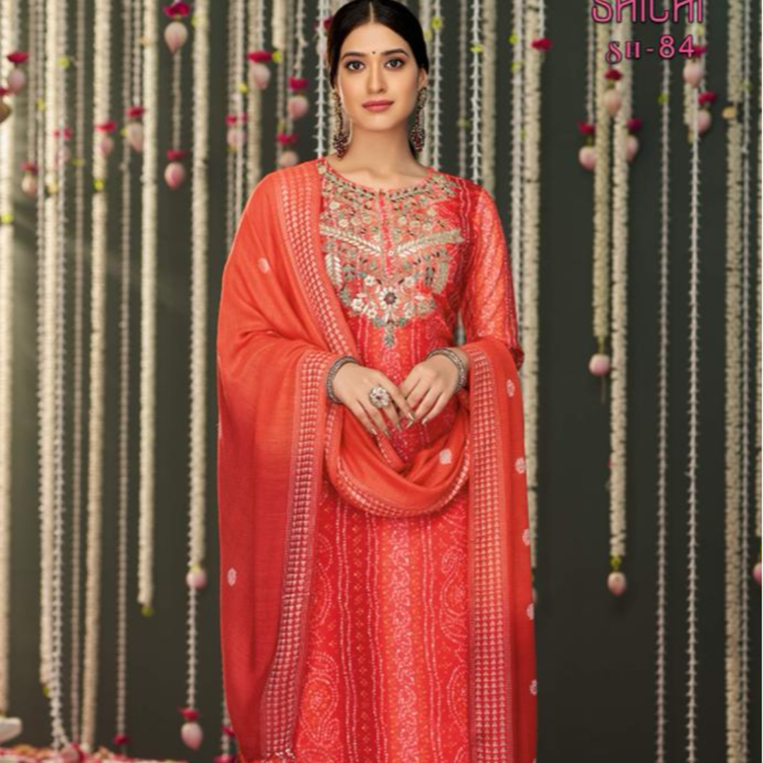 Bandhani print with gota Patti multihead embroidery highlighted with heavy laces