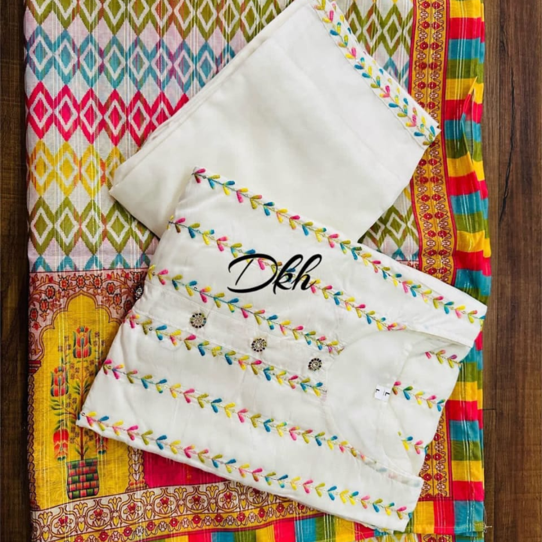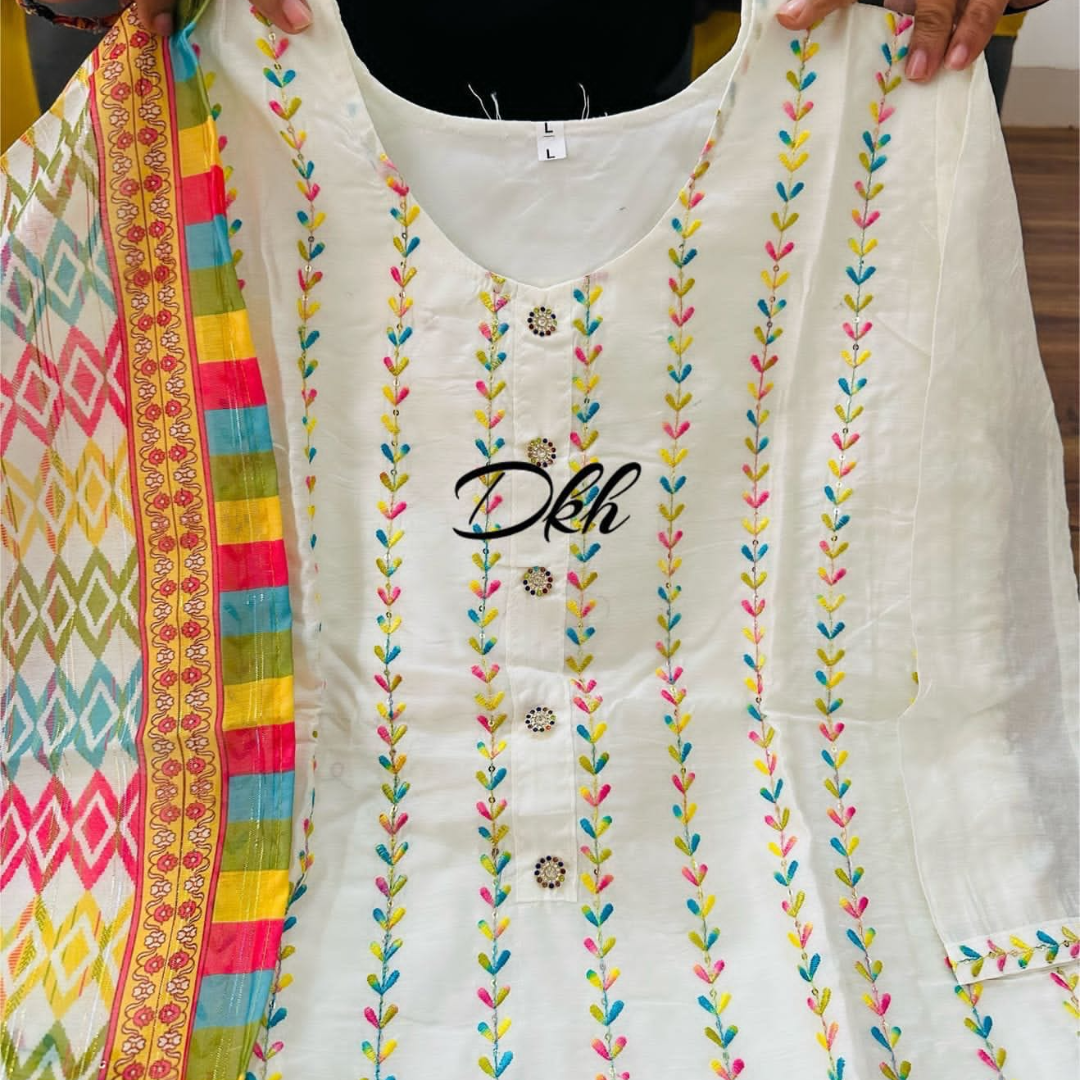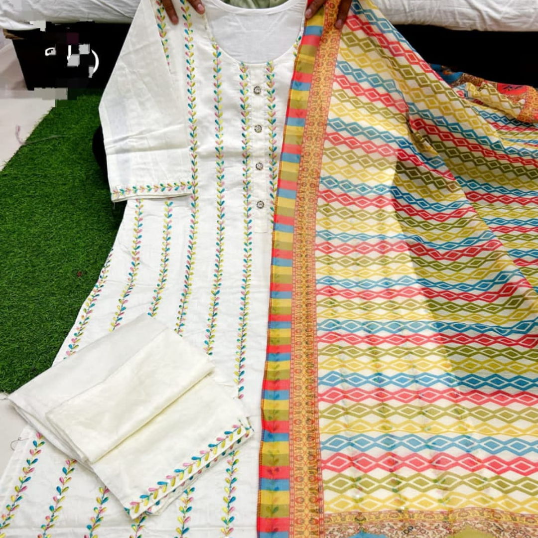 Premium cotton silk kurti having lining insidewith pants paired up with beautiful Dupatta..