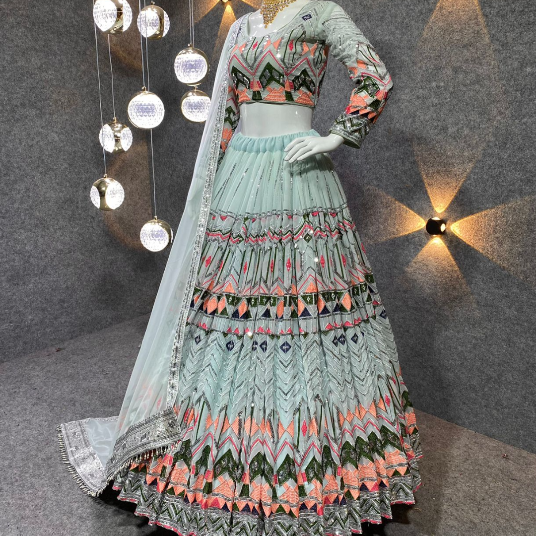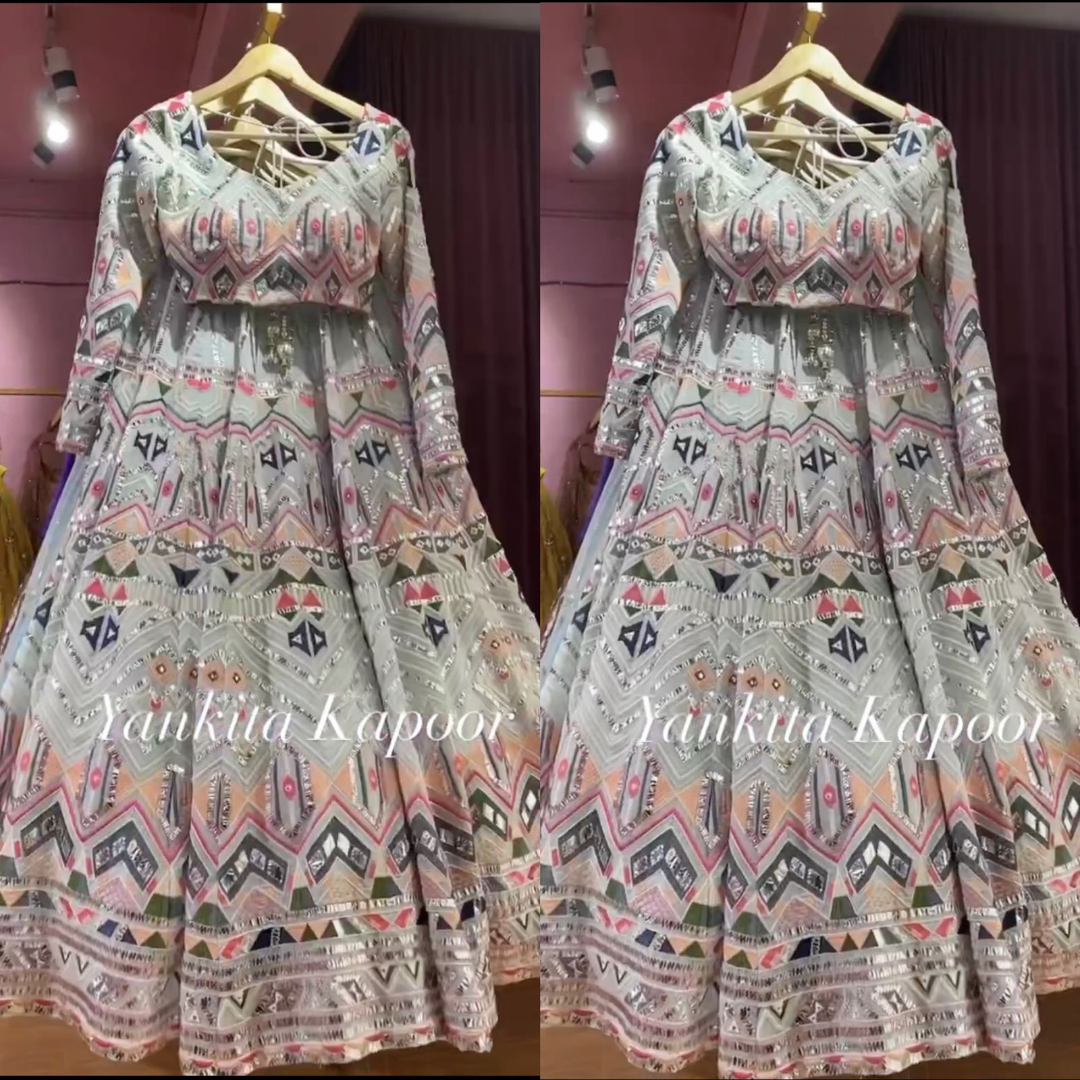 π Size :-Free Size,Lehenga: Length-42" Inches Width-up To 42 to 44". Flair bottoms -up to 3. Mtr.