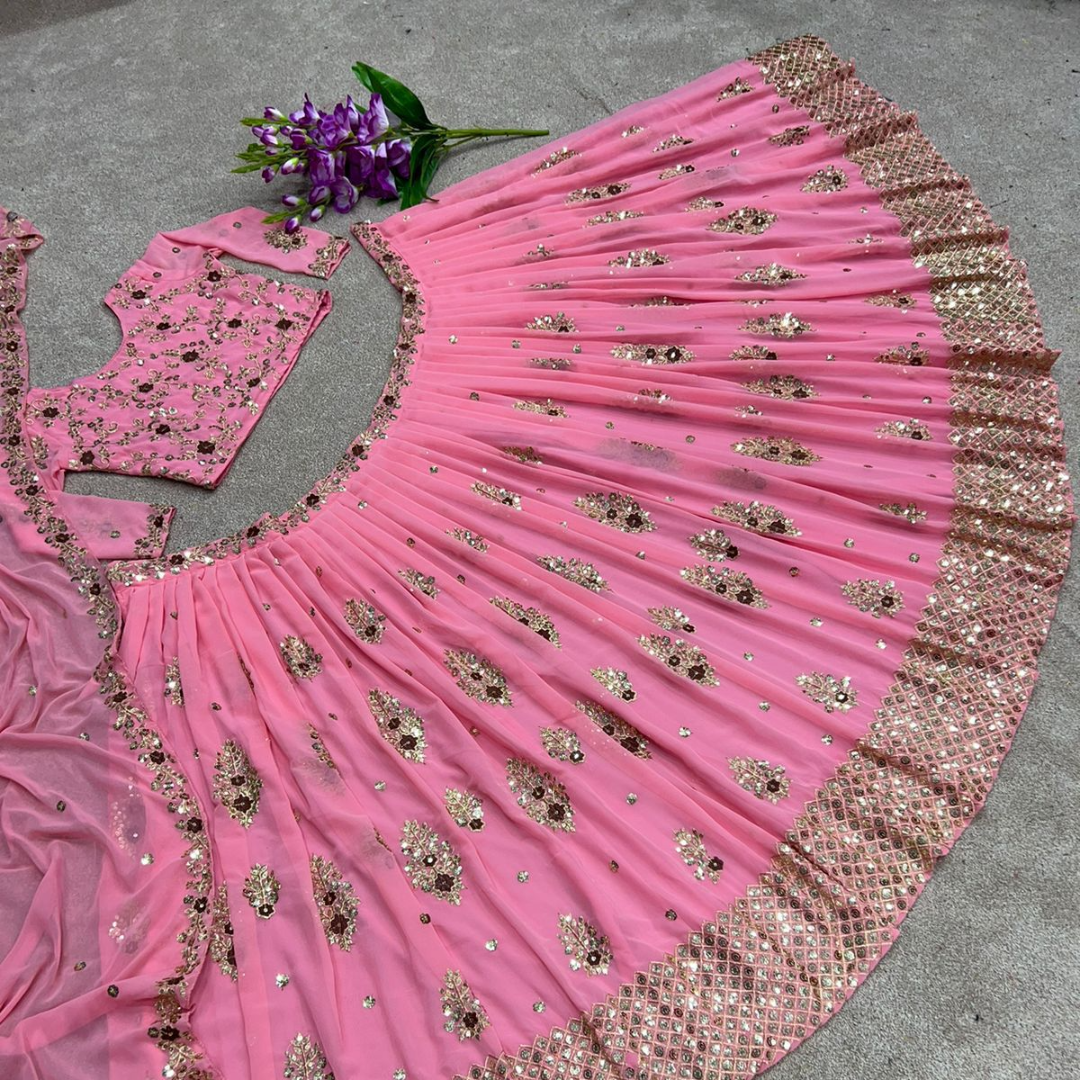 Lehenga Fabric : Faux Georgette With Heavy Embroidery 5mm Sequence Work