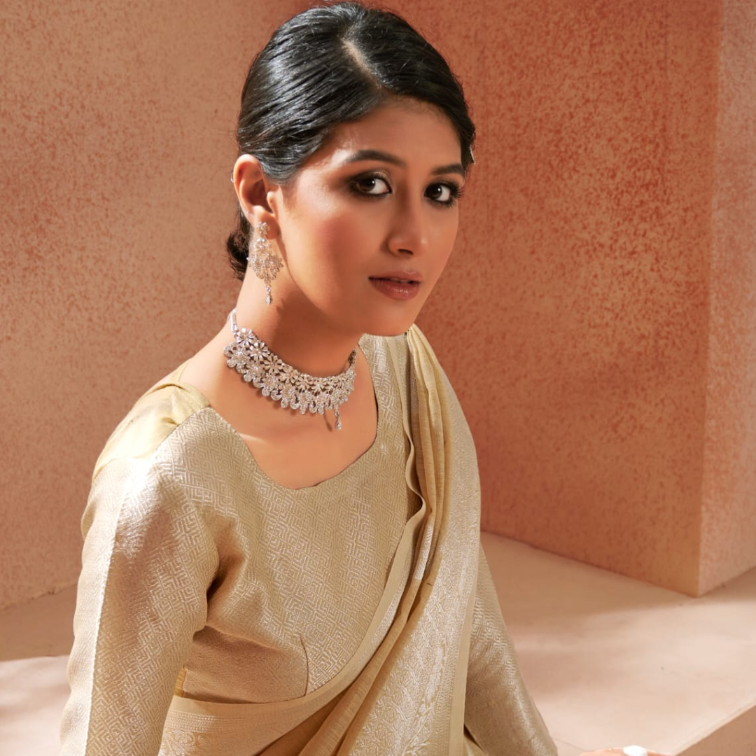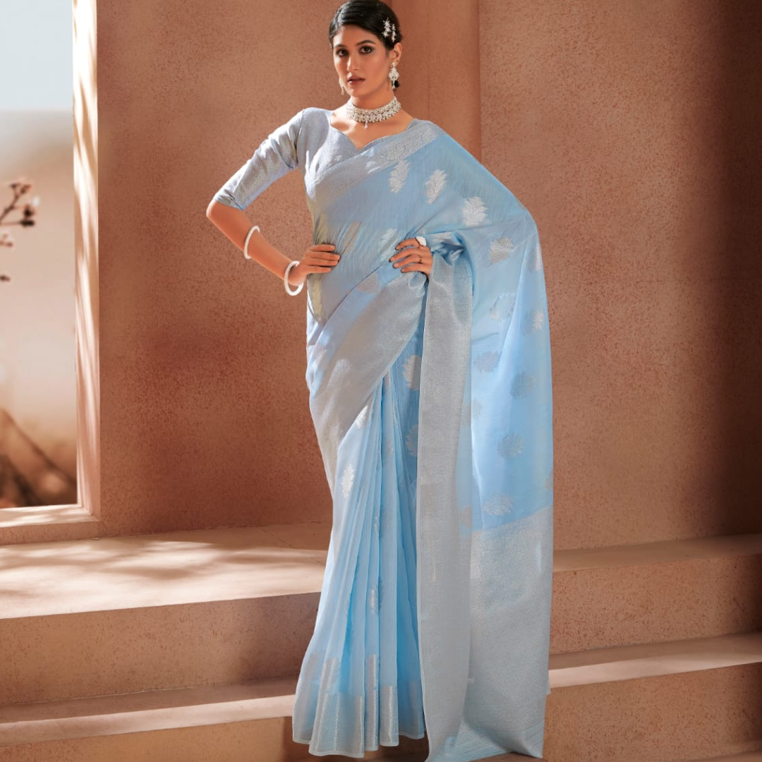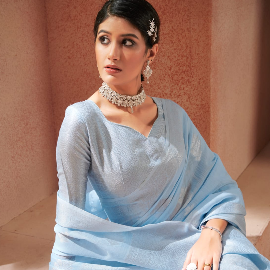 ➡Fabric - Modal Silk With Silver Zari Weaving
