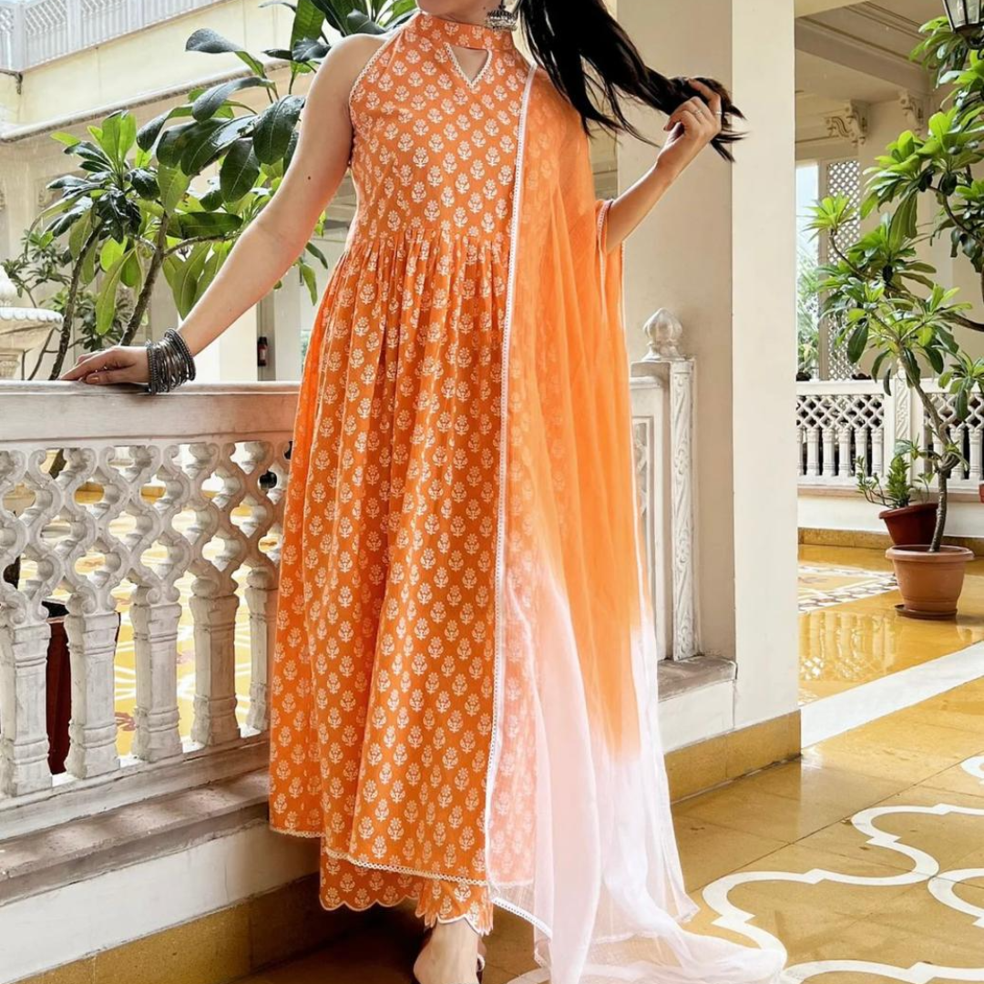 Look straight out of a dreamy movie set as you turn around and walk in this elegant flared suit ! The perfect traditional wear