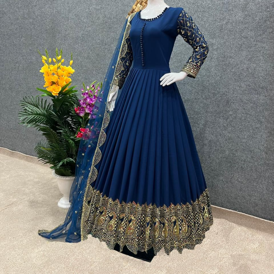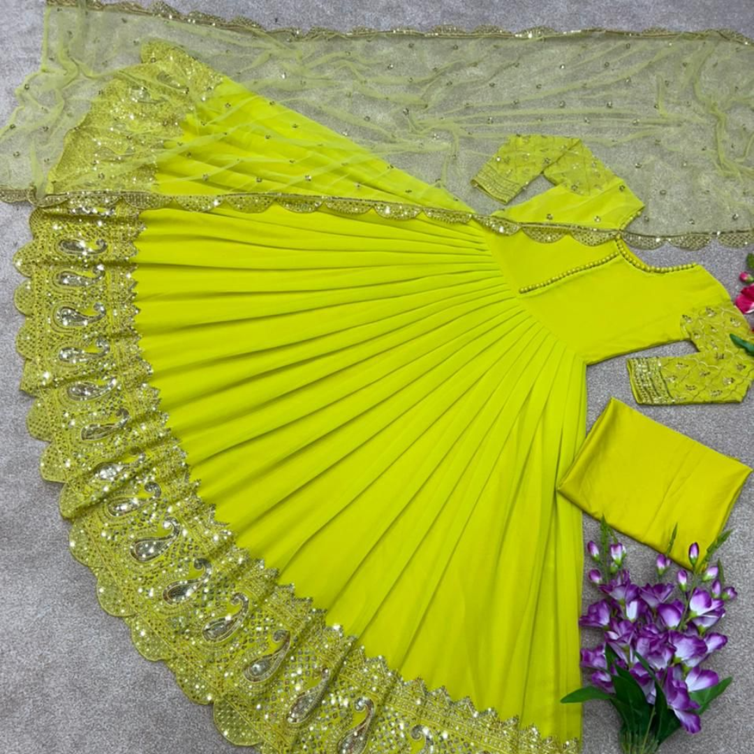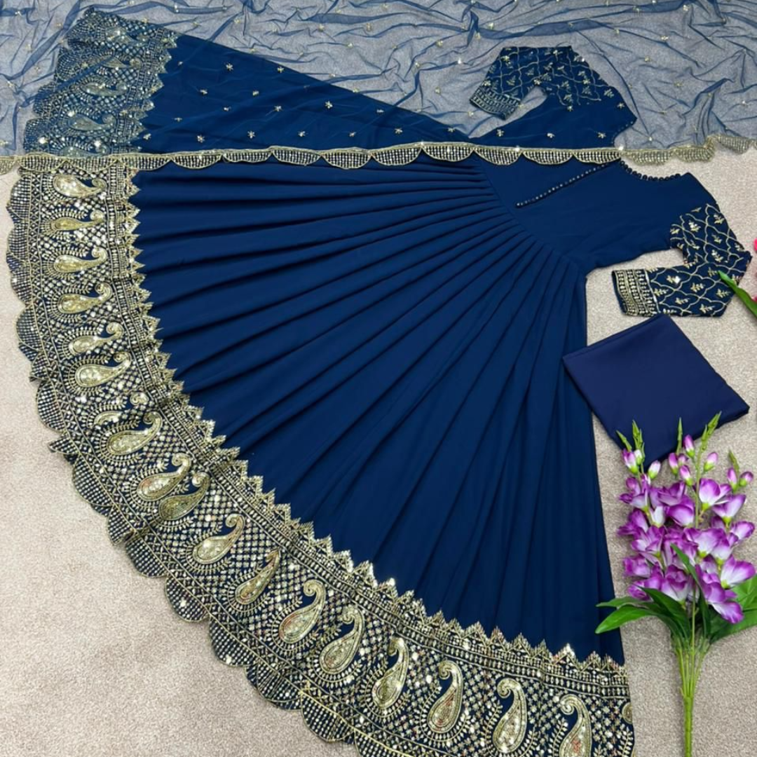 Gown Fabric * :Faux Georgette With *Embroidery And 5mm Sequence Work
