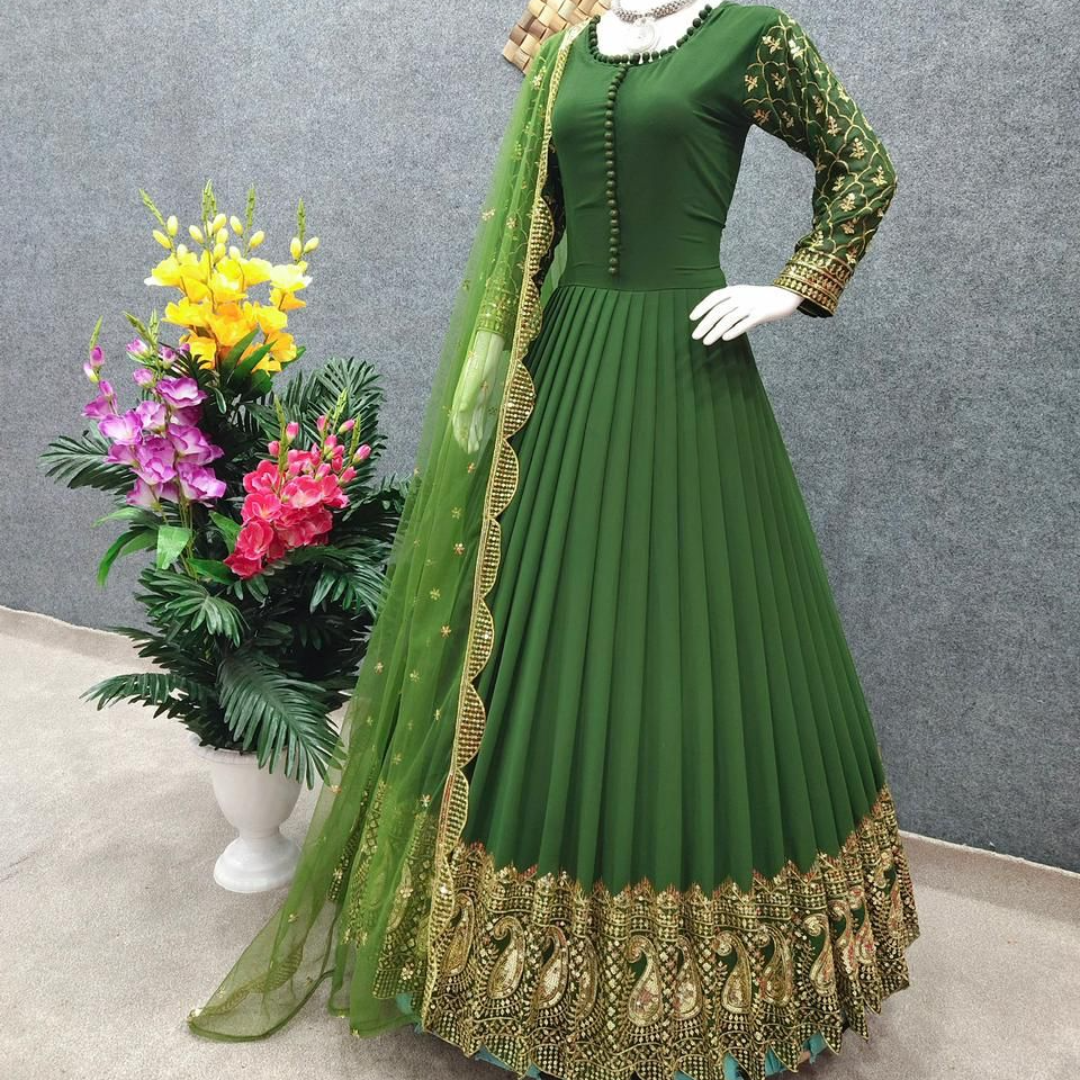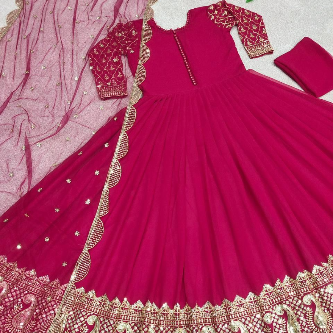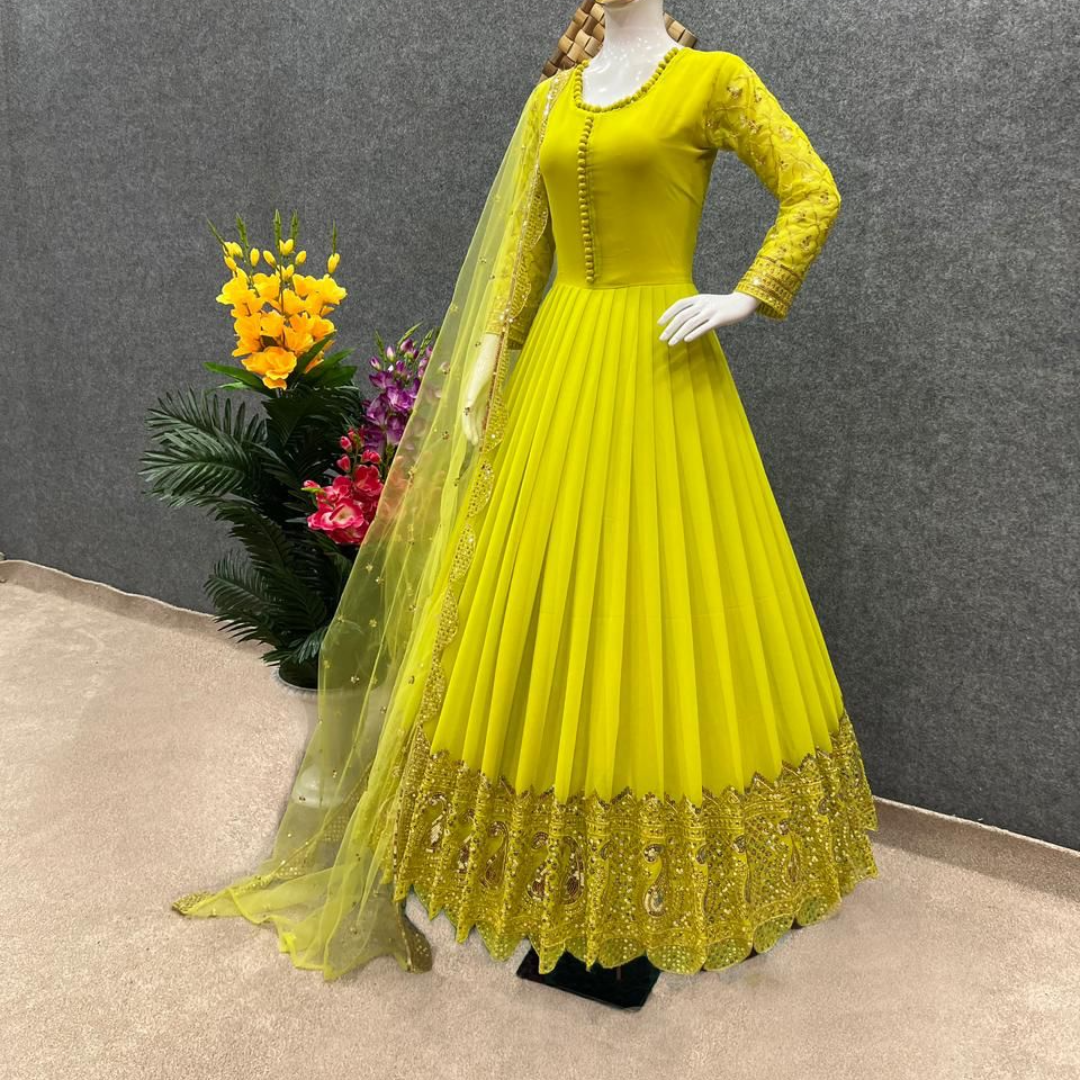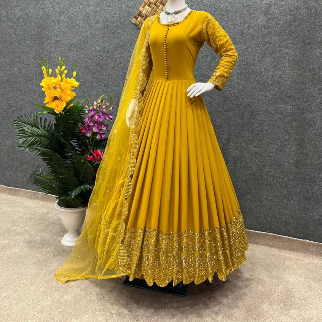 Gown Fabric * :Faux Georgette With *Embroidery And 5mm Sequence Work