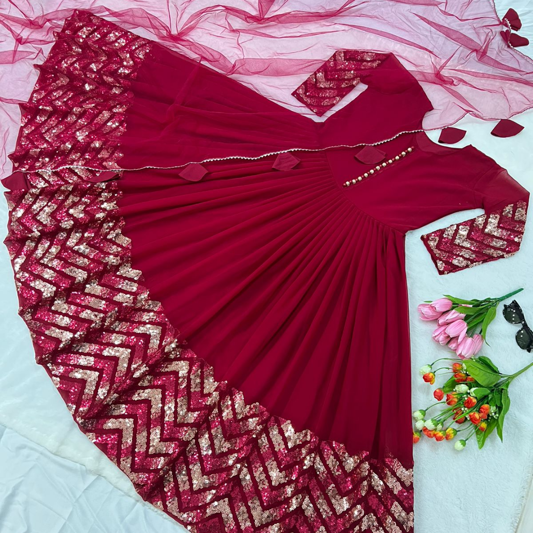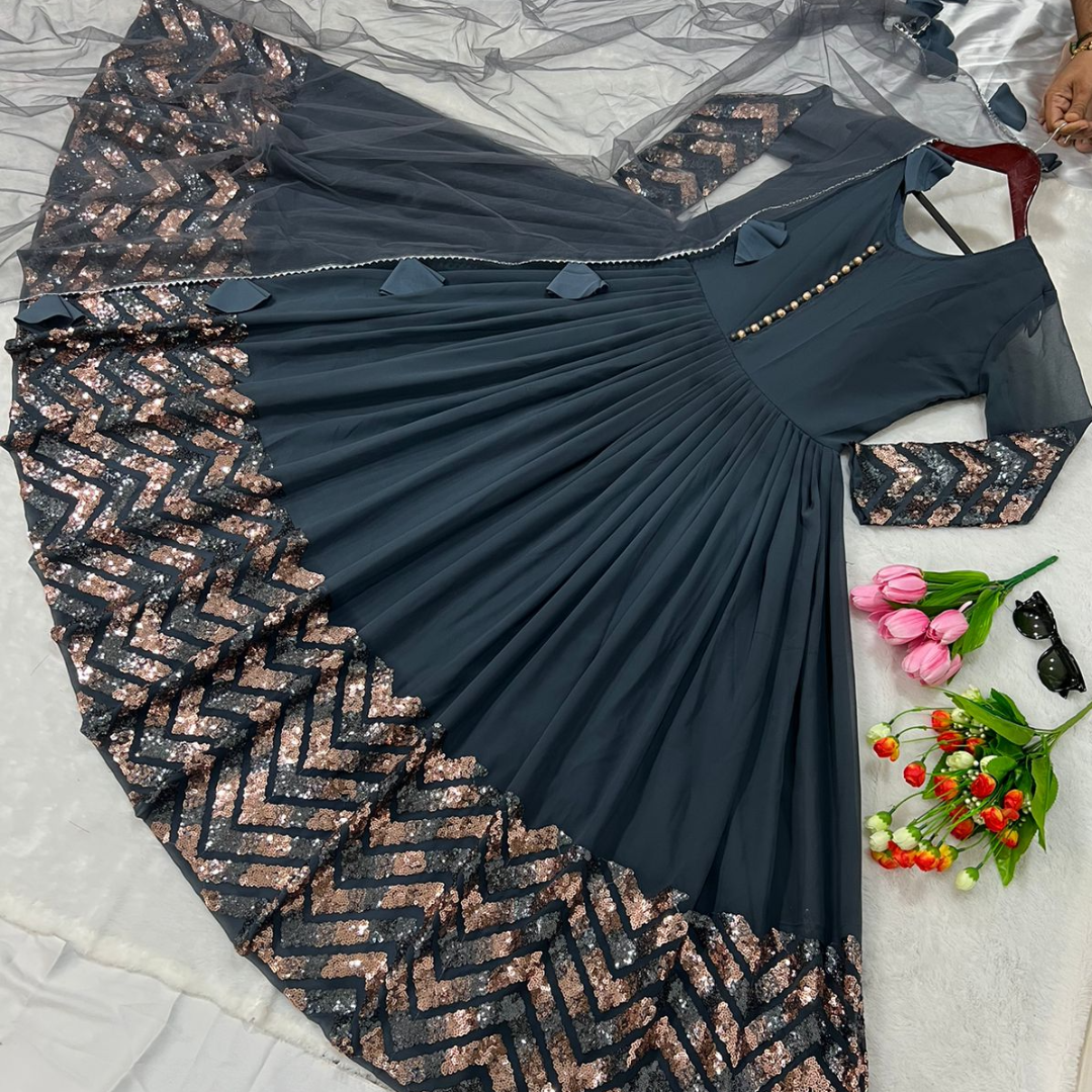 πππ₯Launching New Designer Party Wear Look Gown in 5mm Copper and 3mm Tone to Tone Heavy Embroidery Sequence Work in 2 Coloursπ₯ππ (2)