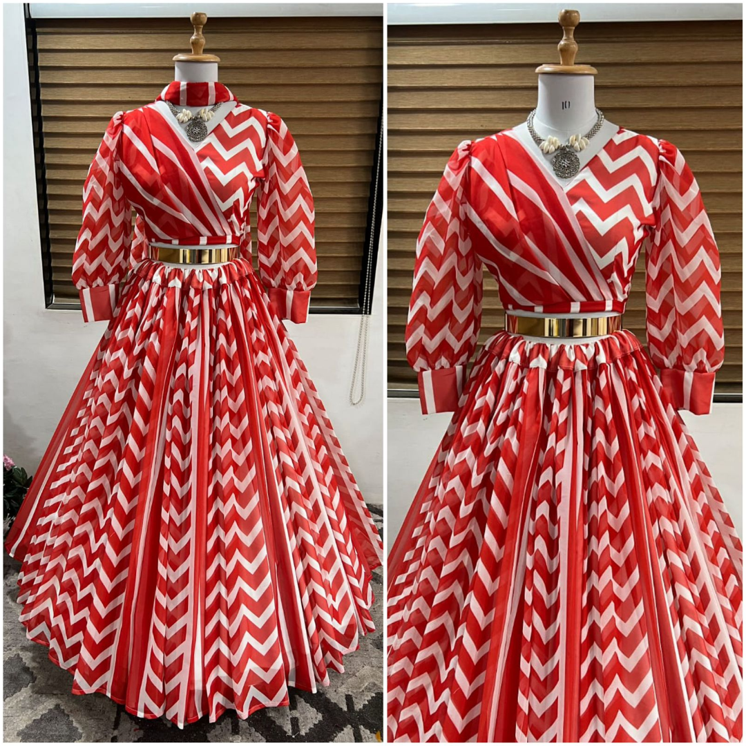 Lehenga Fabric : Faux Georgette With Digital Print Work