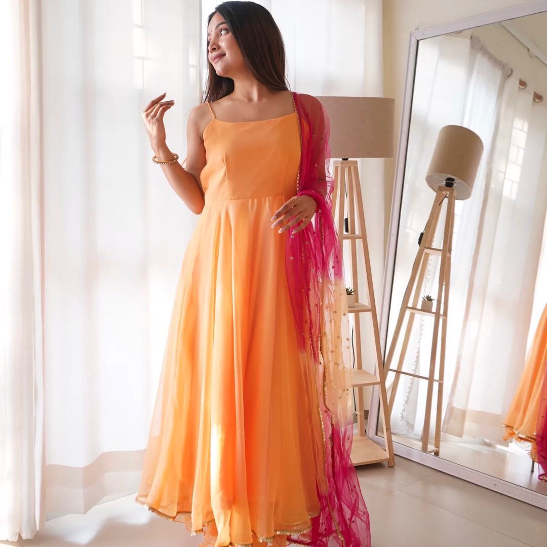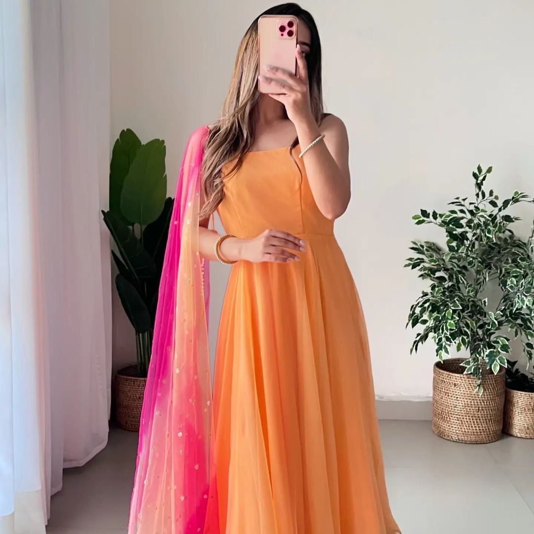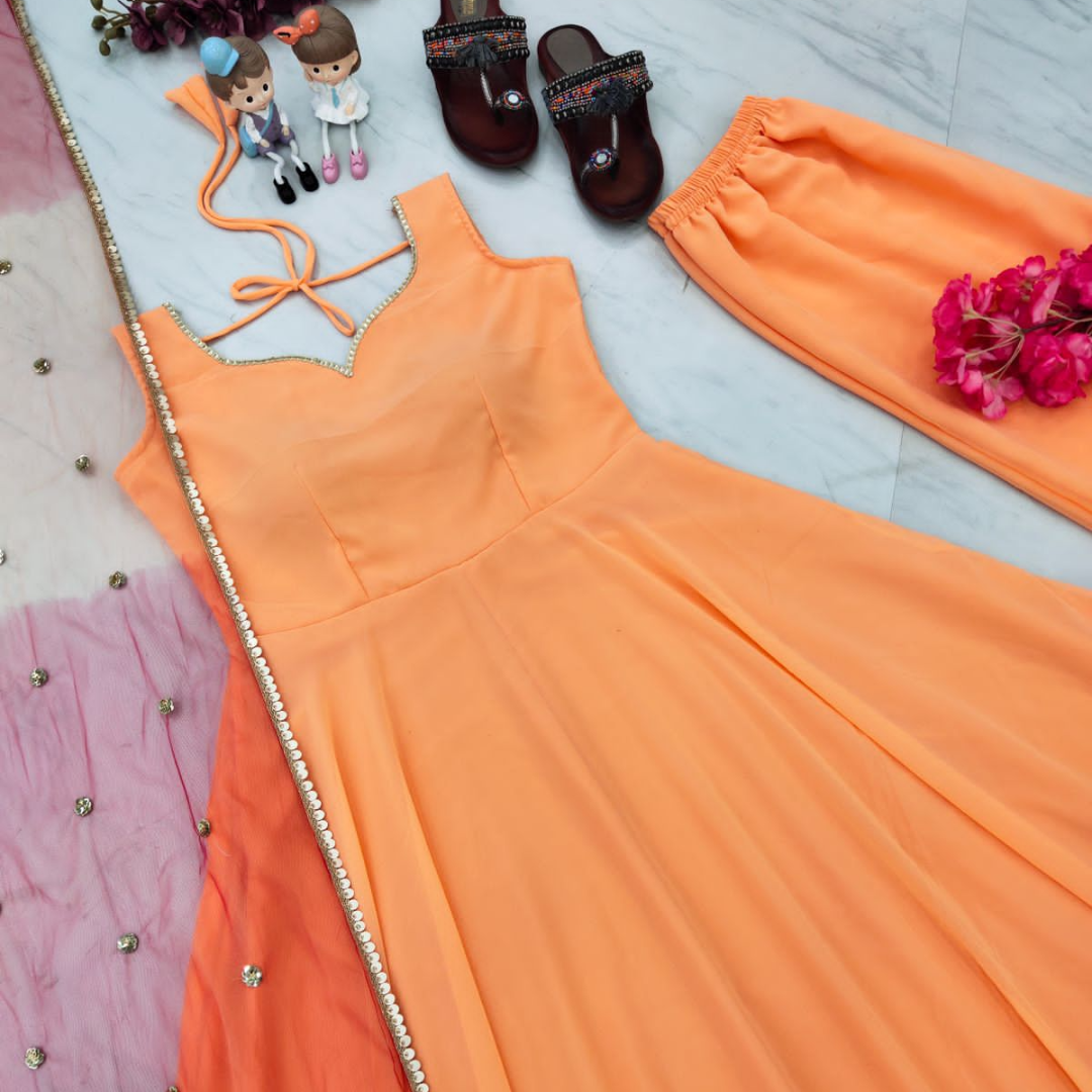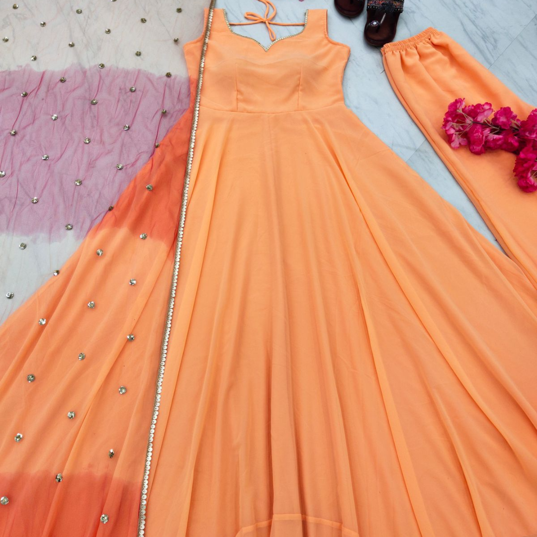 👗*Launching New Party Wear Look Gown - Palazzo & Dupatta Set *👗