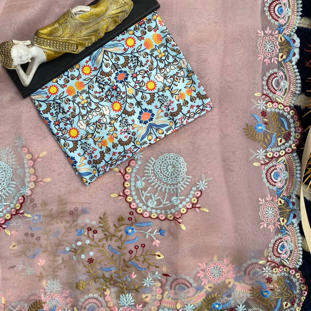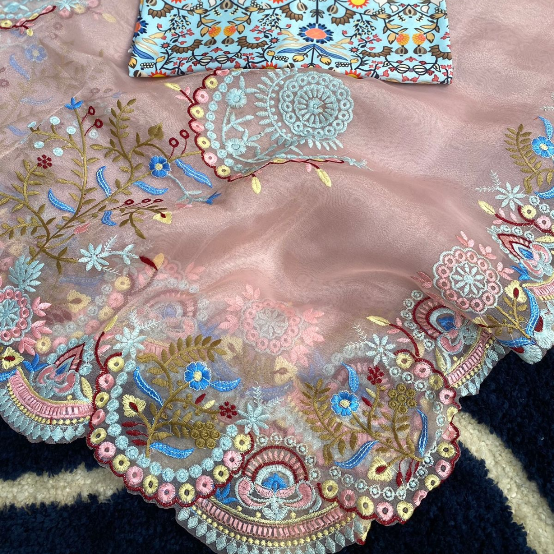 SAREE : ORGANZA WITH MULTI THREADS EMBROIDERED WORK SAREE WITH CUTWORK 5.5meter length