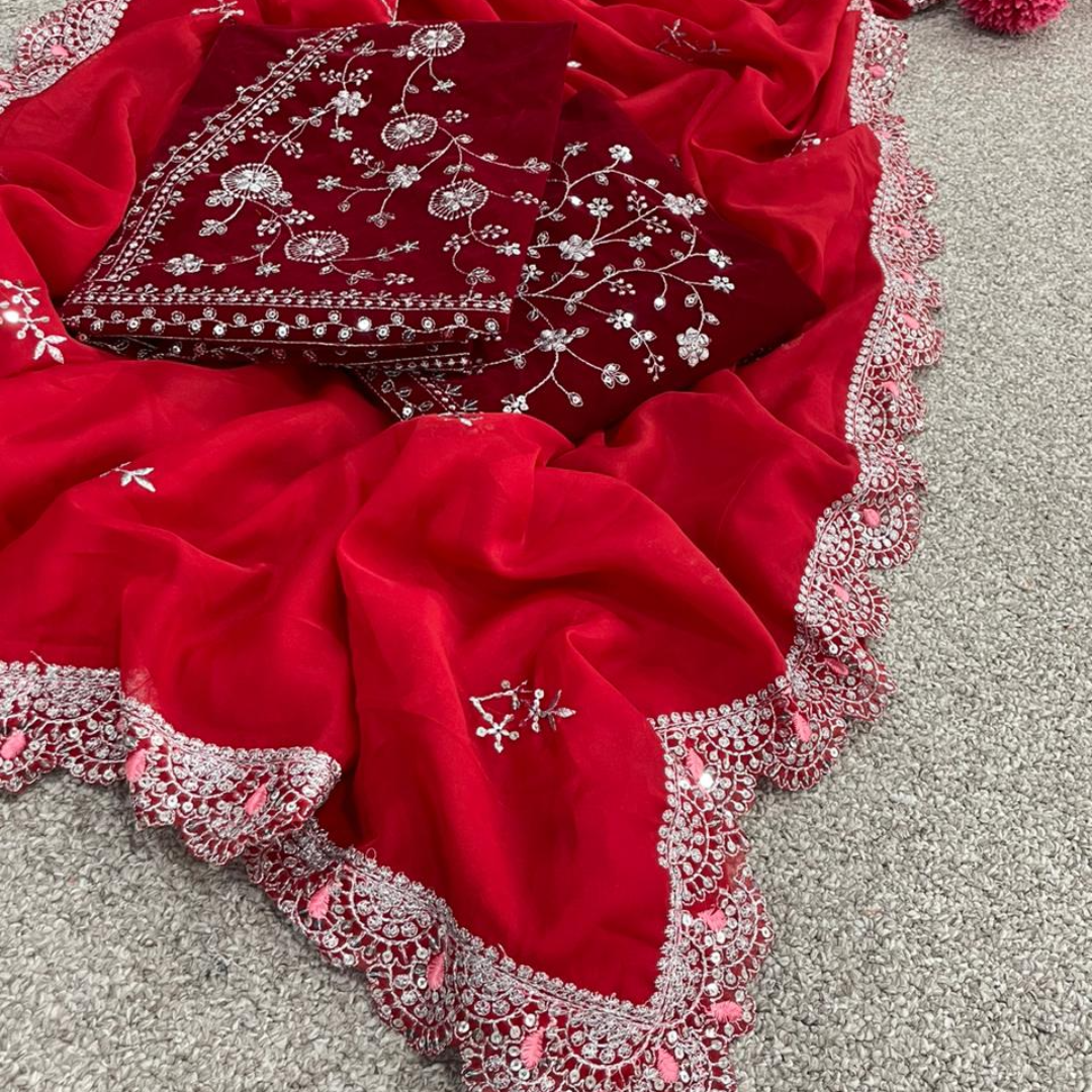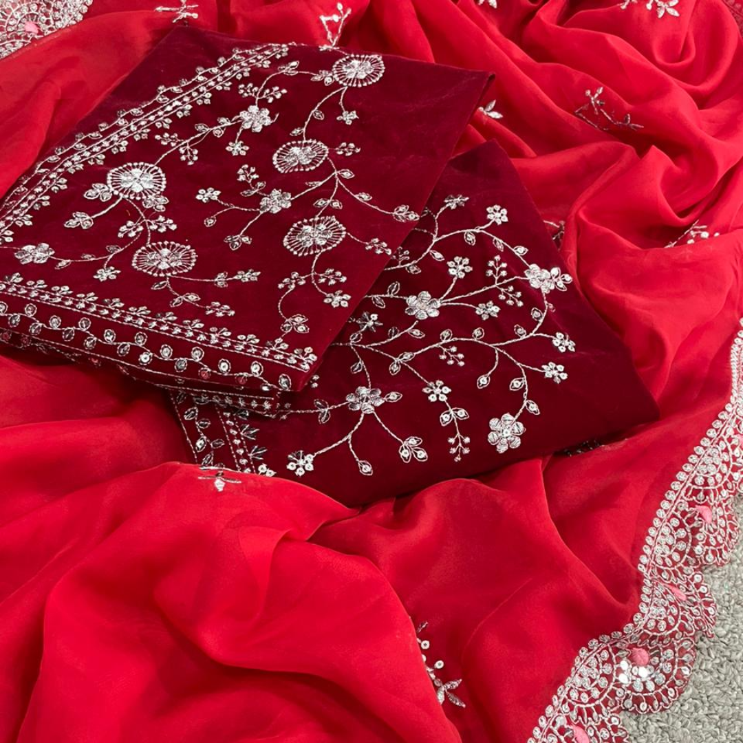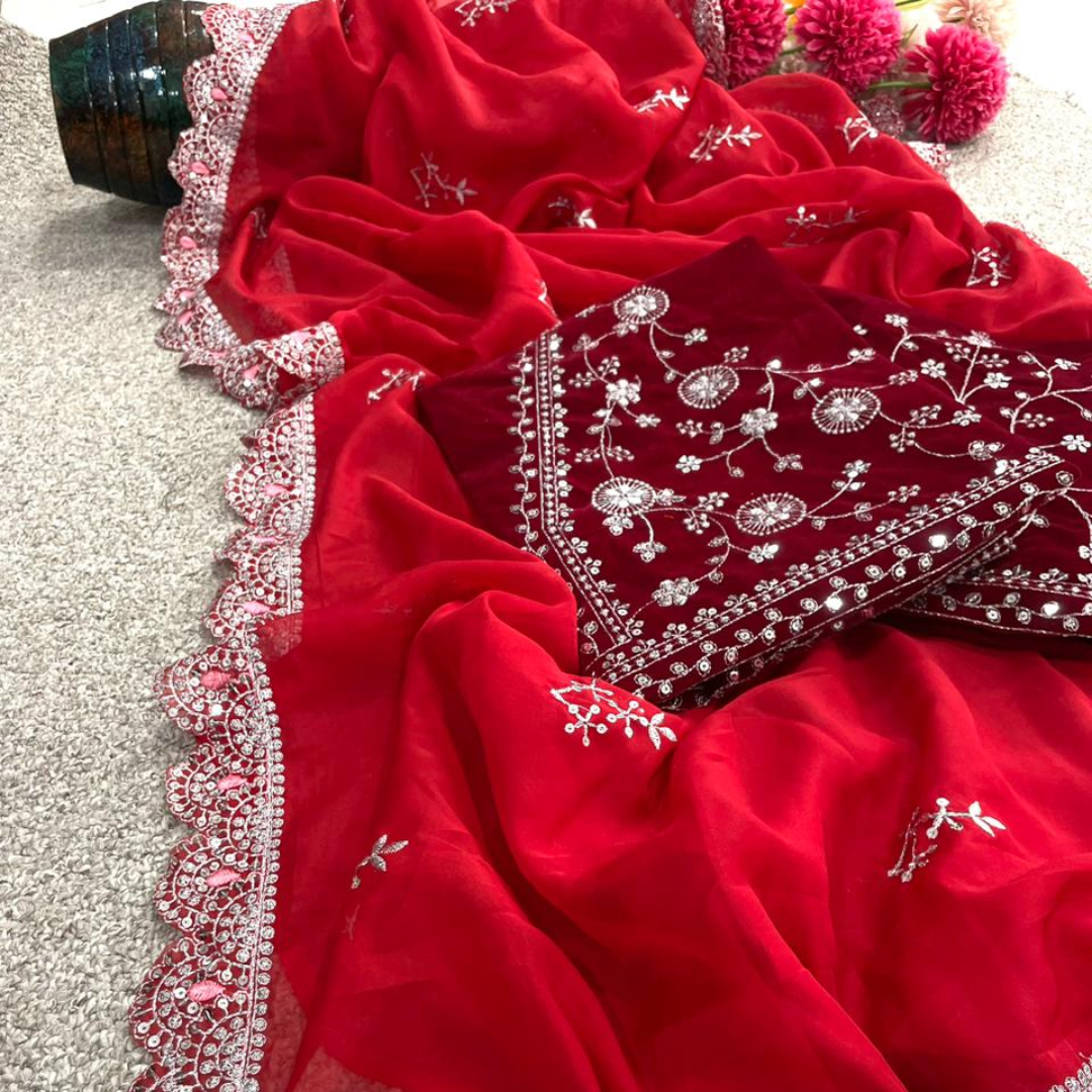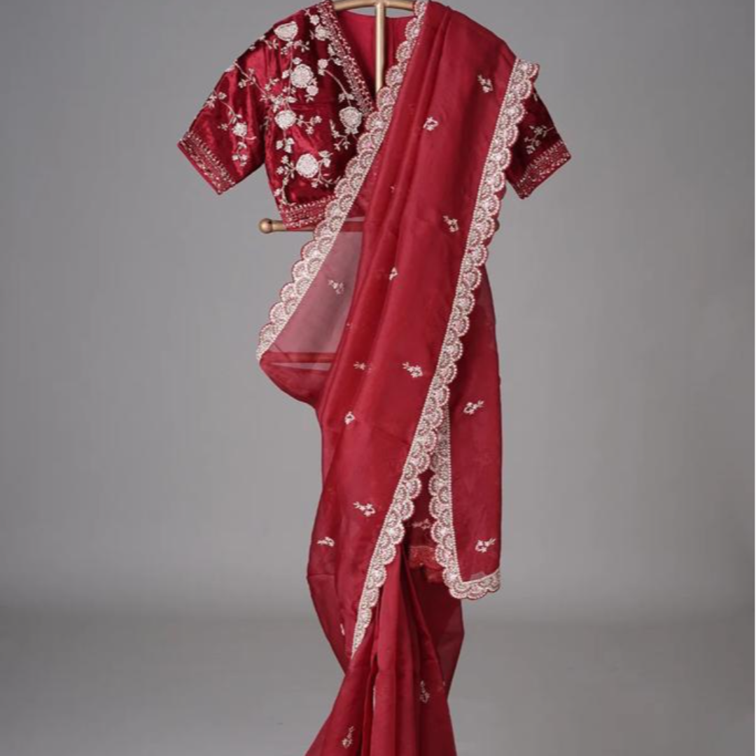 Pure Organza Tebby Silk With C pallu Sequence Work