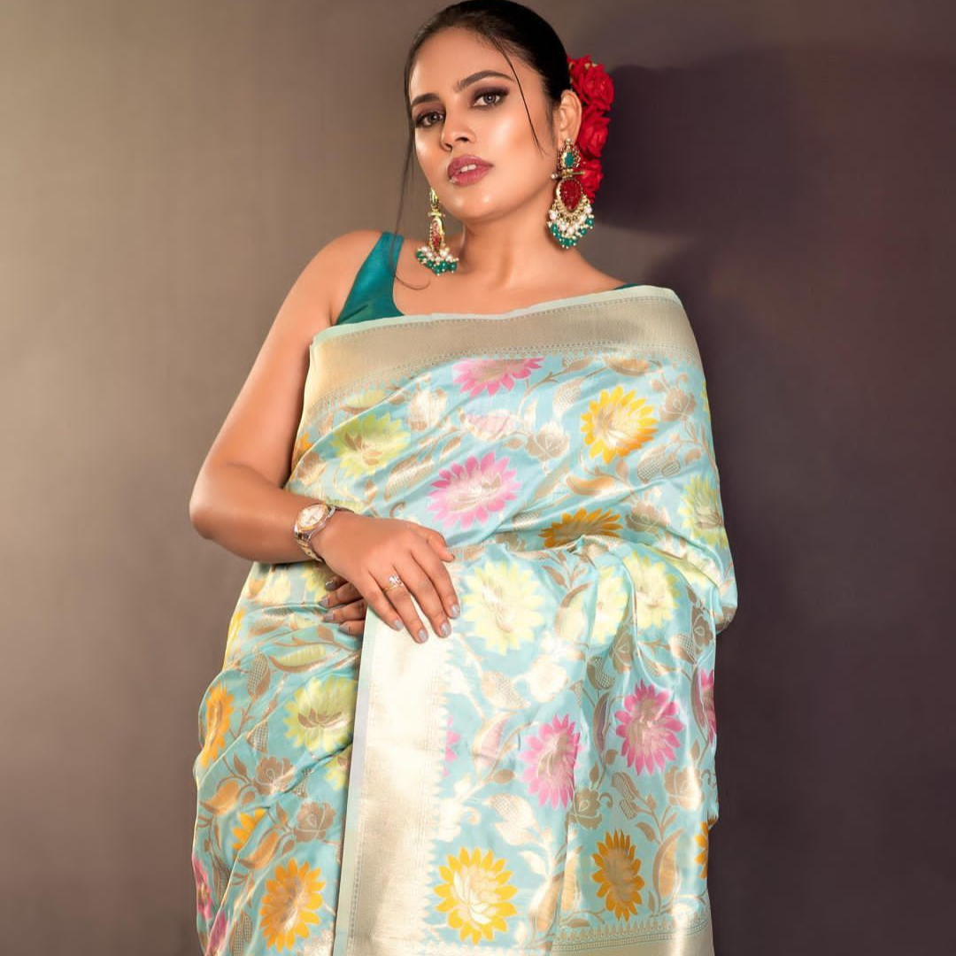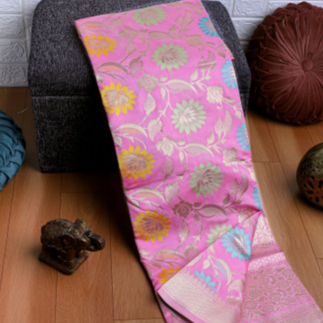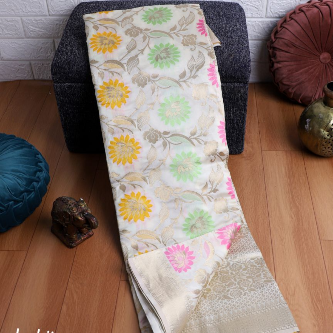 heavy soft silk with complete multi zari thread work with all over zari palla