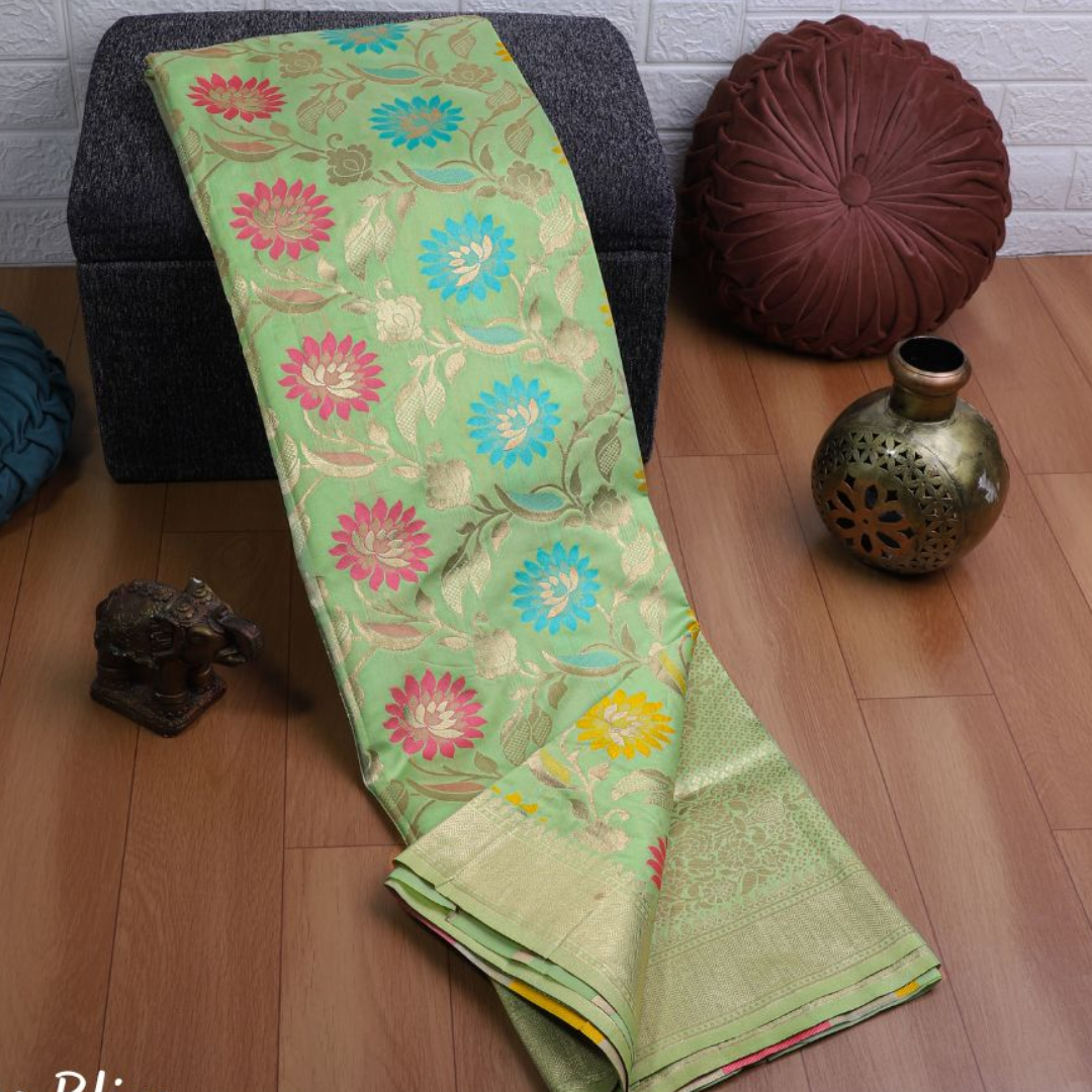 Exclusive launch soft light Dual shade silk - We get you what you look for pure soft silk with zari all over . Perfect zari border and multi zari thread all over