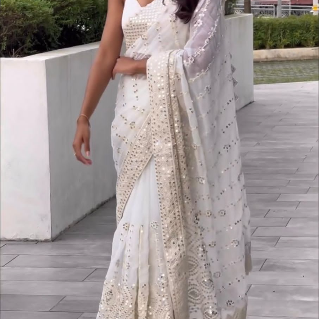 SAREE : GEORGETTE WITH SEQUANCE EMBROIDERED WITH SEQUANCE LACE WORK 5.5meter