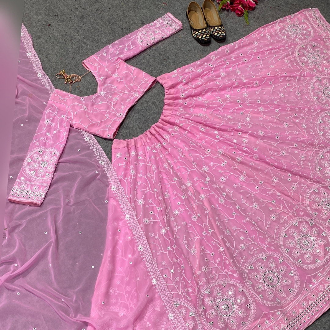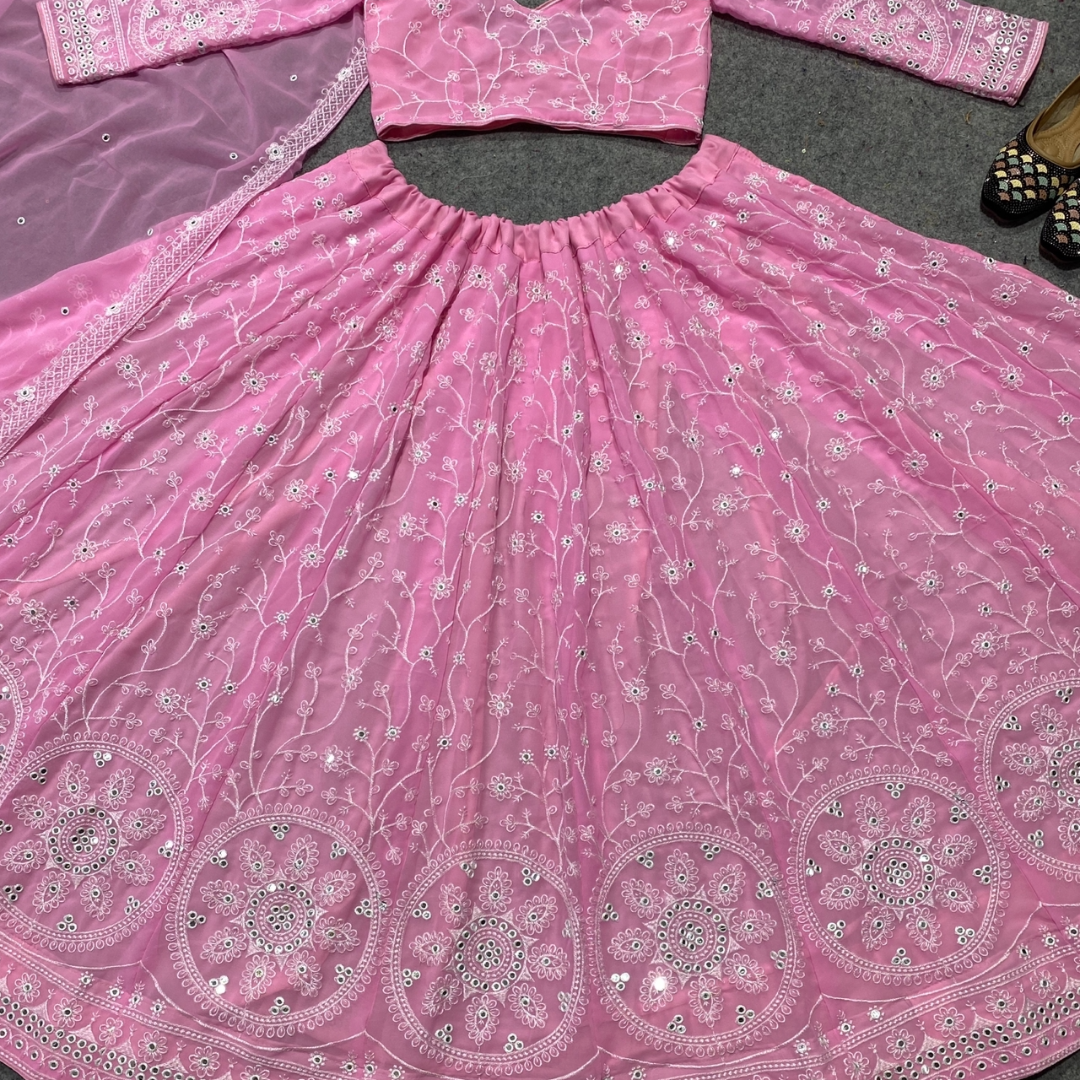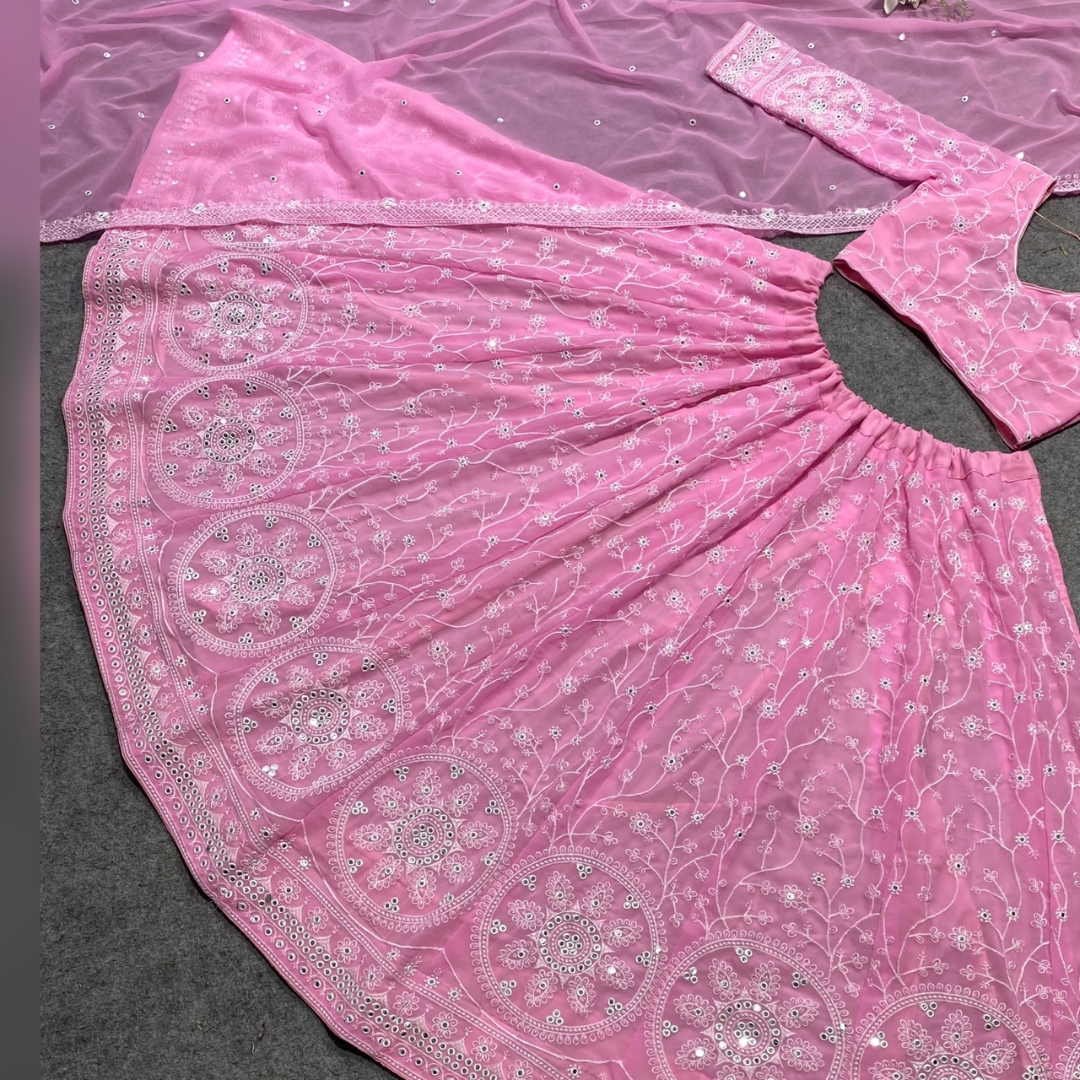 Pink Colour Embroidered Attractive Party Wear Silk Lehenga choli has a Regular-fit and is Made From High-Grade Fabrics And Yarn.