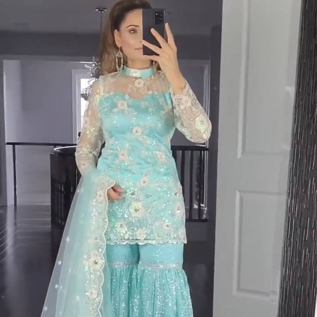 *Dupatta Fabric *: Heavy Net With 5mm Rembo Embroidery Sequence Work and Heavy Embroidery Sequence Lace Border