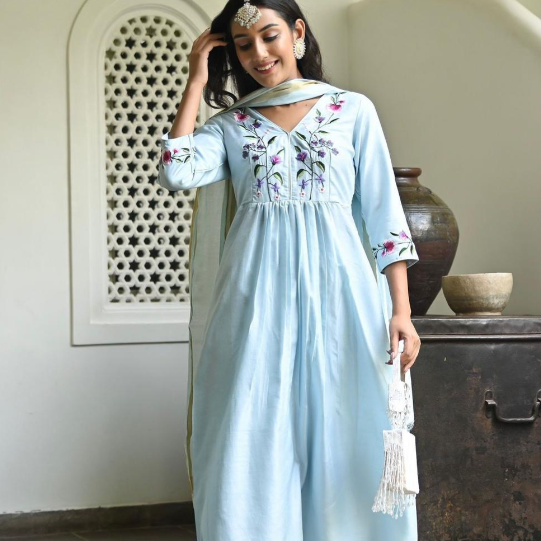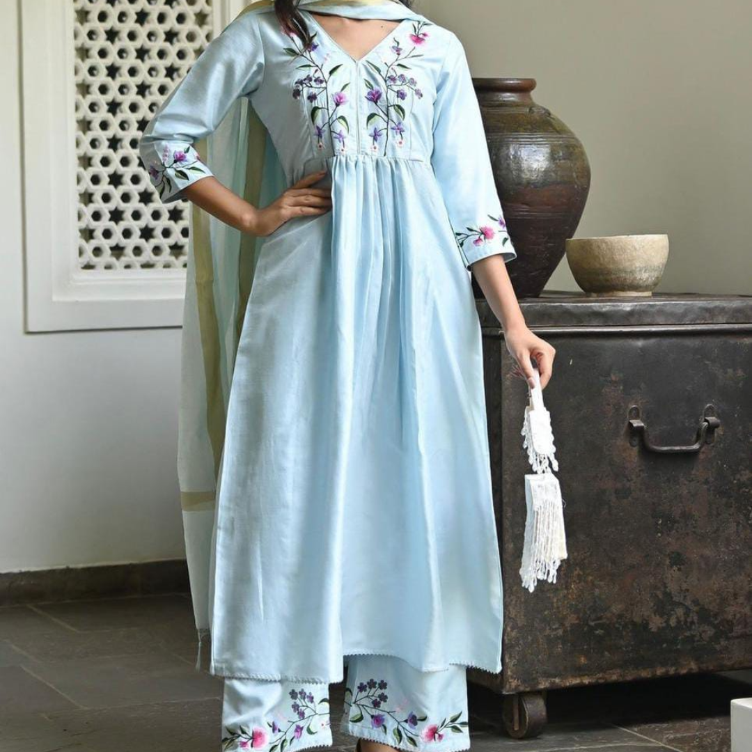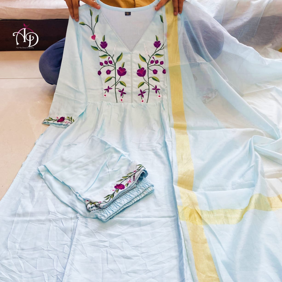 Work - embroidery work in kurta yoke and border lace🔹🔹☑