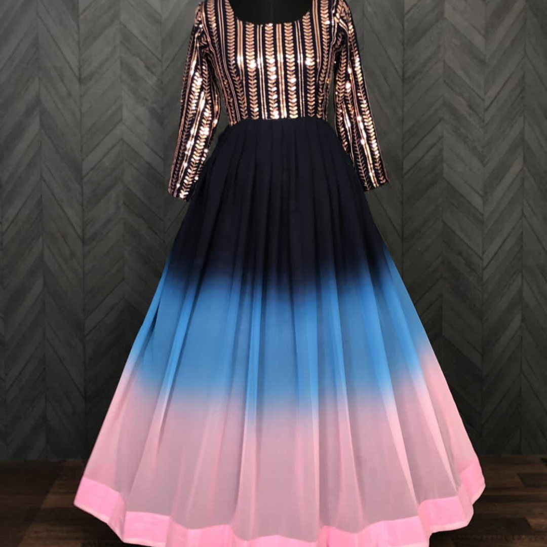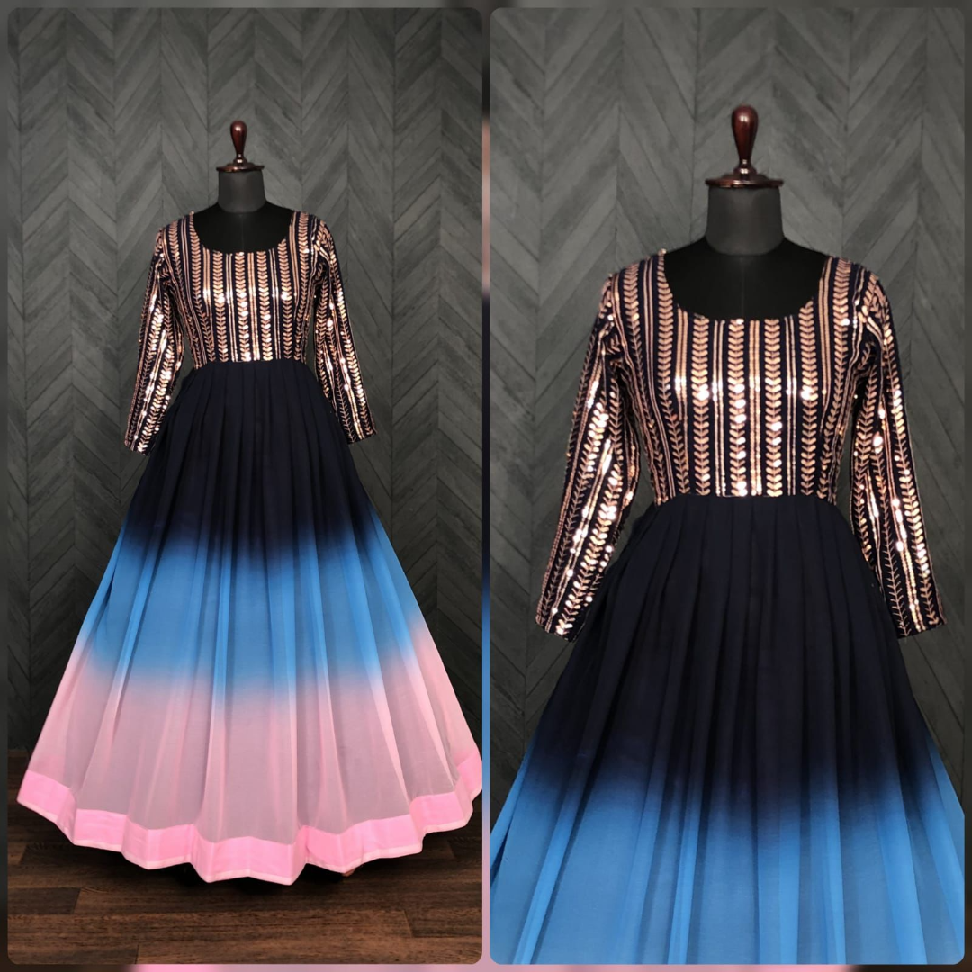 FABRIC & WORK :- Faux Blooming With Sequins work and Rich Digital Print