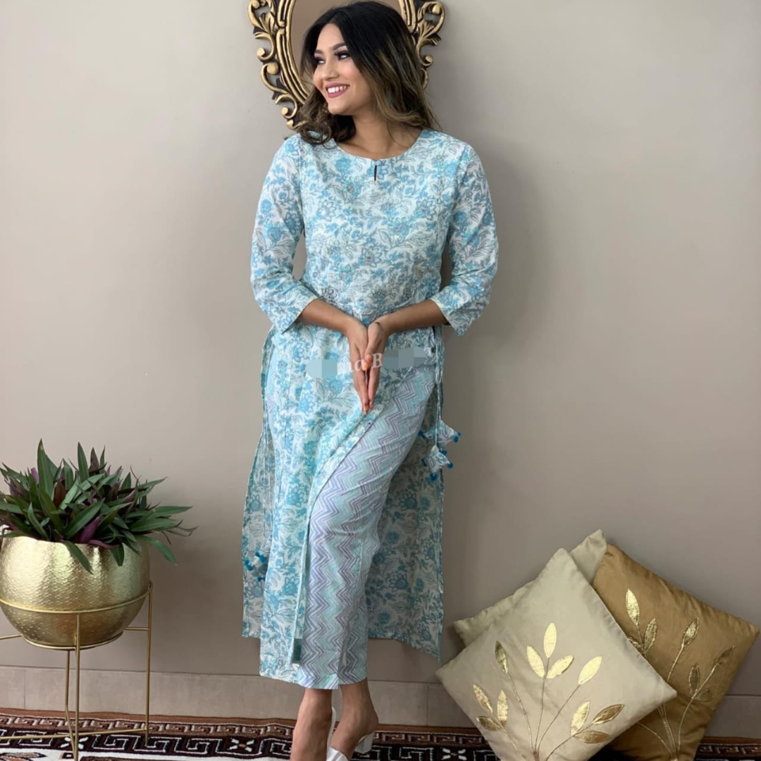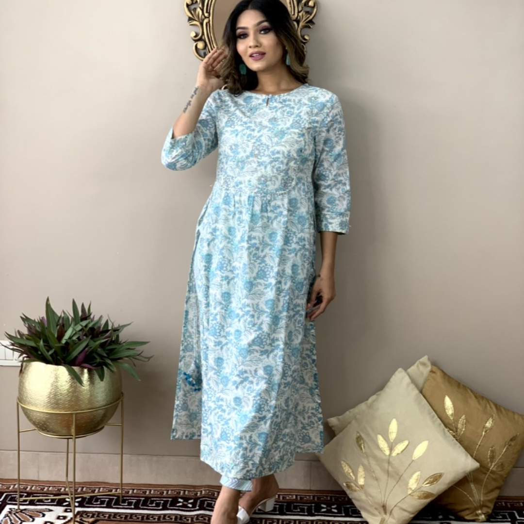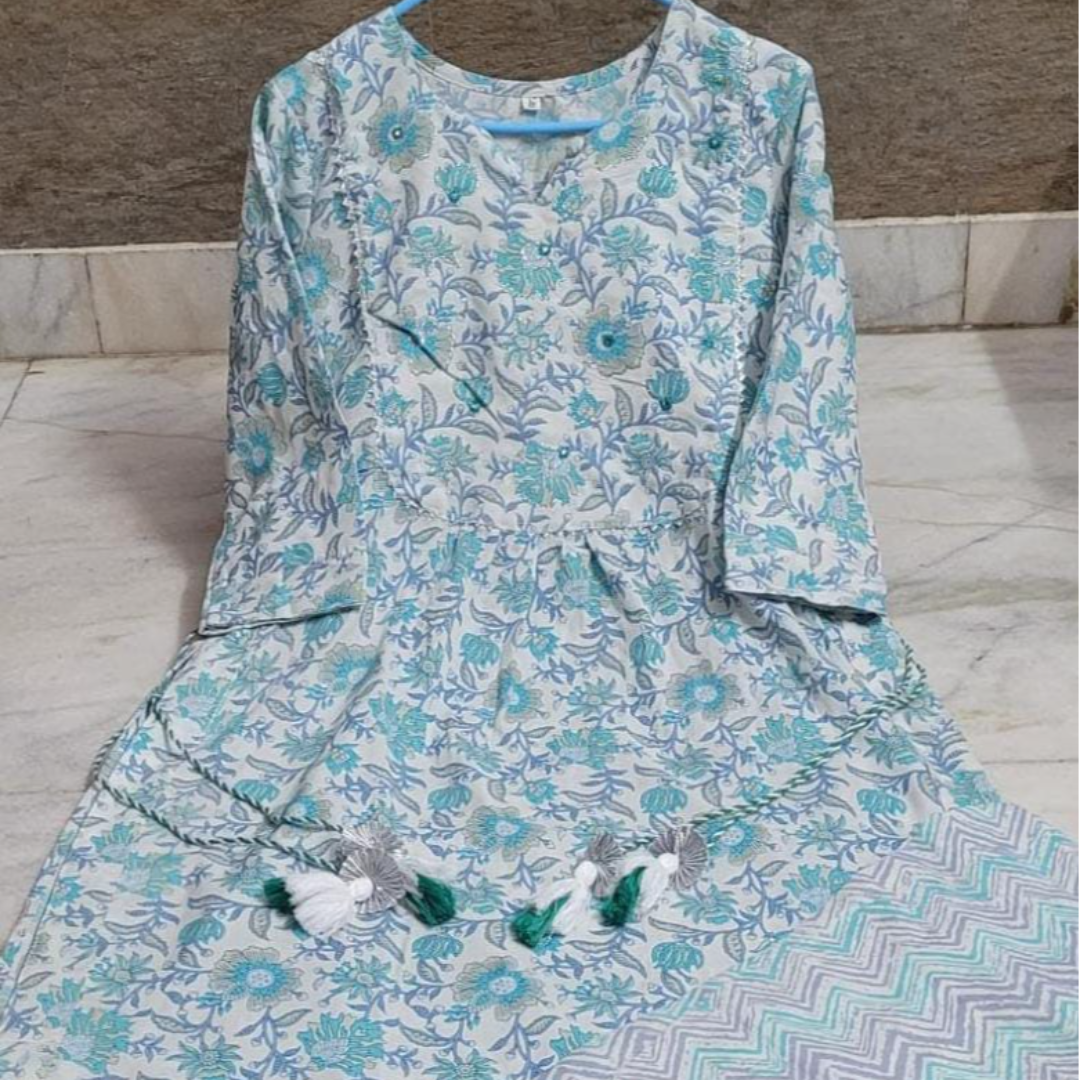 Presenting New Look Naira Cut Kurti With Pant Set. Silver Shining Best Aari Work On York Which Give A Classy Look...