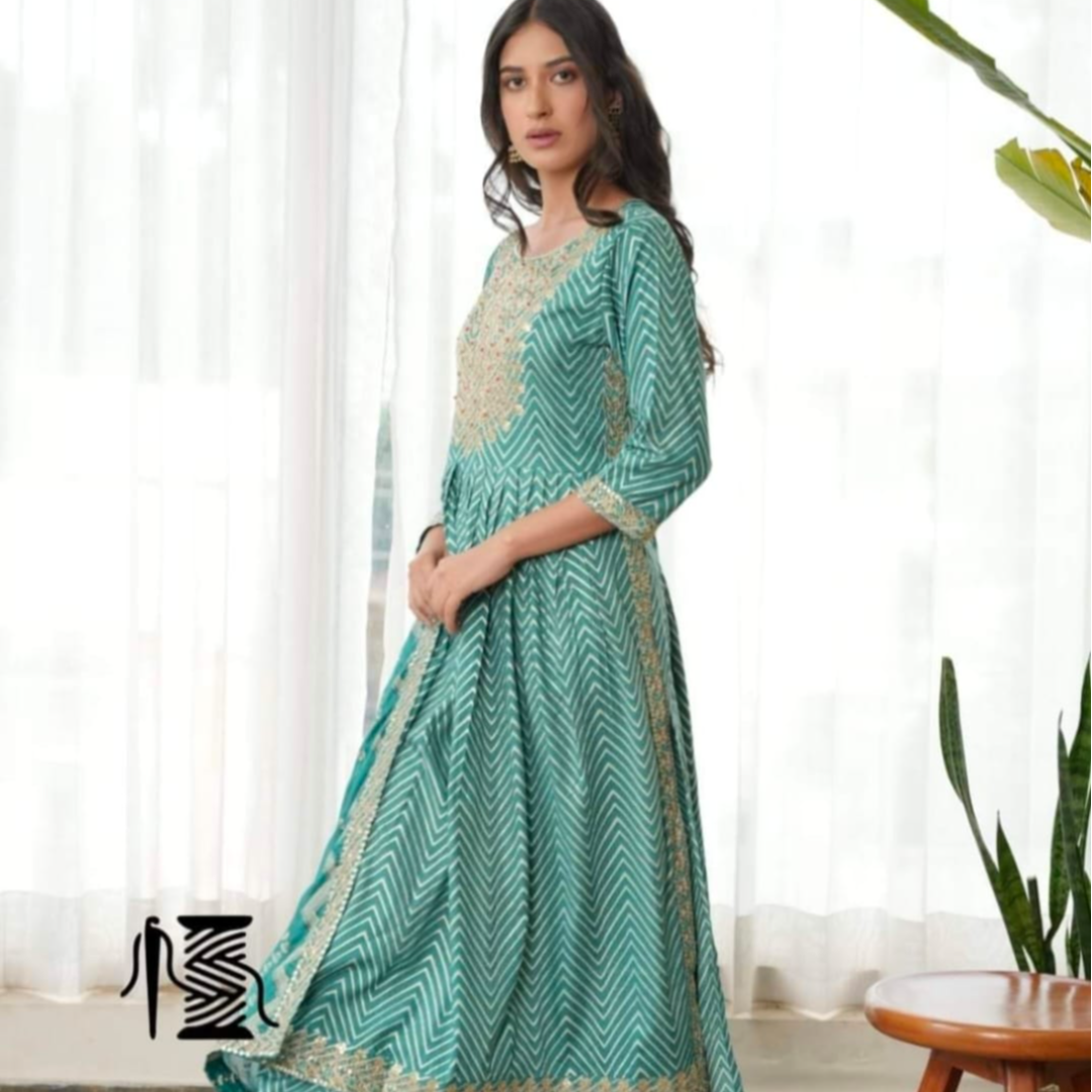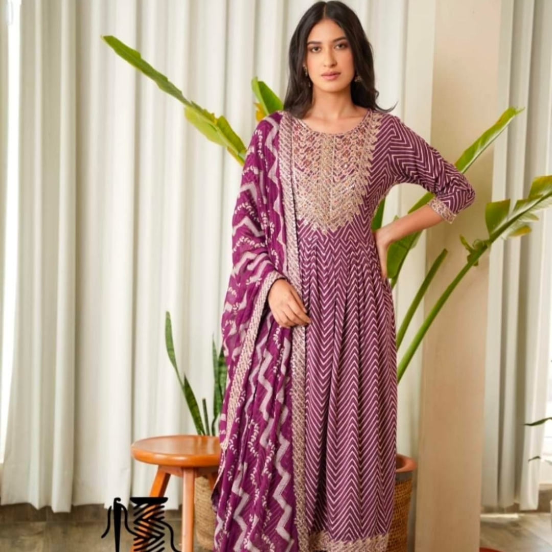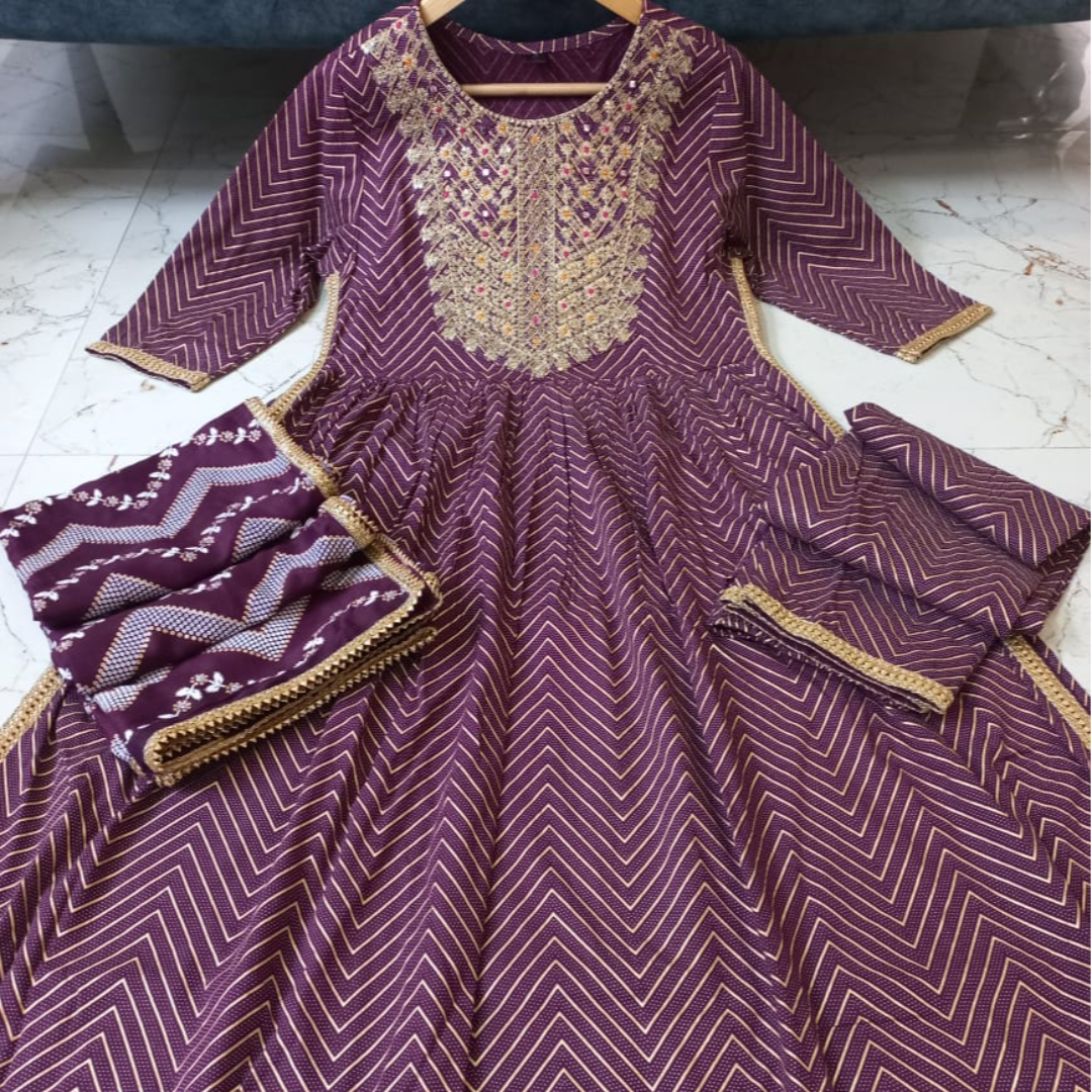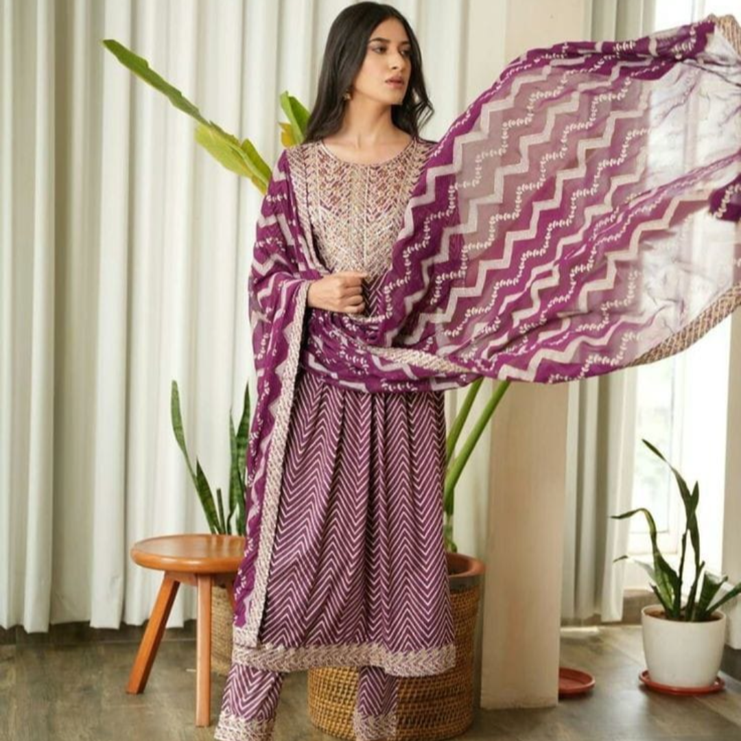 👗 Beautiful Rayon Fabric zigzag Printed Straight Kurti Naira Cut With Pant And Printed Dupatta 3pis set