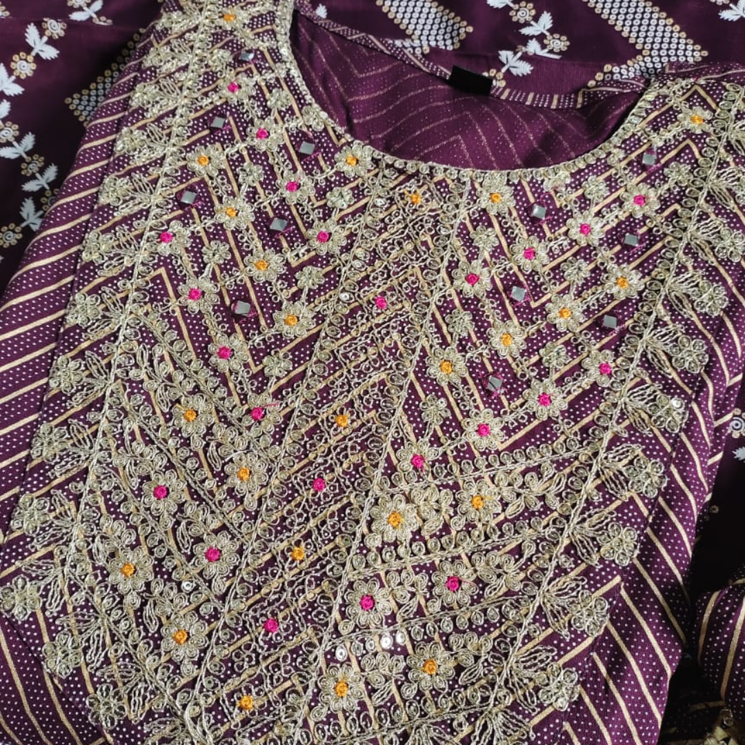 ⭐Work: Heavy sequence Dori Embroidery with mirror and Heavy Lace work all over kurti