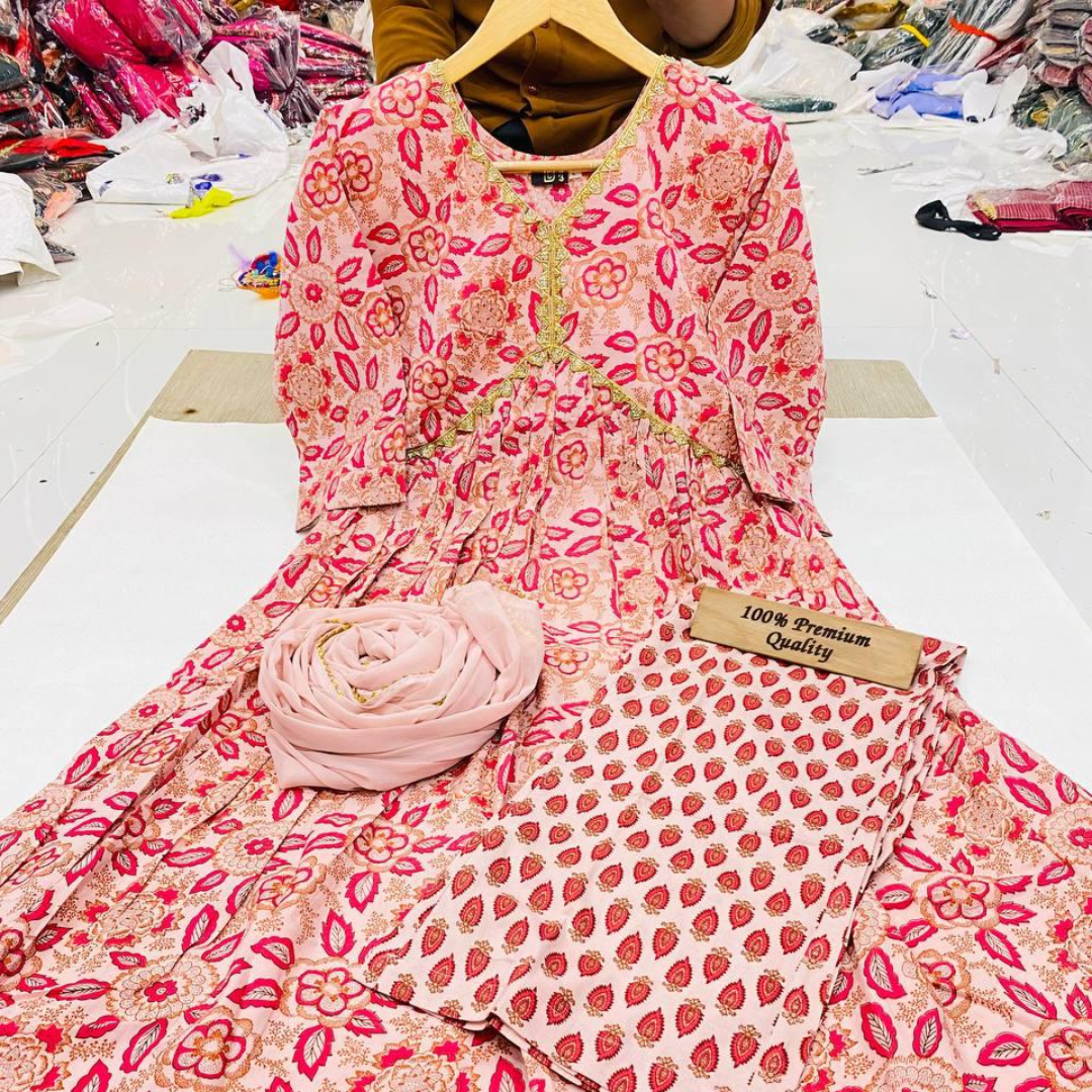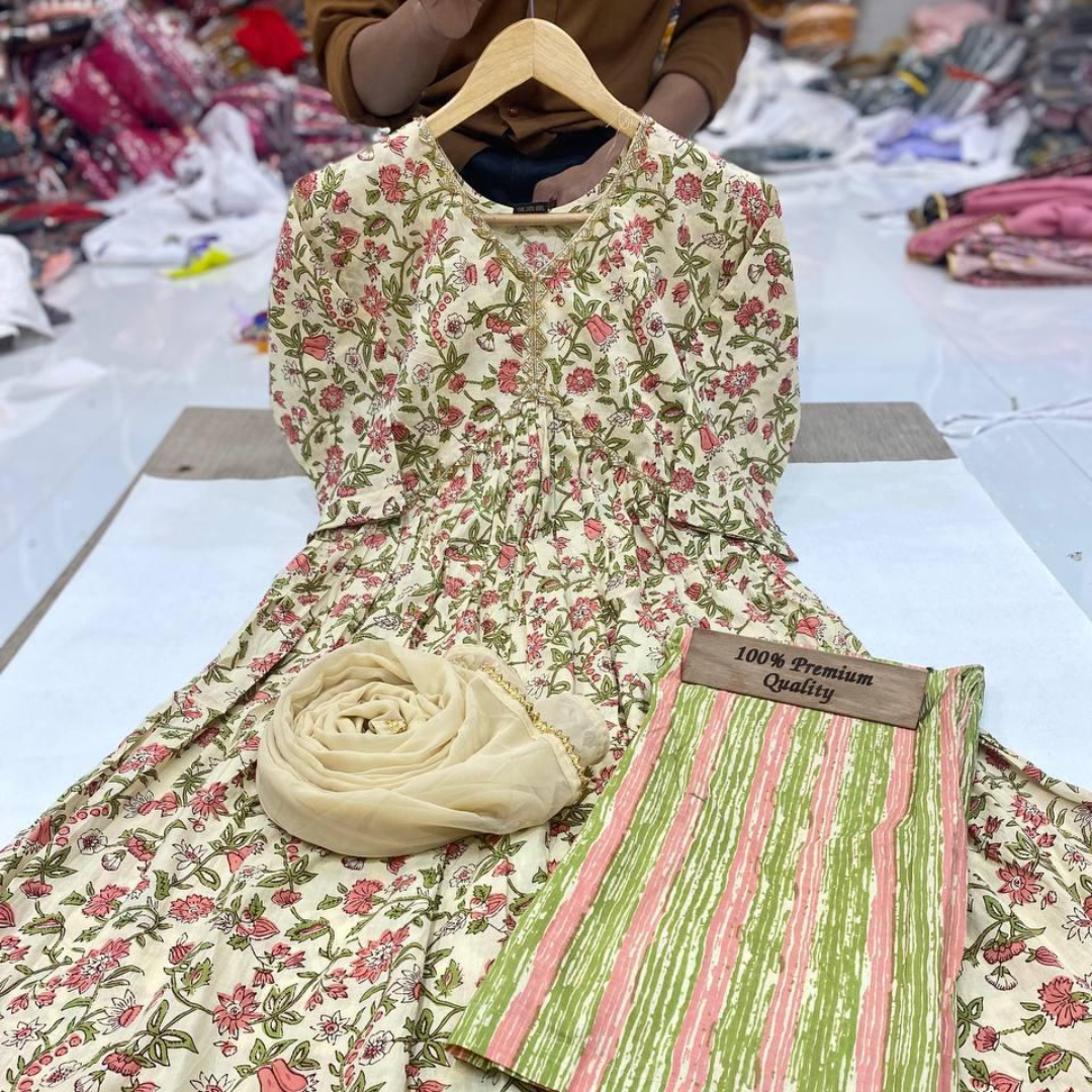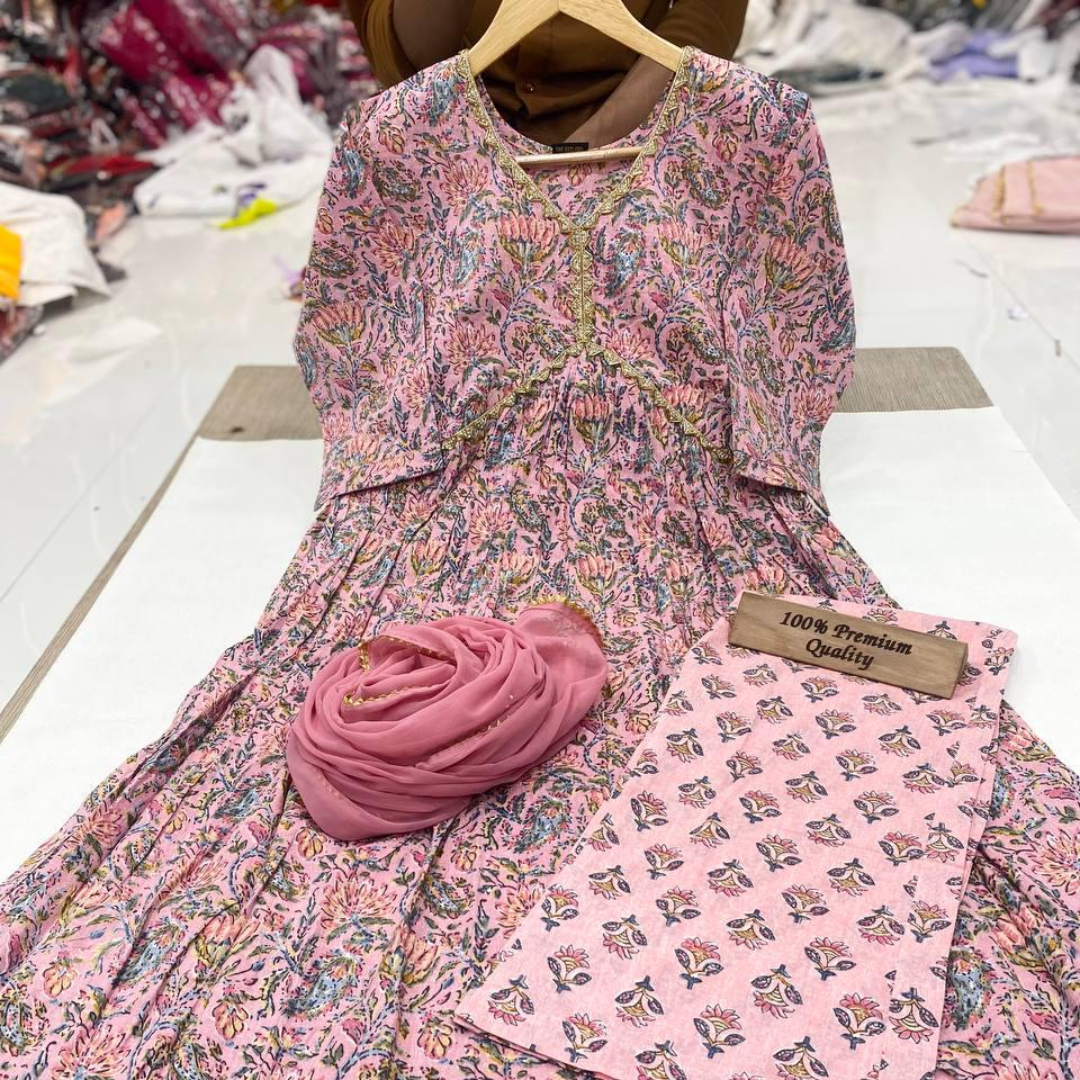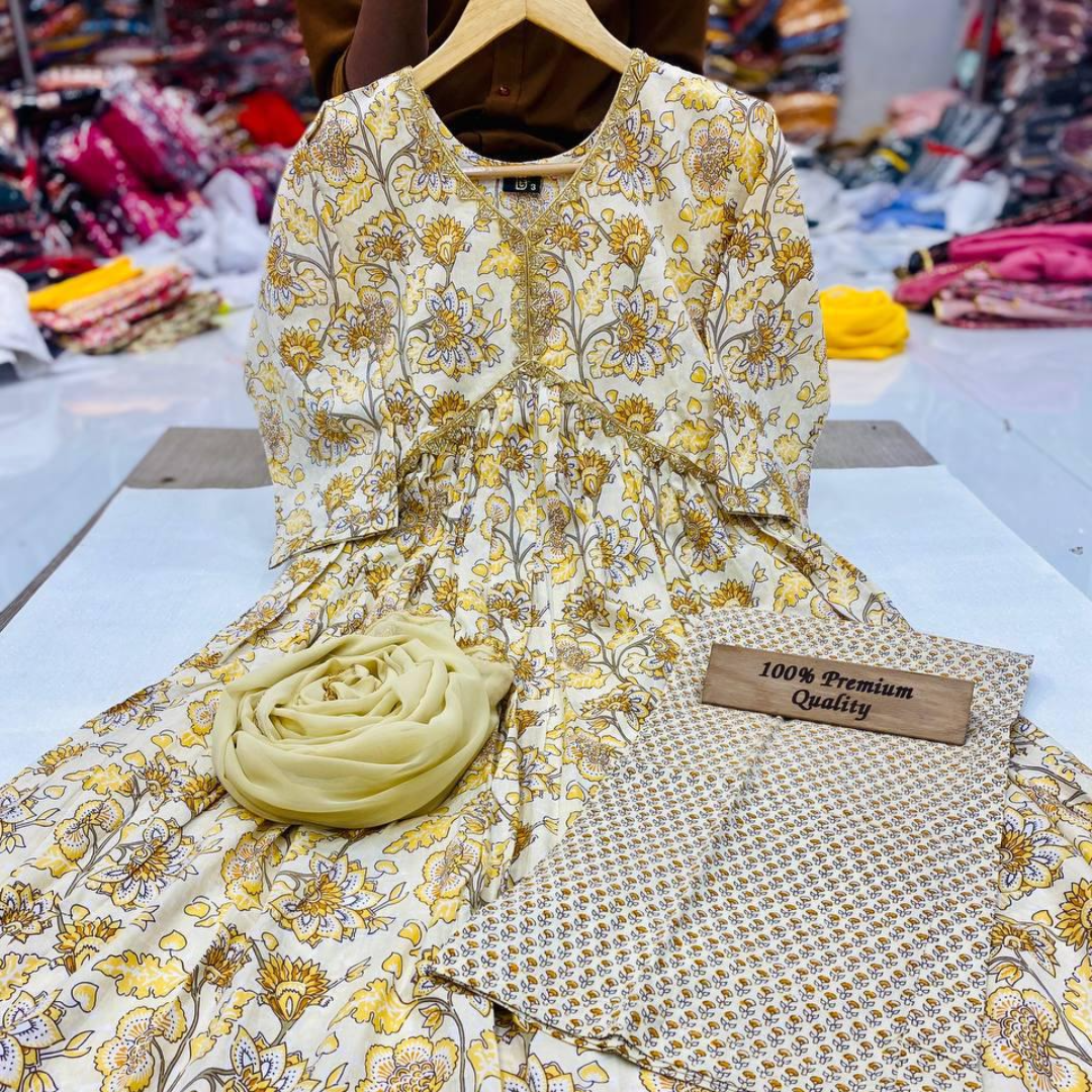 💫🔥Designer Pure Cotton Soft Fabric Kurti with Beautiful print and Handwork and Alia cut with Dupata