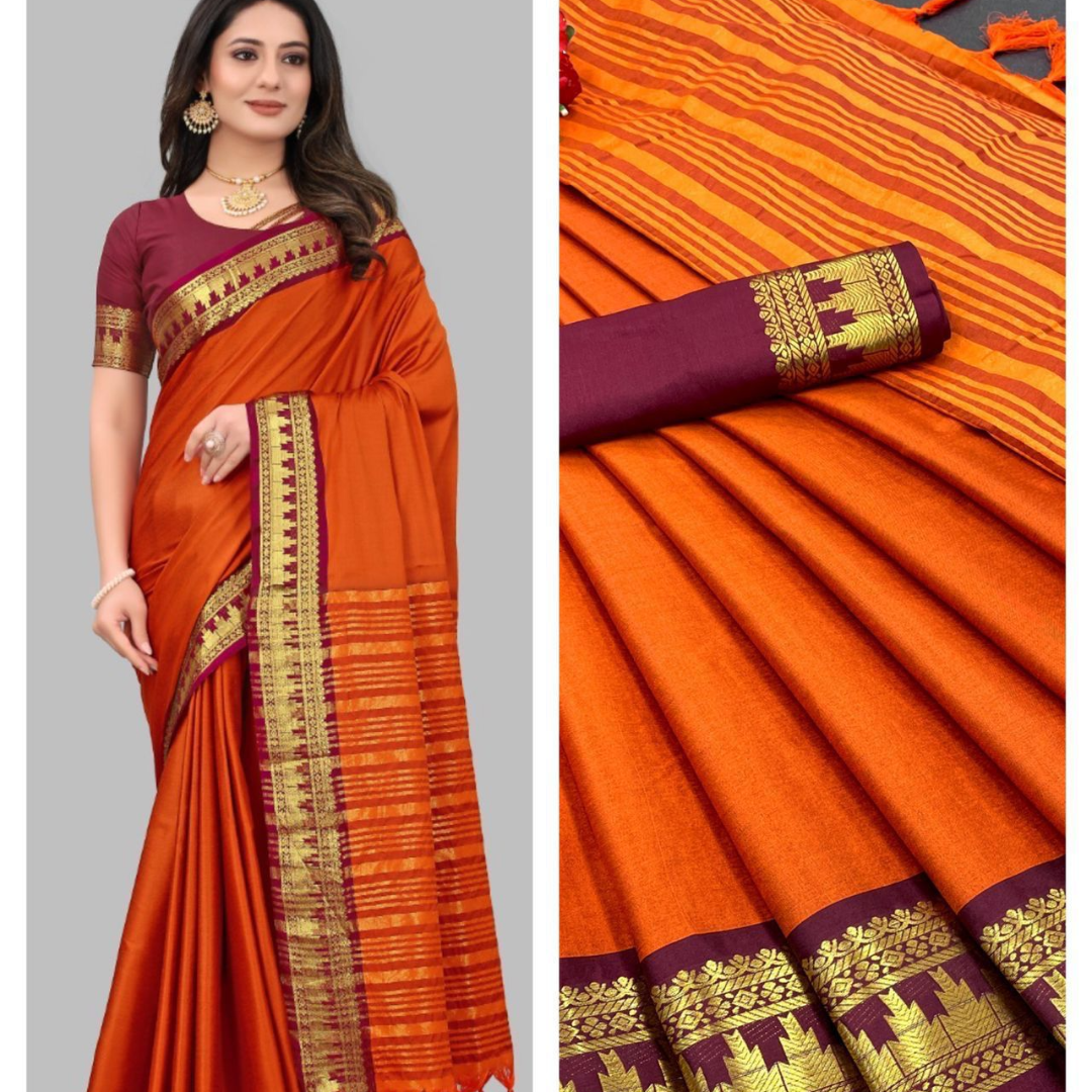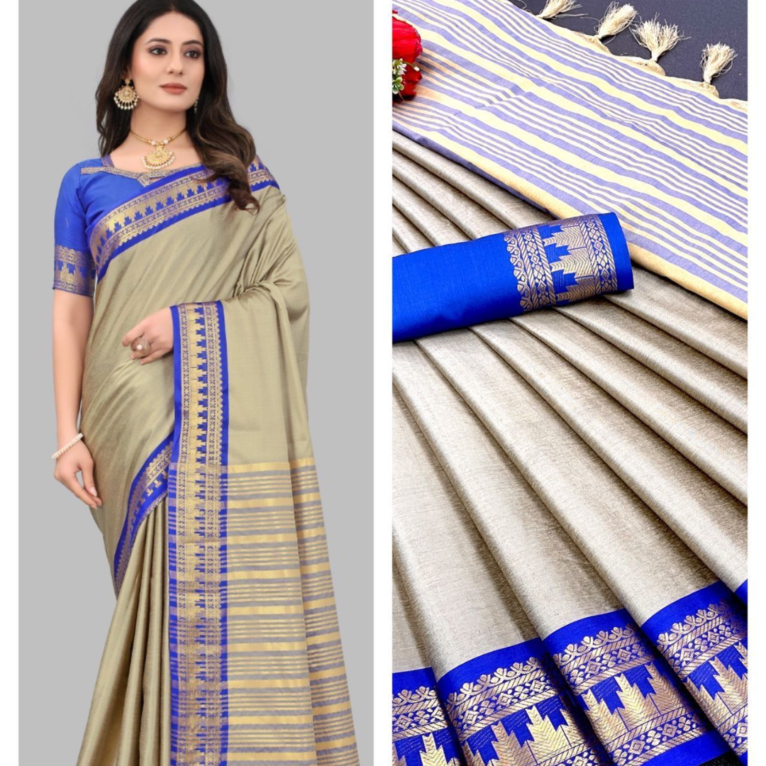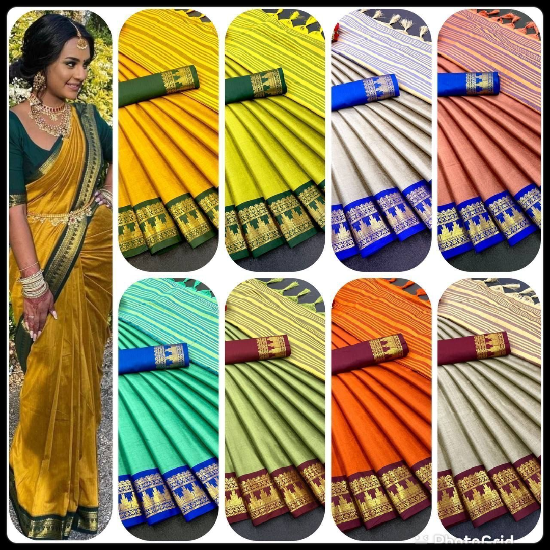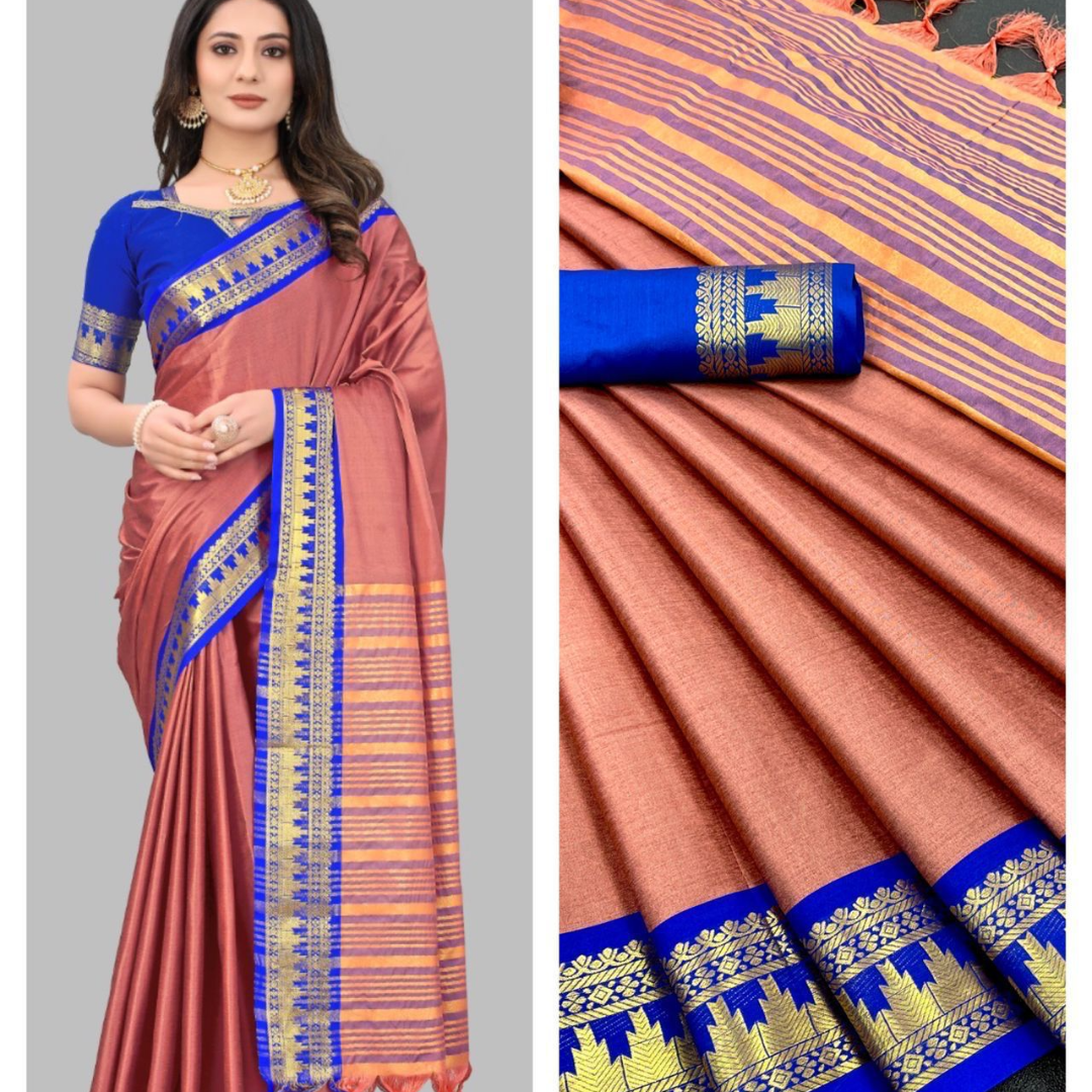 Saree 5.5 MTR and 0.80 MTR Contrast Matching Blouse With Contrast Pallu…