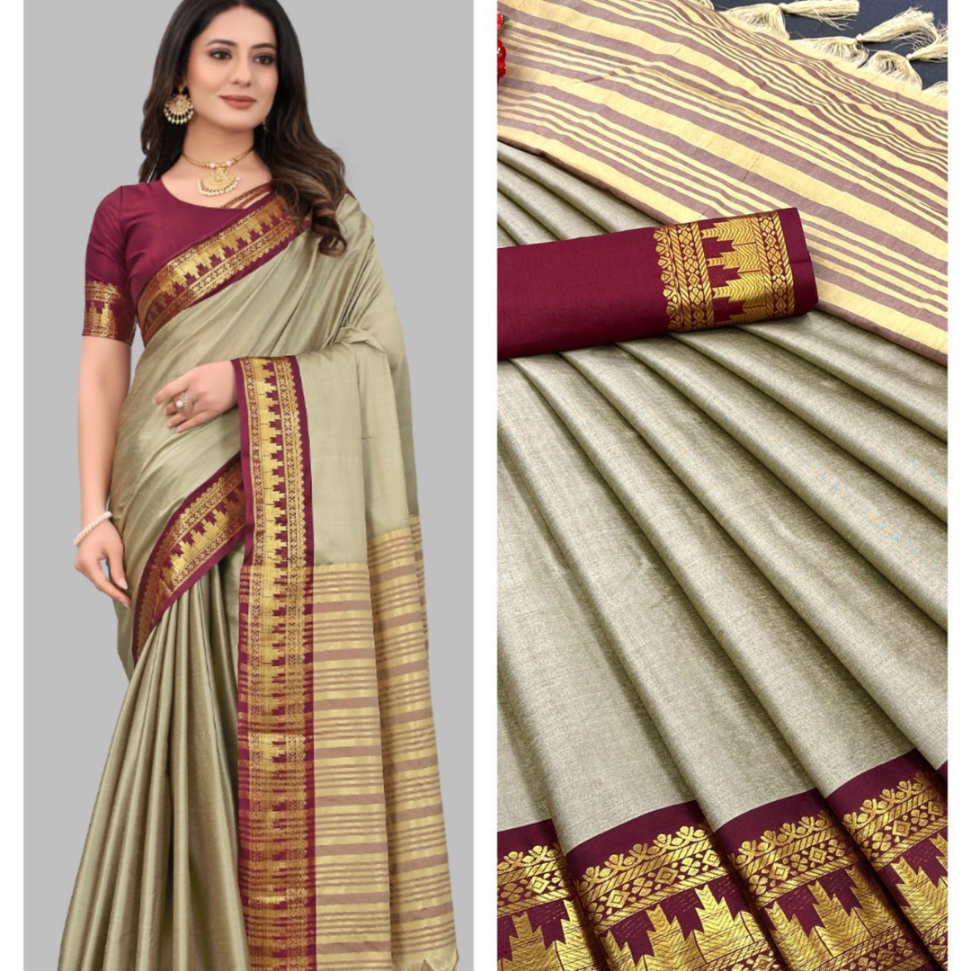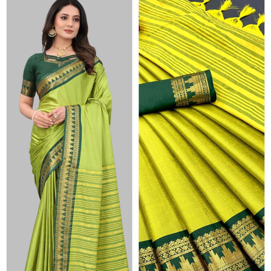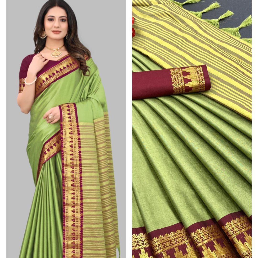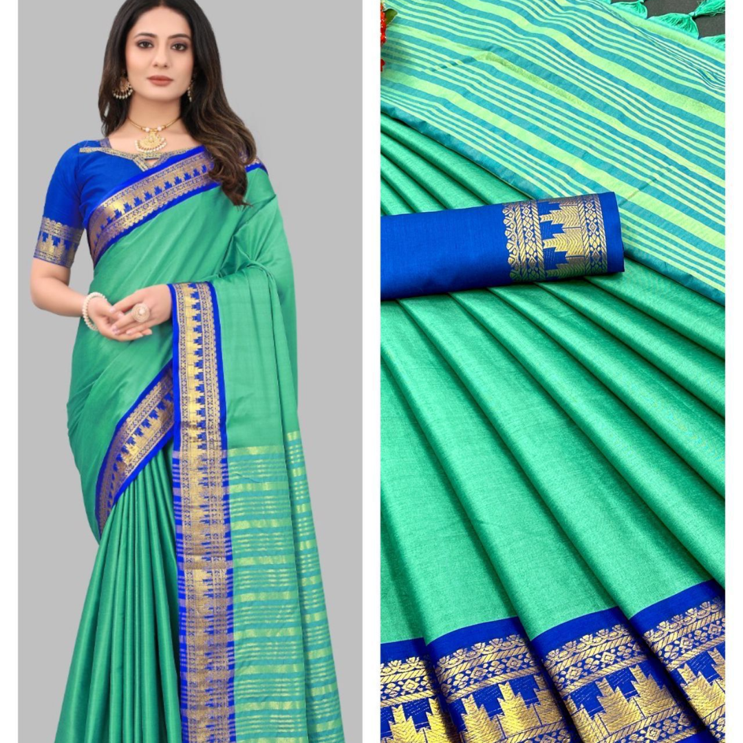 Saree 5.5 MTR and 0.80 MTR Contrast Matching Blouse With Contrast Pallu…