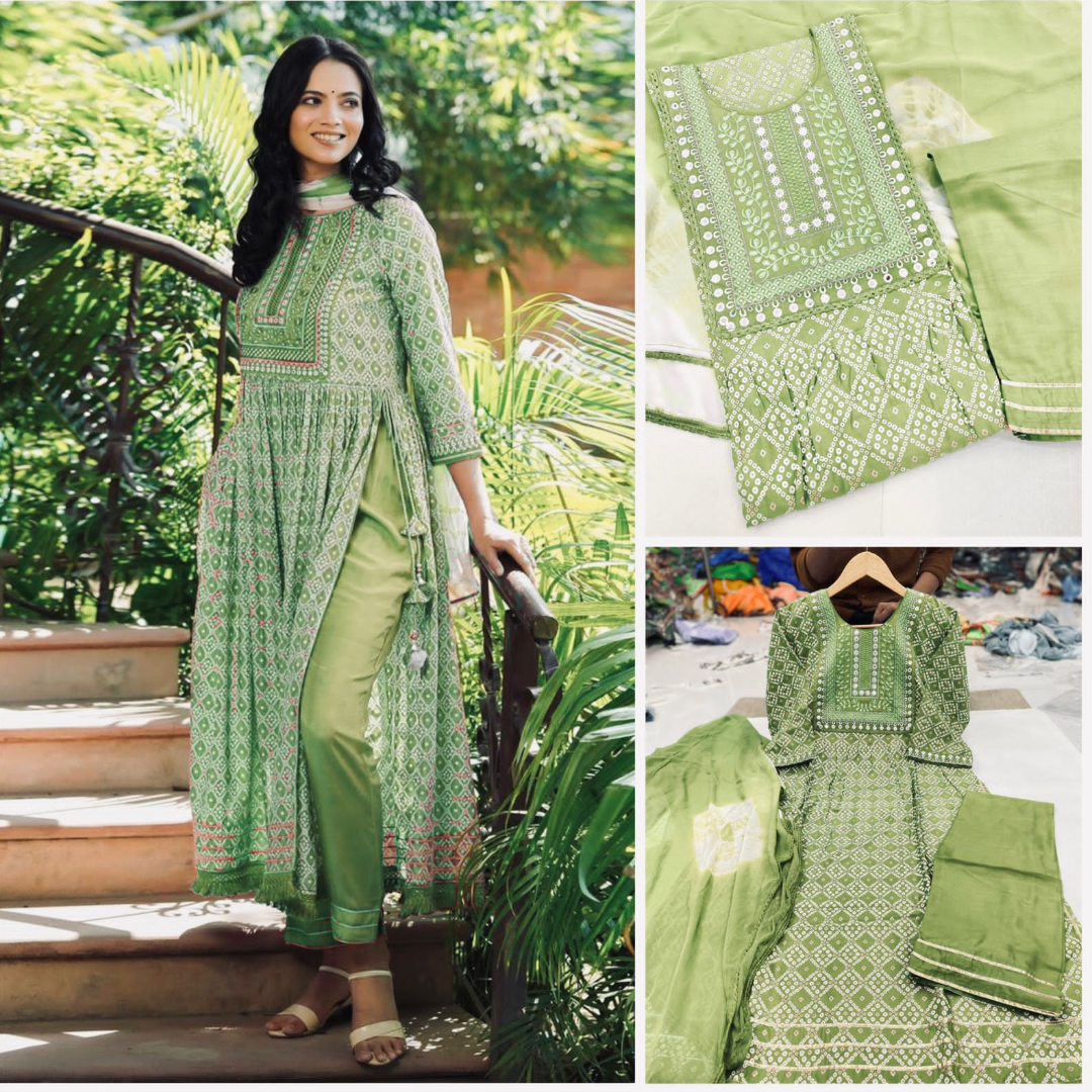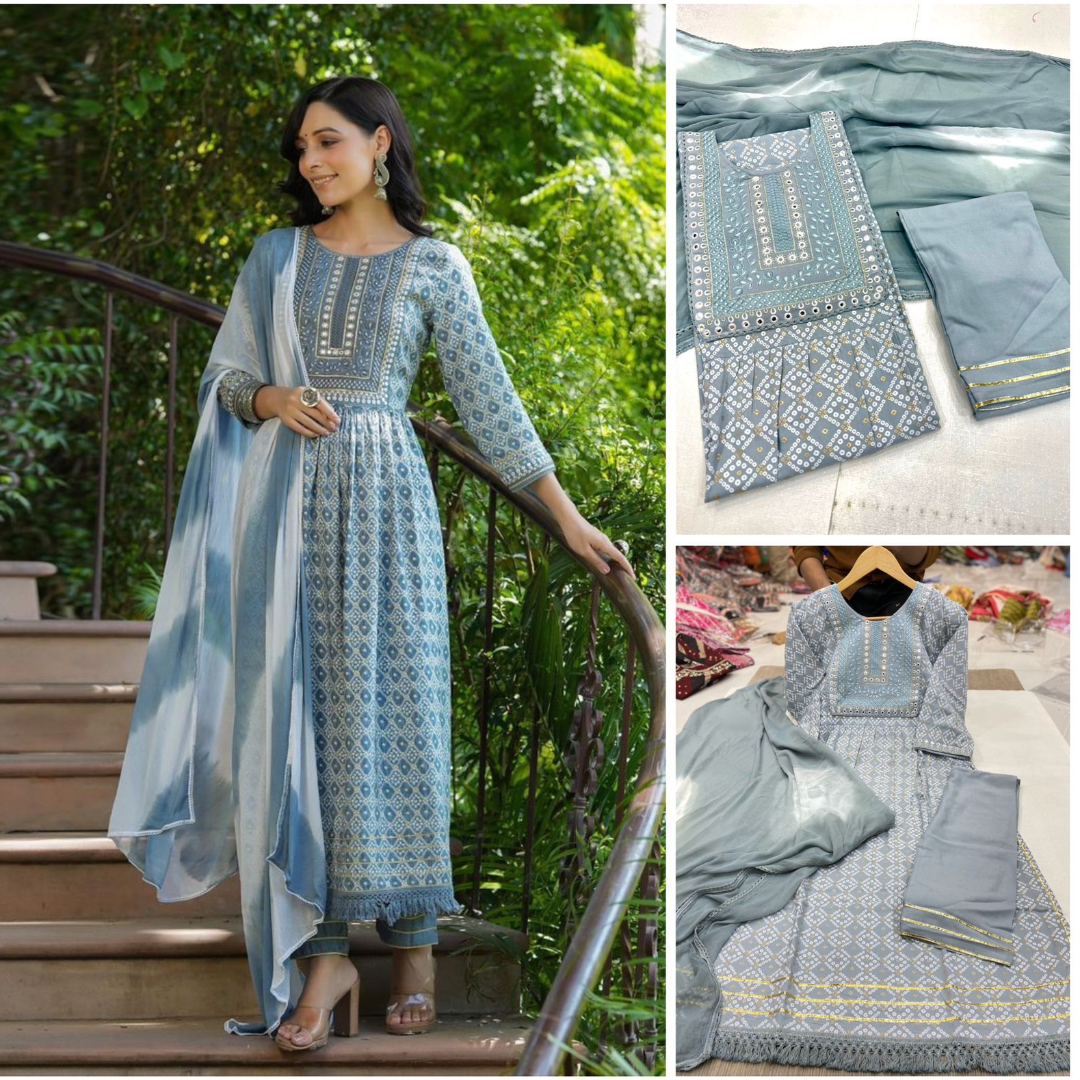 Pure Printed Rayon cotton with Embroidery work in neck and Sleeves and beautiful Nayraa cut with lace