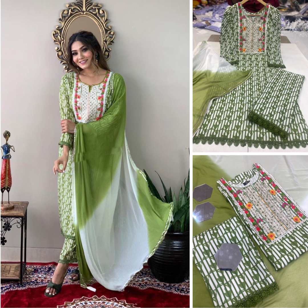 🧵Top: Pure Printed Rayon cotton with Embroidery work and beautiful lace
