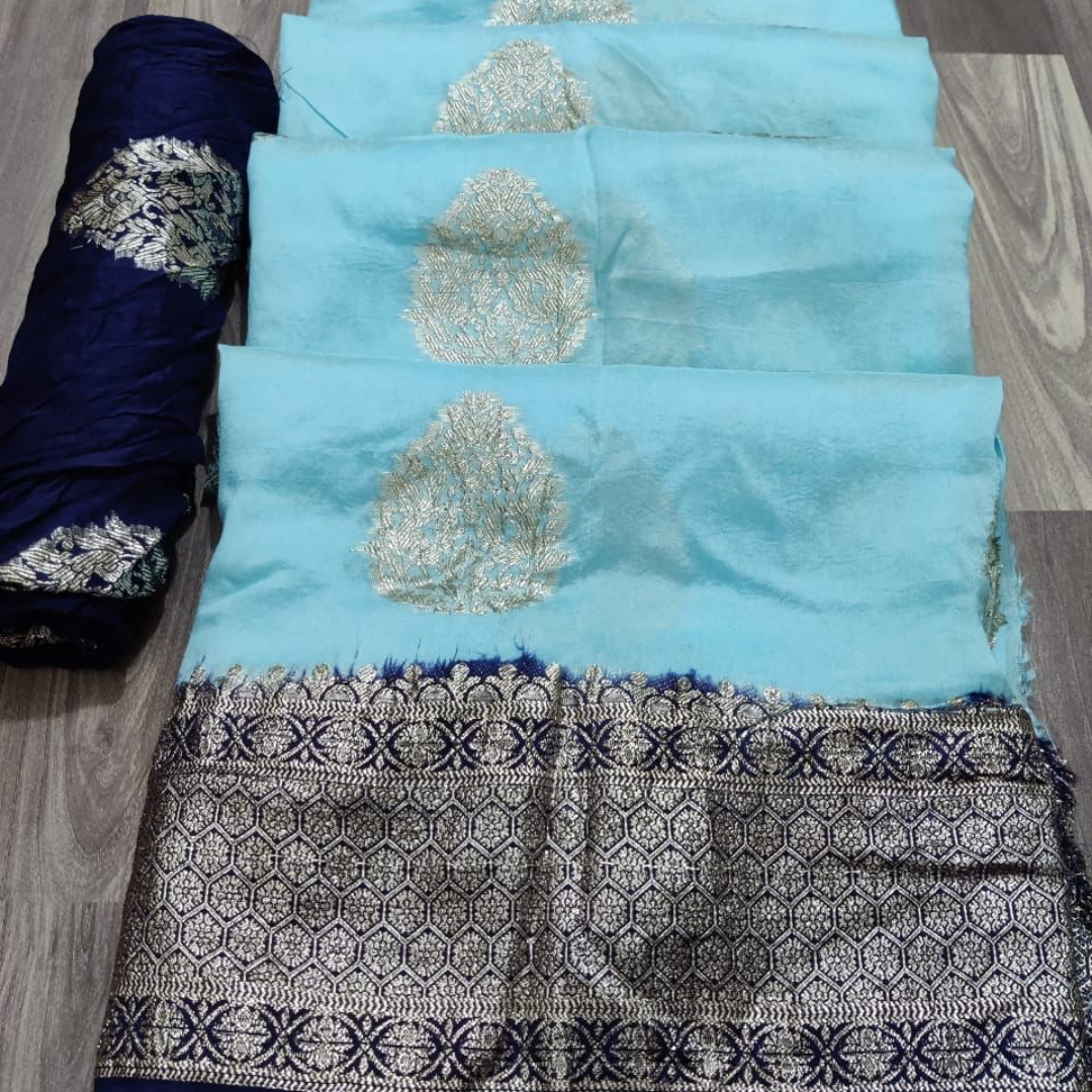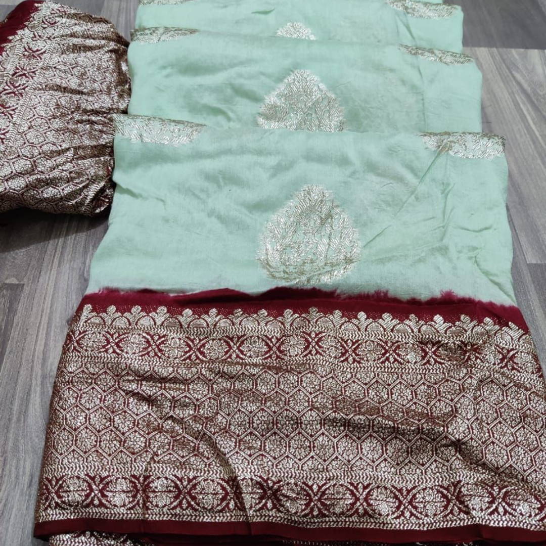 Pure Russian Silk Saree With Finest Zari Weaving in Full Saree With Contrast Dyeing Jacquard Wooven Border With Contrast Running Blouse
