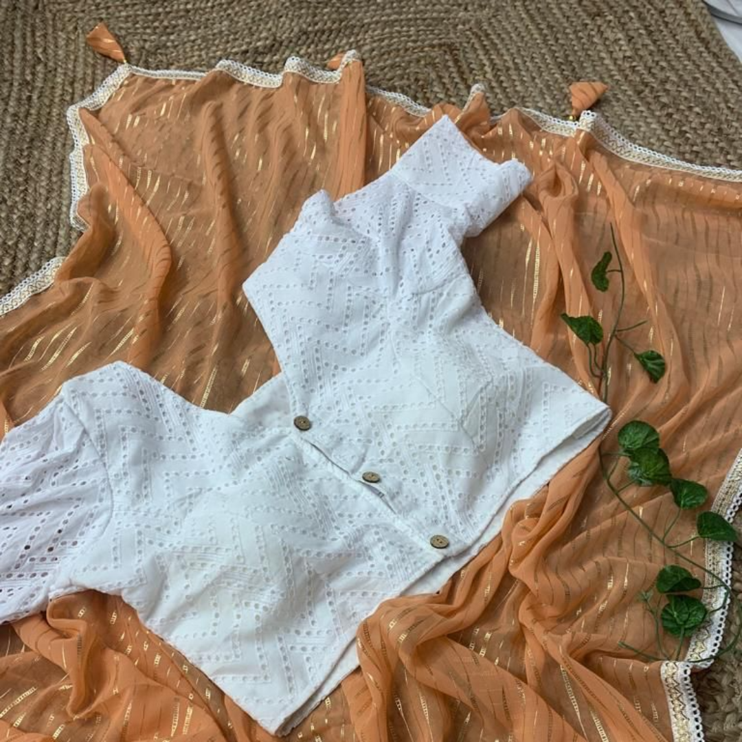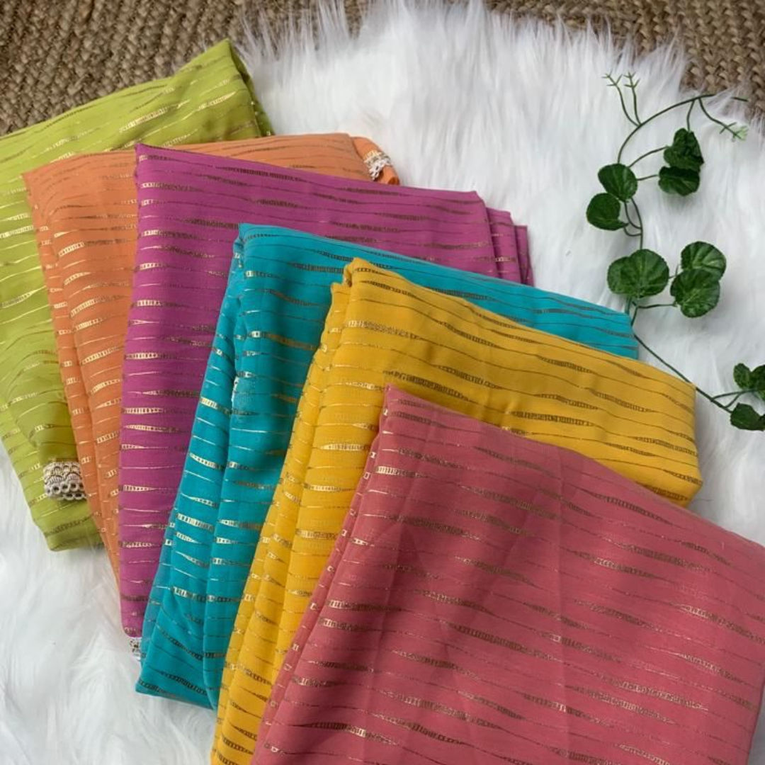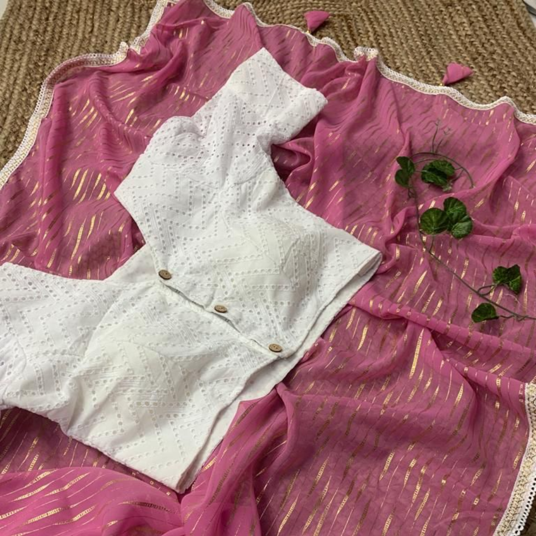 Pure soft georgette silk fabric with foil work in all over saree and fancy lace borders with latkan ..