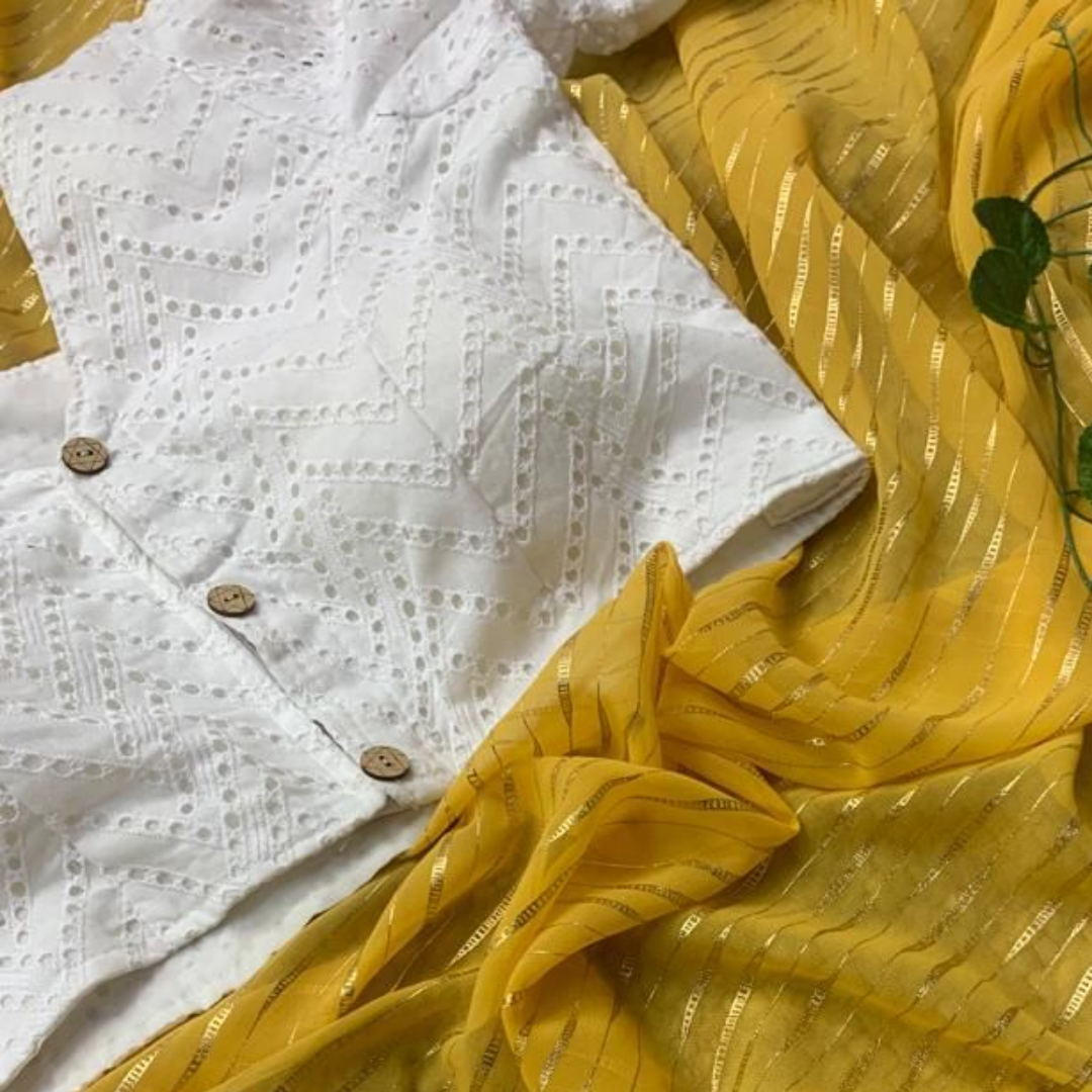 Paired with a fully stitched Hakuba embroidery blouse and buttons with a side puff...