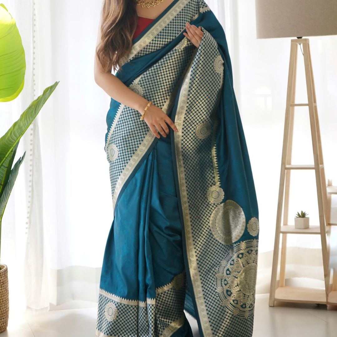 ✅STARLING ZARI WEAVING RICH COLOR WEDS SAREE