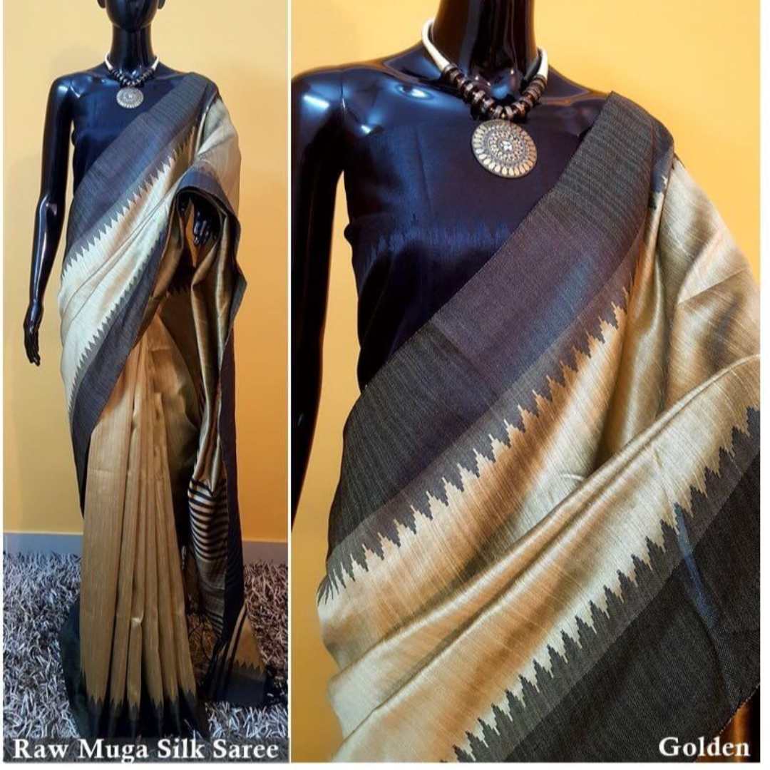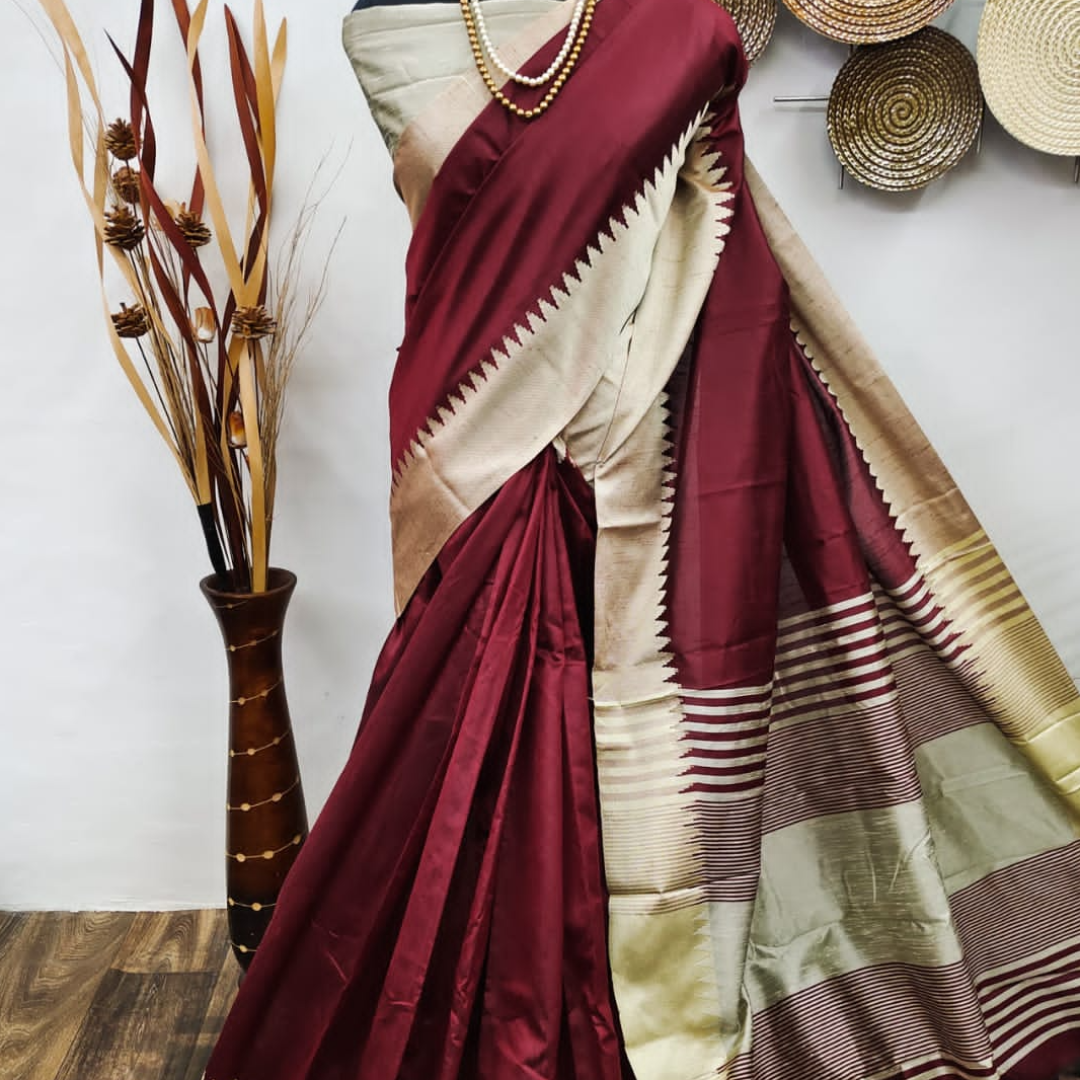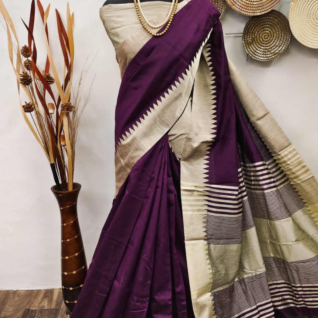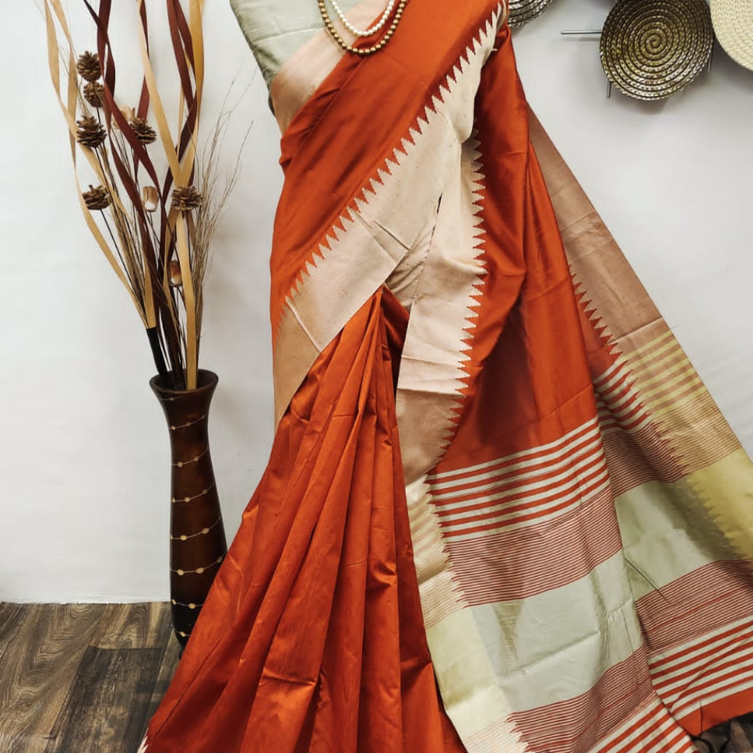 Raw Silk Saree With Khadi Weaving Pallu With Royal Tassels n Khadi Temple Weaving Border With Blouse As in Image
