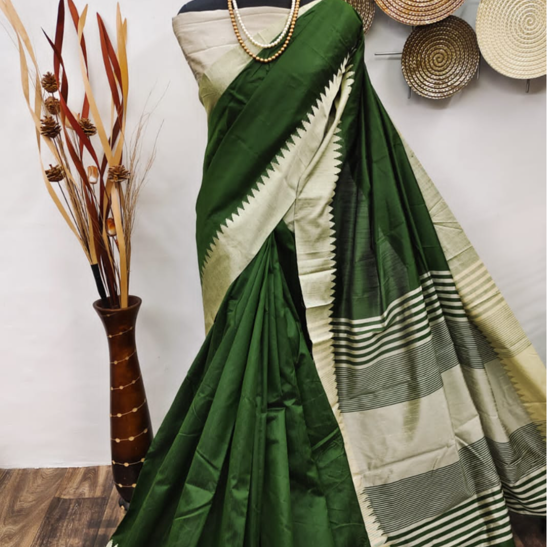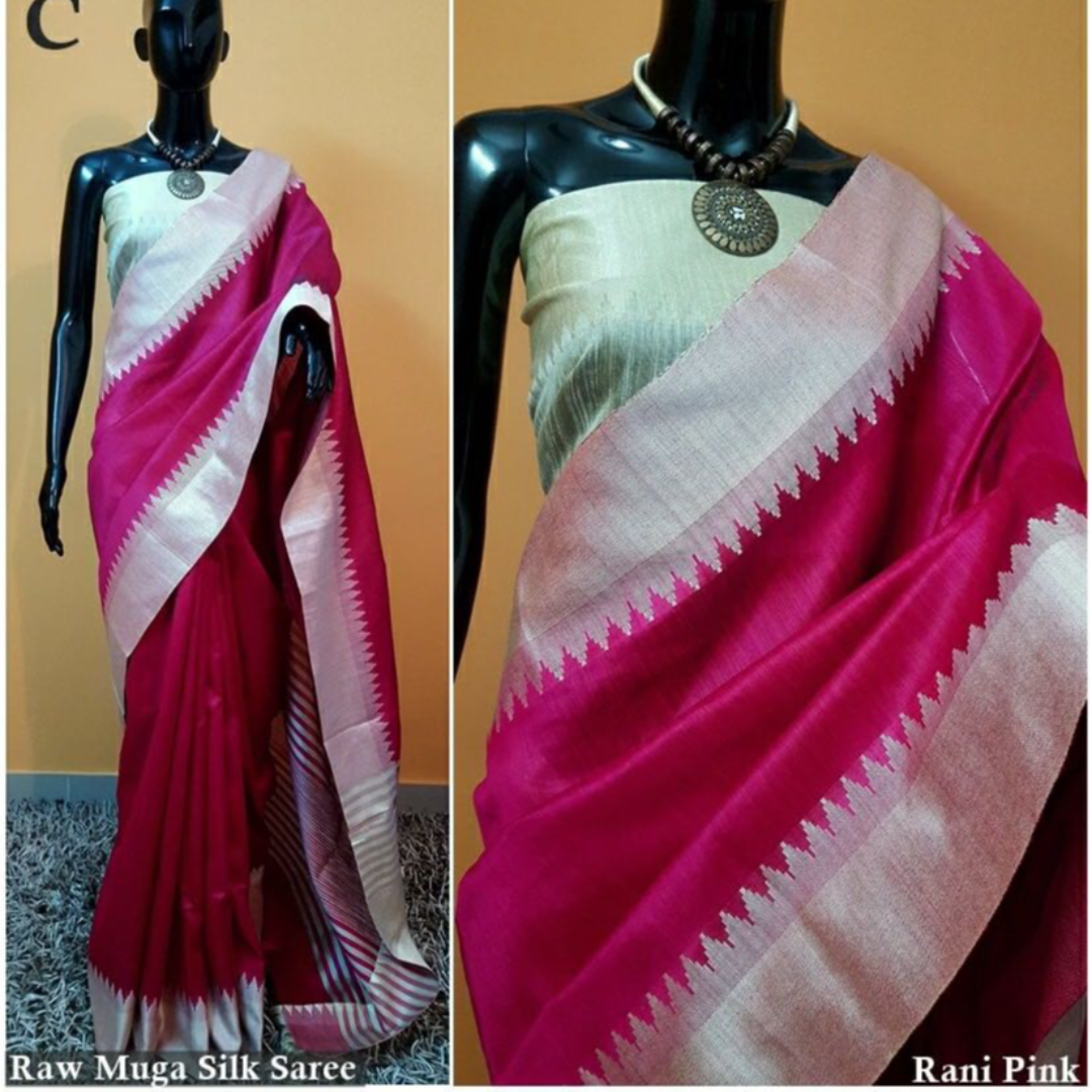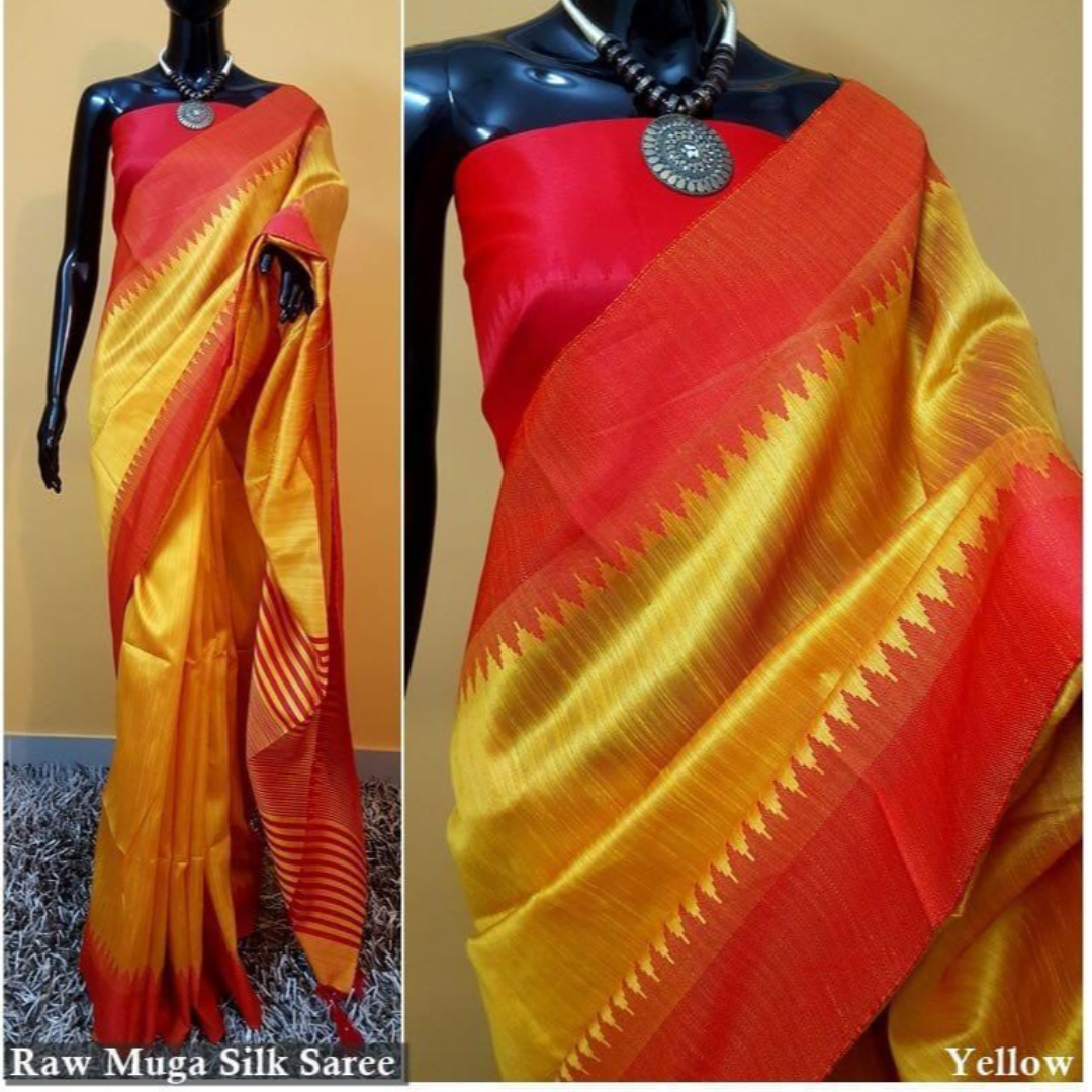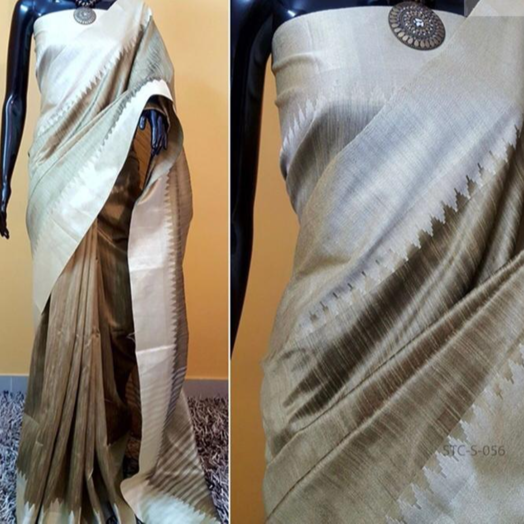 Raw Silk Saree With Khadi Weaving Pallu With Royal Tassels n Khadi Temple Weaving Border With Blouse As in Image