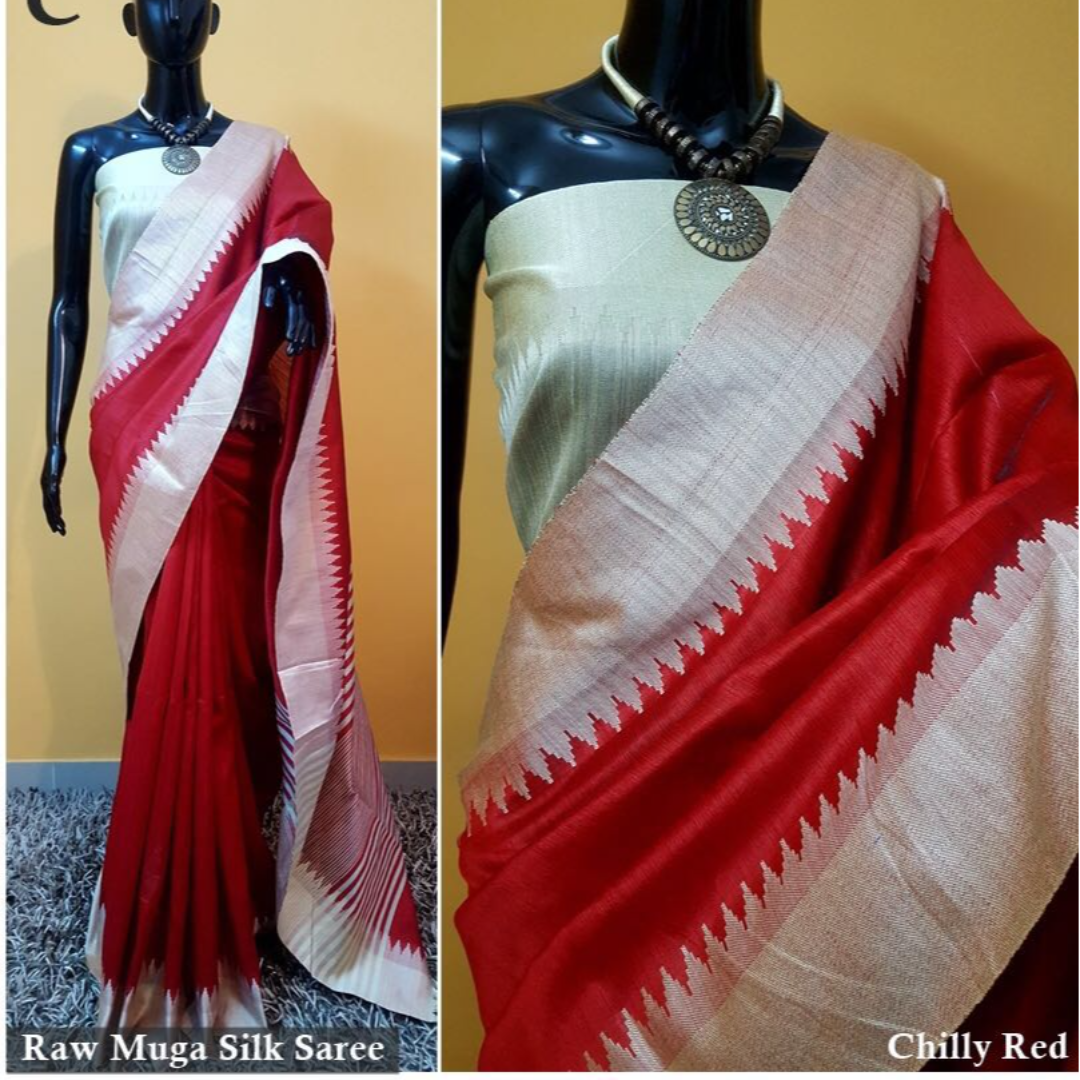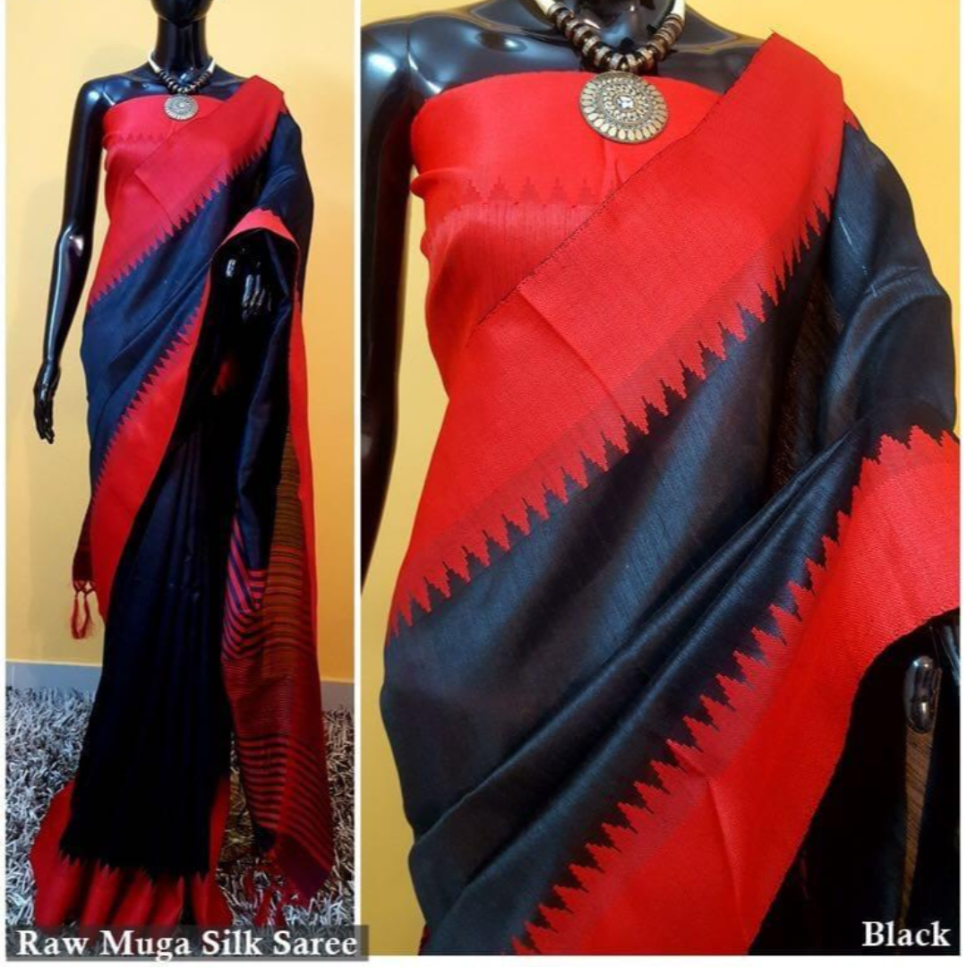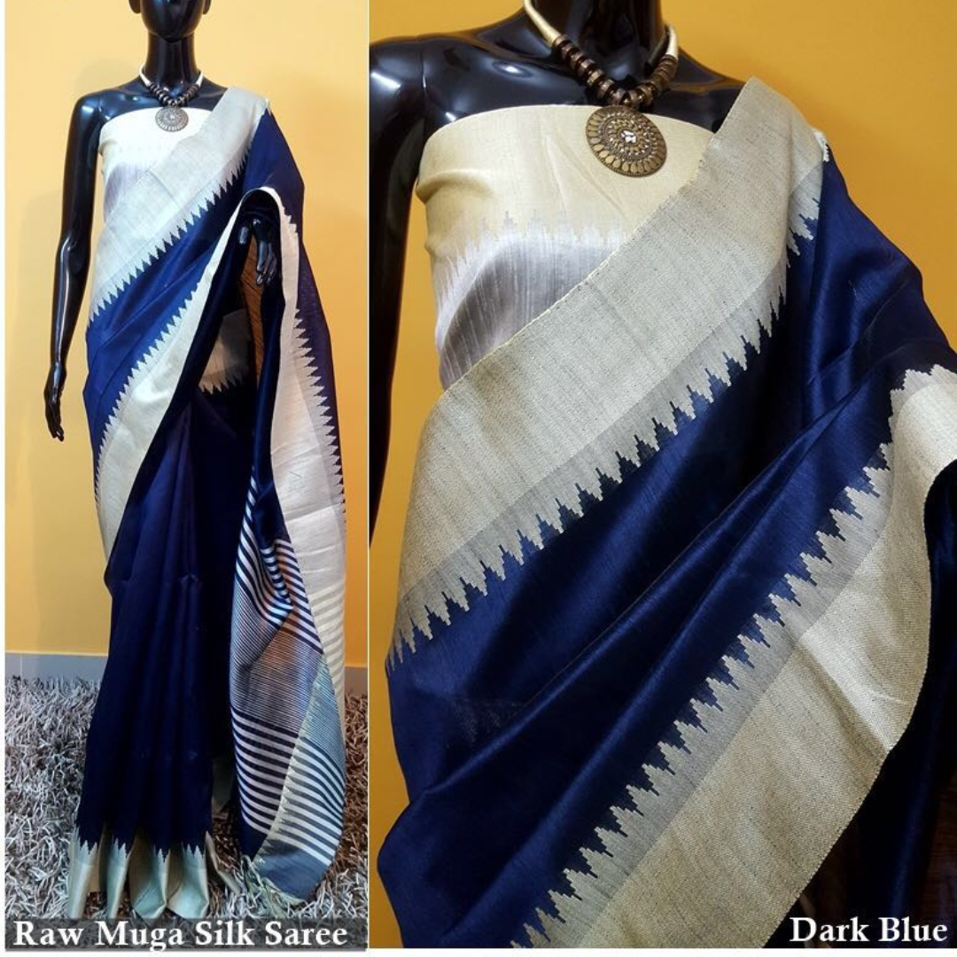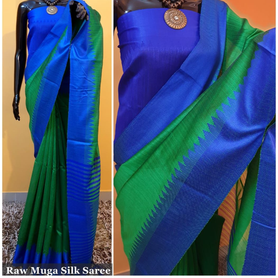 Raw Silk Saree With Khadi Weaving Pallu With Royal Tassels n Khadi Temple Weaving Border With Blouse As in Image