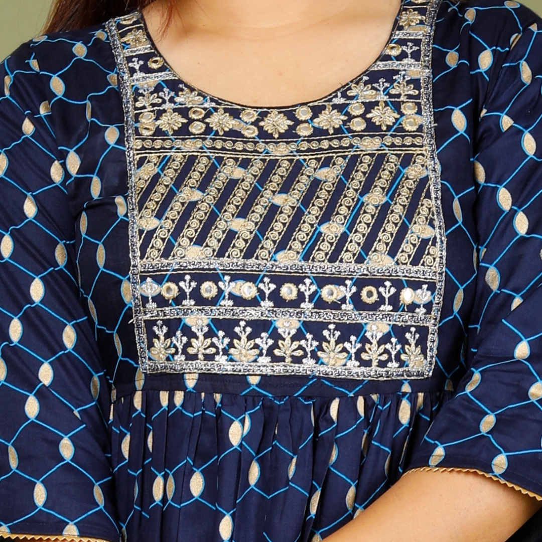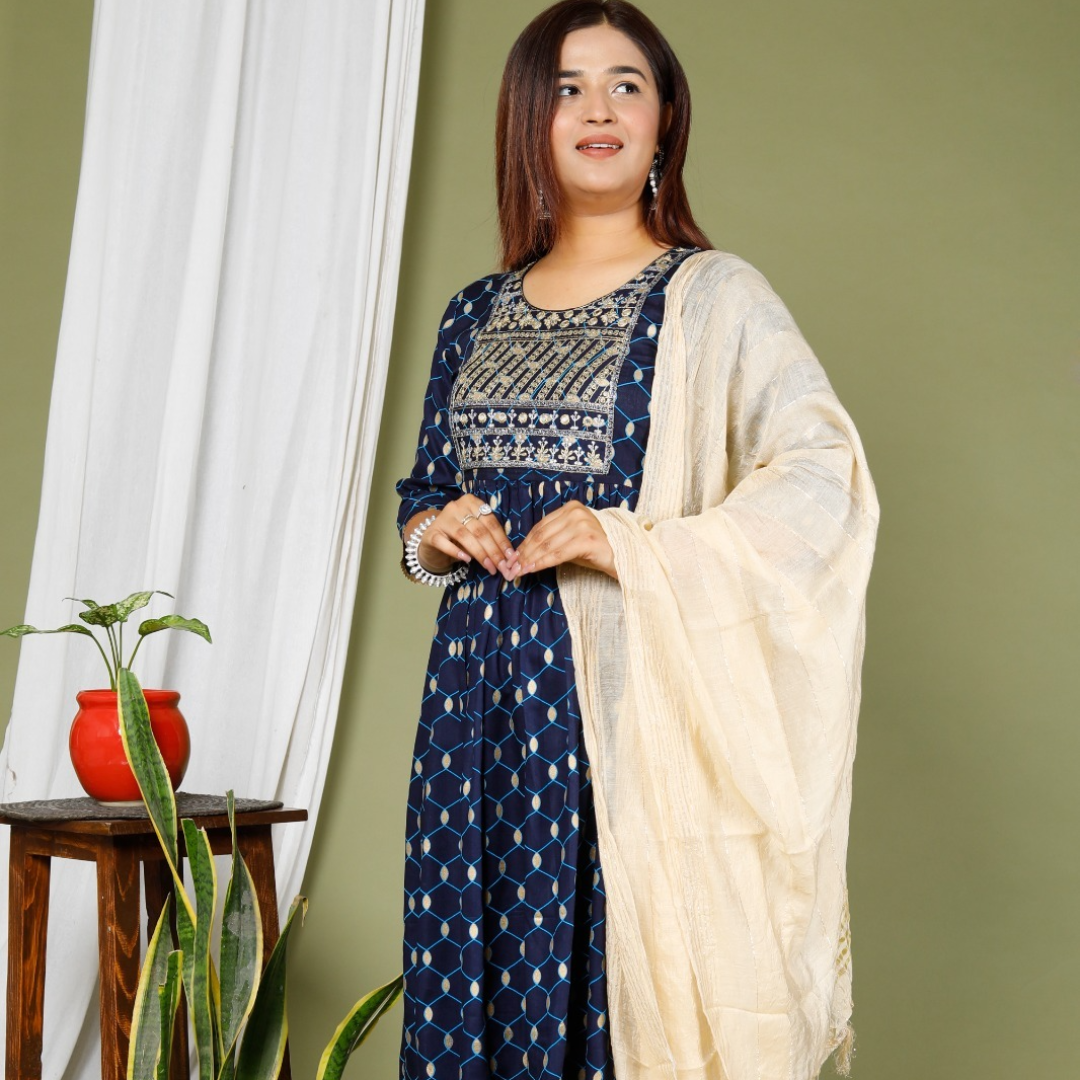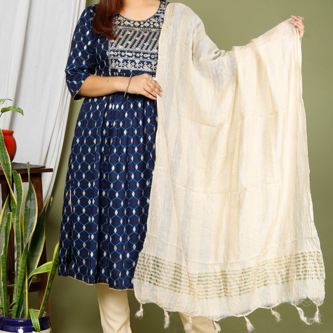 👗 Beautiful Rayon Fabric Naira Cuty Style Front Emeridoery Kurti With Printed Lace Work On Pant And Lurex Full Dupatta 3 Piece Set