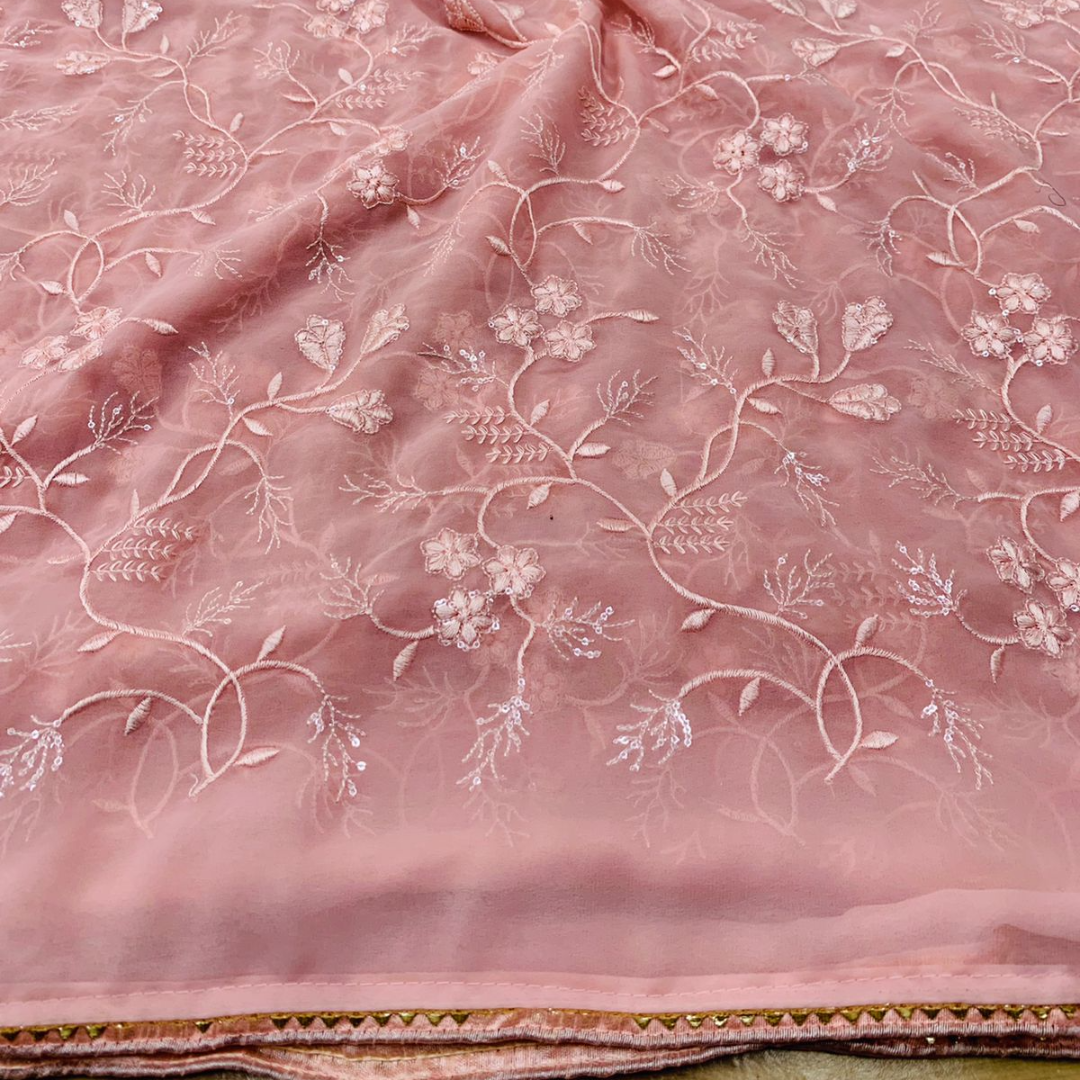 RUNNING GEORGETTE WITH piping SAREE