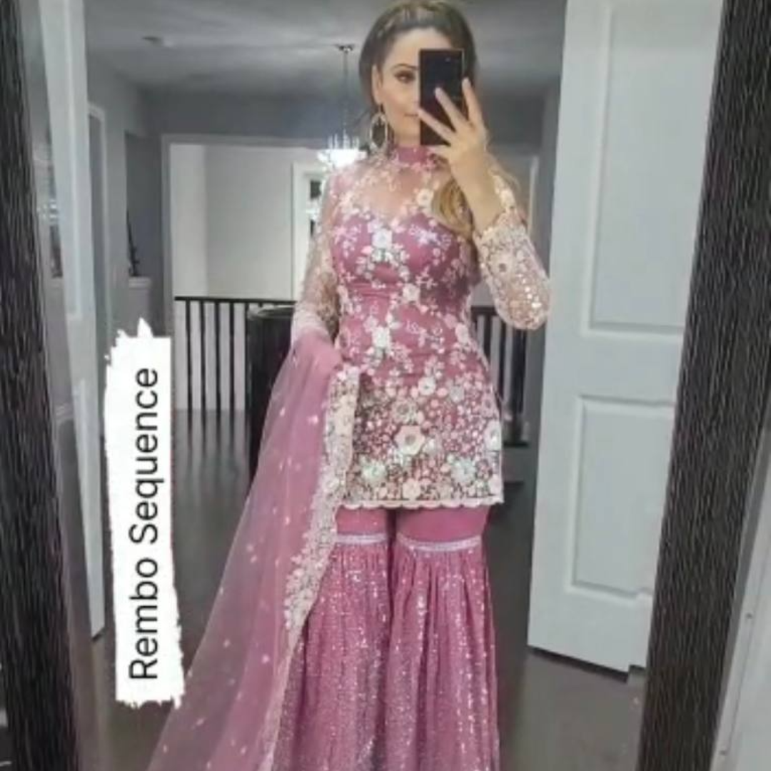 *Dupatta Fabric *: Heavy Net With 5mm Rembo Embroidery Sequence Work and Heavy Embroidery Sequence Lace Border