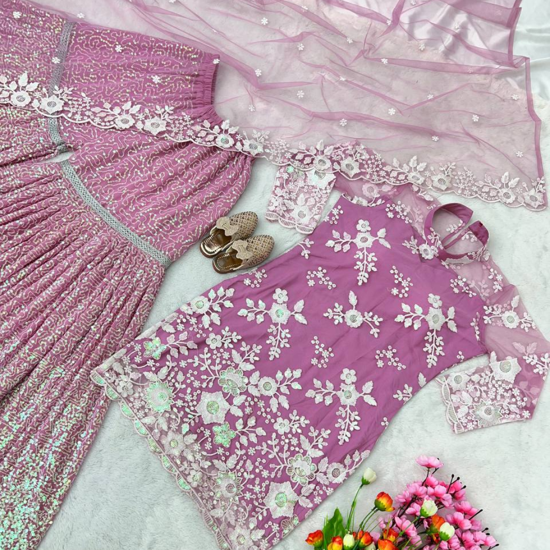 *Top Fabric *: Heavy Net With Heavy 5mm Rembo Embroidery Sequence Work With Full Sleeve With Latkan Dori