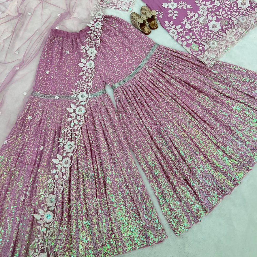 Plazzo Fabrics: Heavy Faux Georgette With 5mm Embroidery Sequence Work With Fully Flair