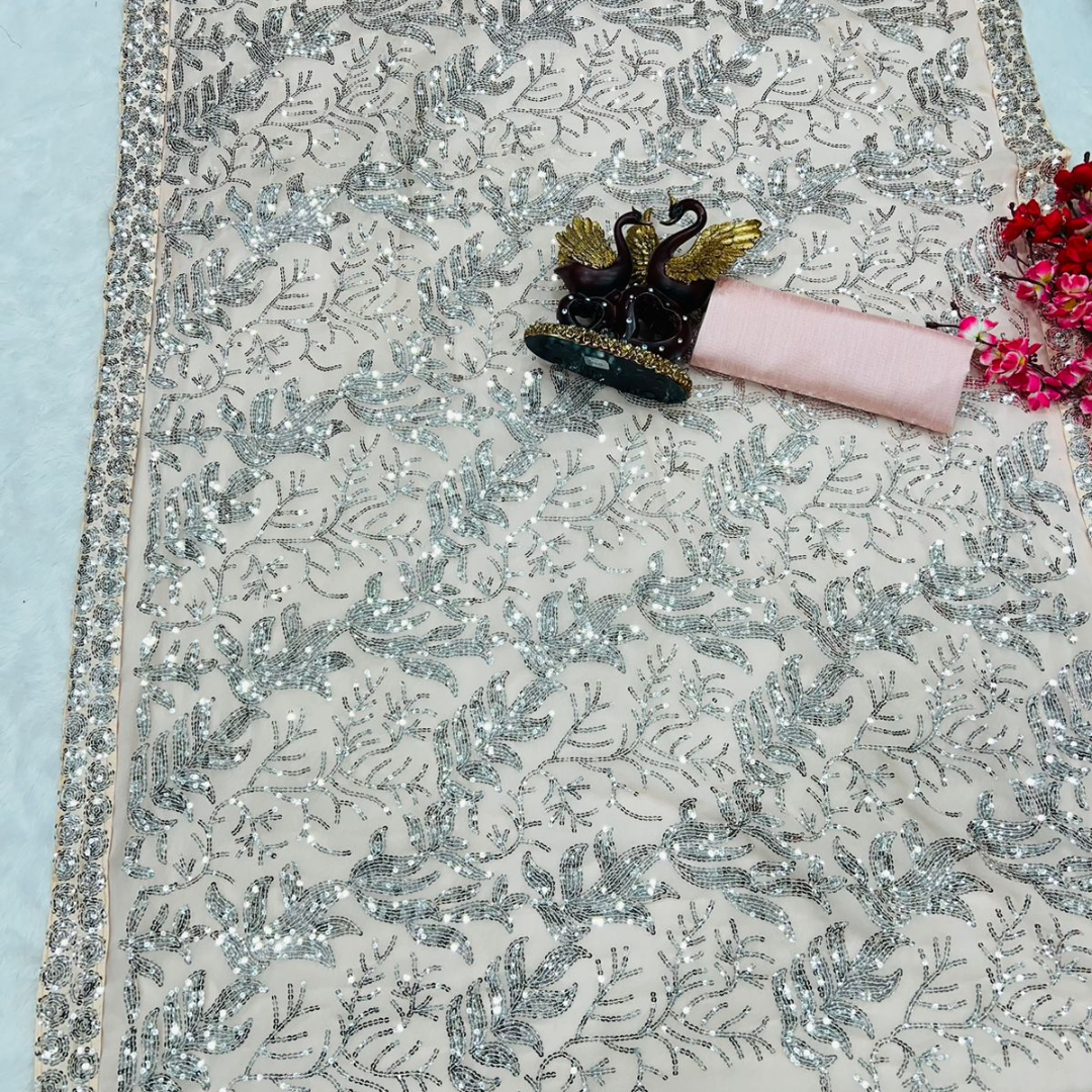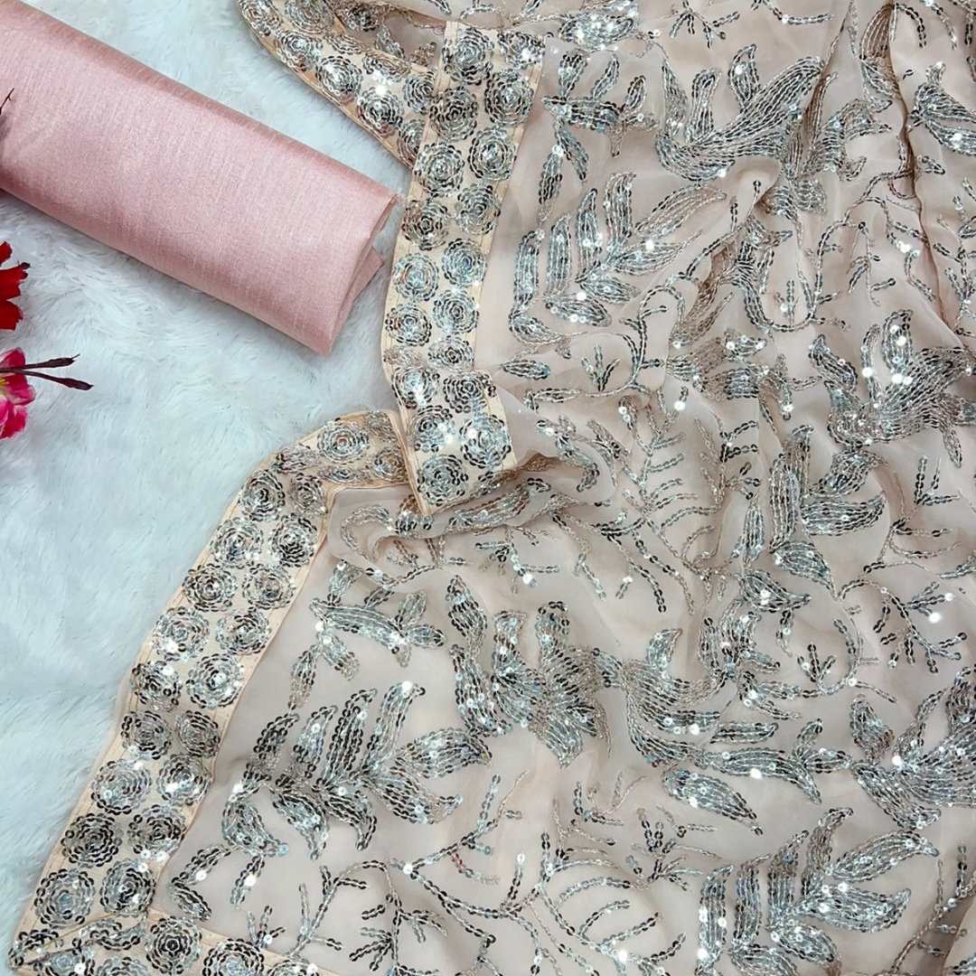 ⭕ WORK : Beautiful Sequance Embroidery work in double run with sequins lace border