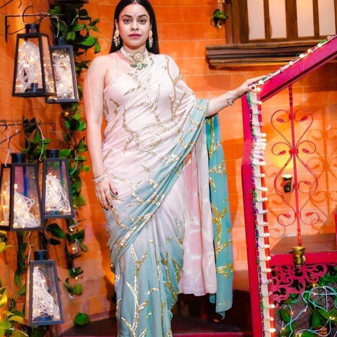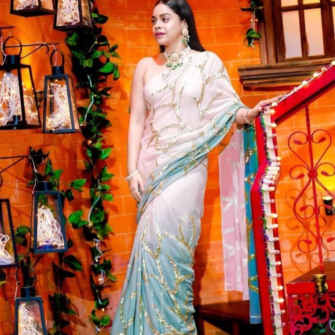 SEQUENCE WORK COMES ON ALL OVER THE SAREE