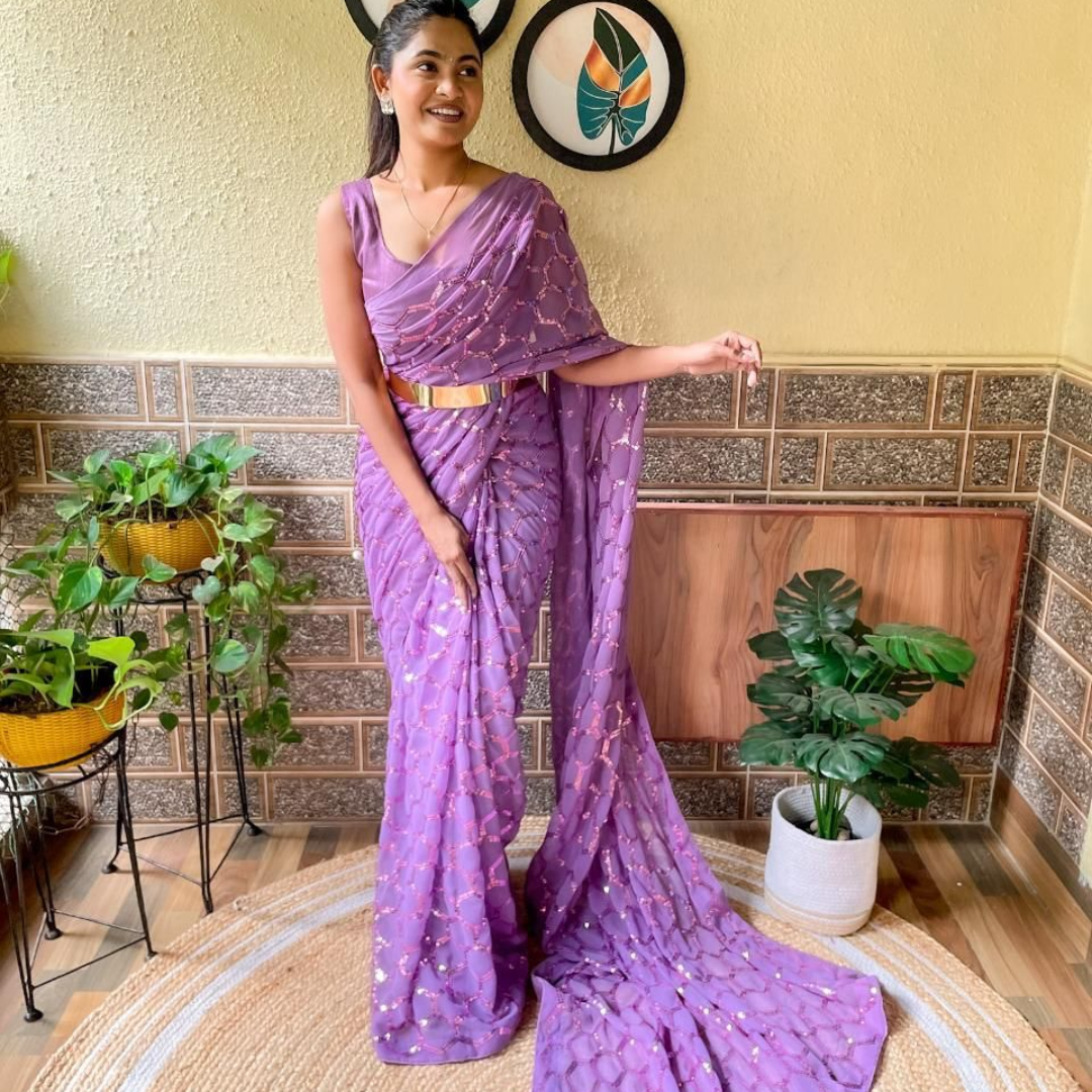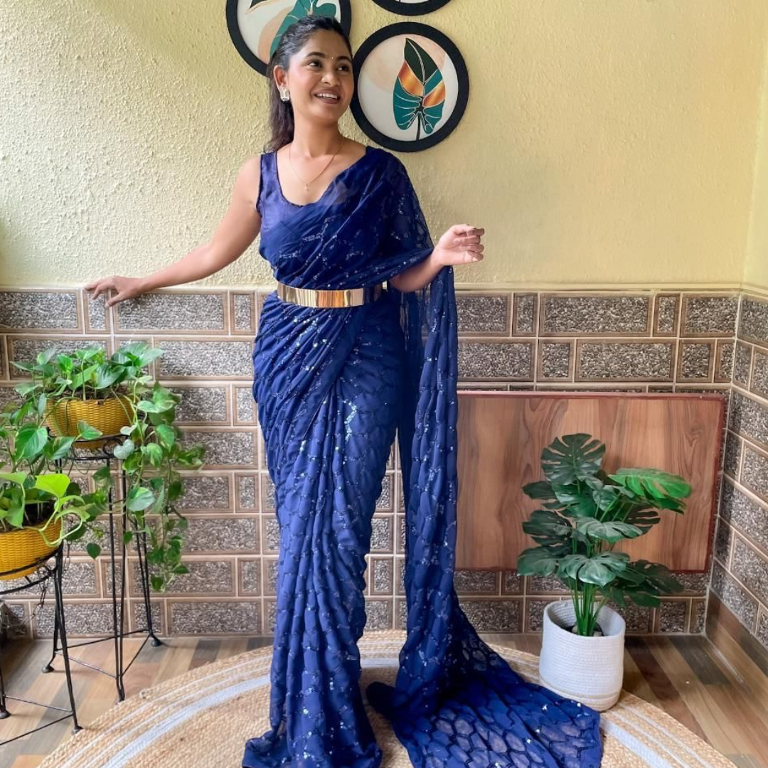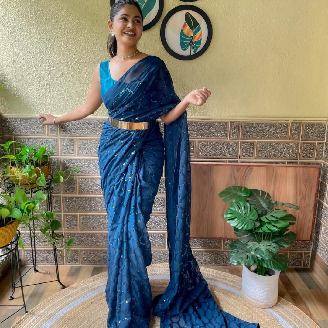 Saree : Premium georgette with seqwance work saree & Back support lace border with piping ( 1 Min Saree )