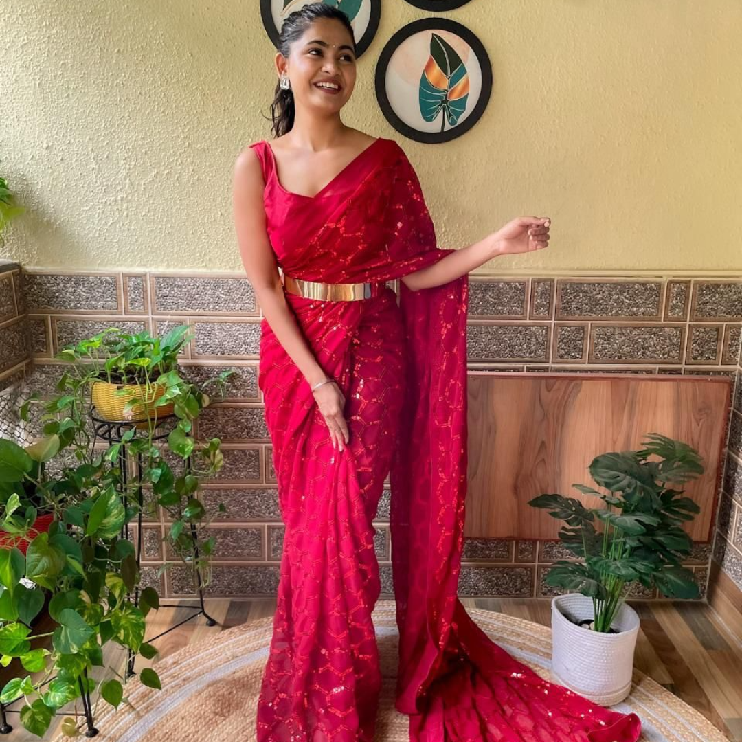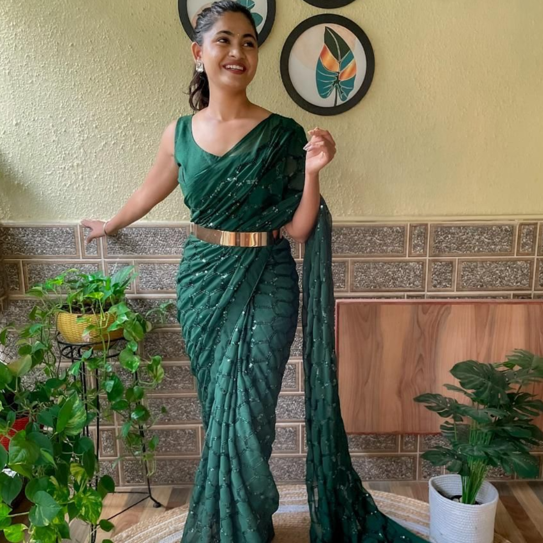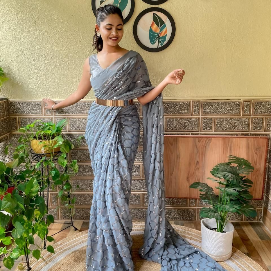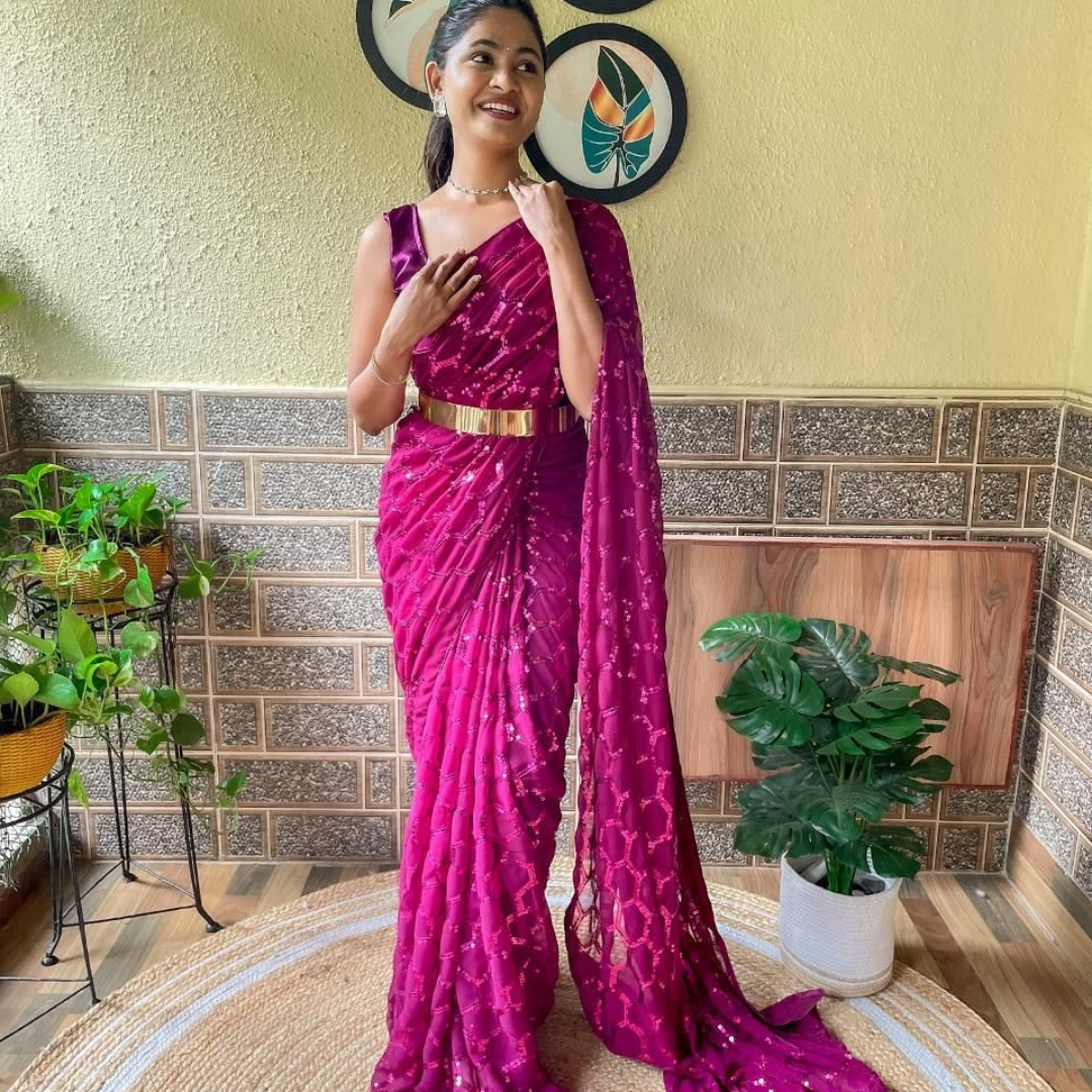 Saree : Premium georgette with seqwance work saree & Back support lace border with piping ( 1 Min Saree )