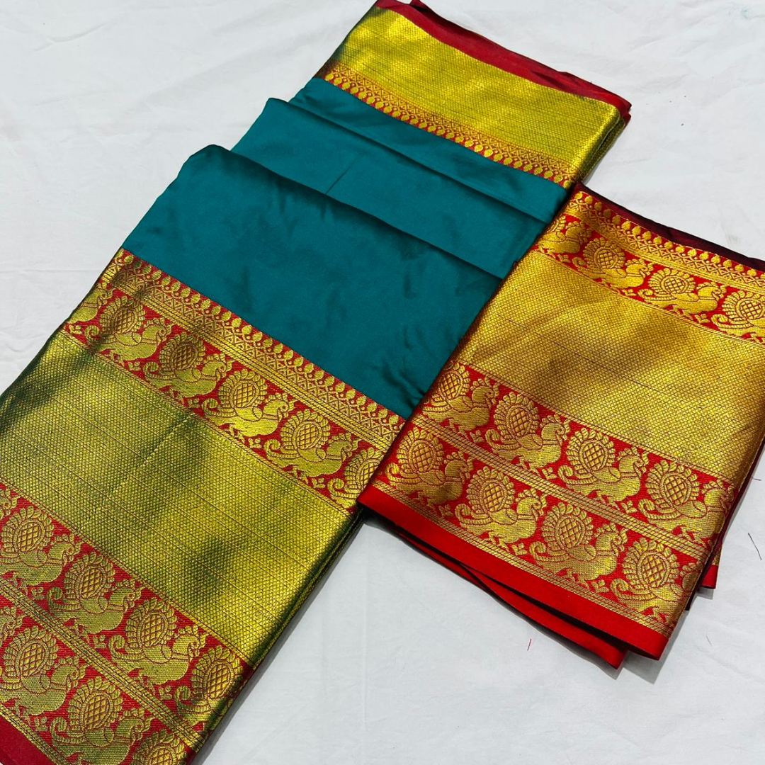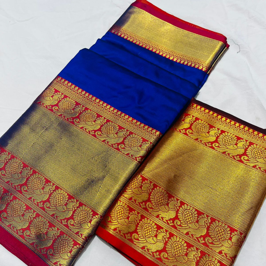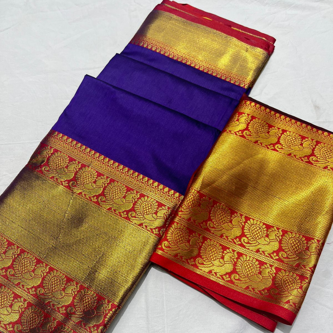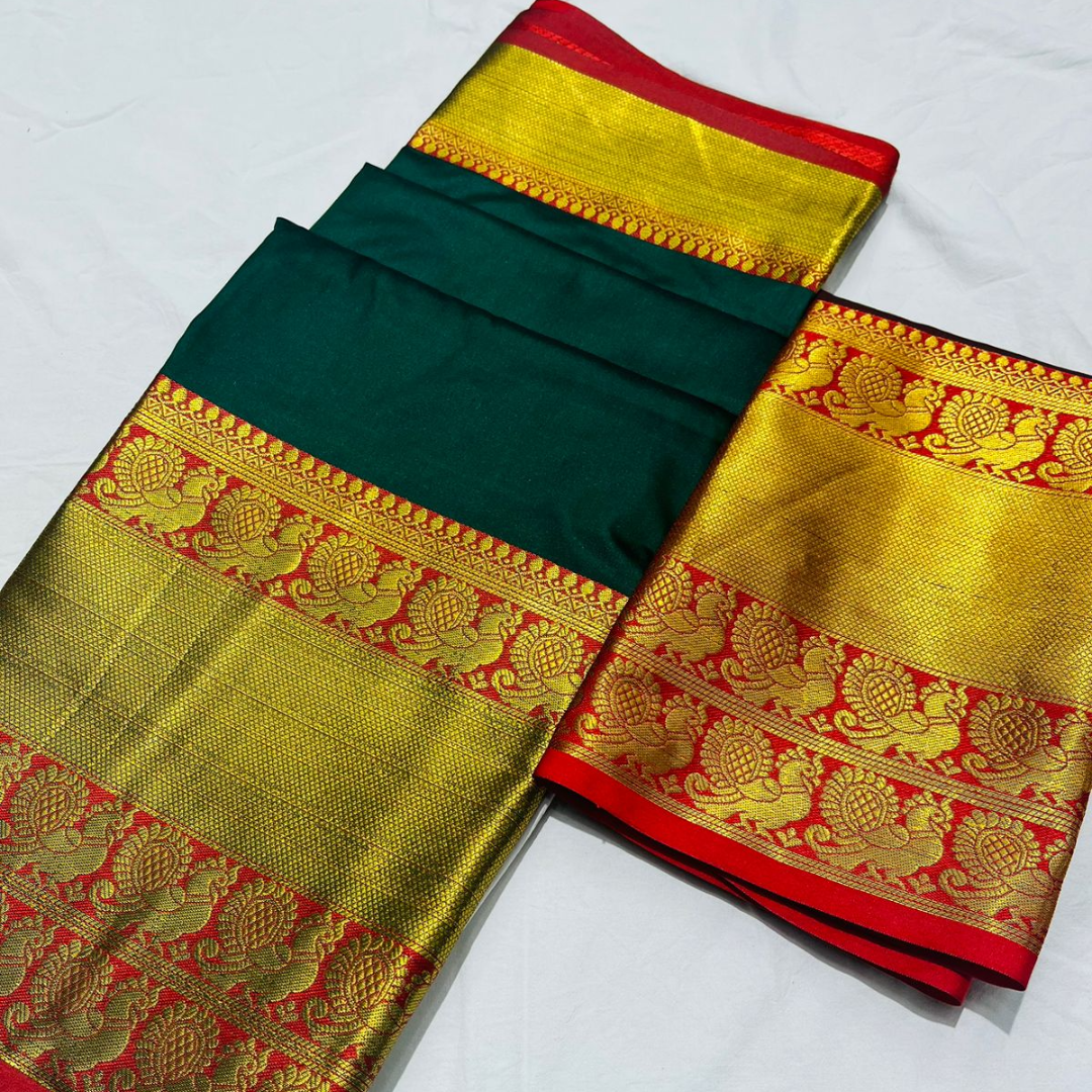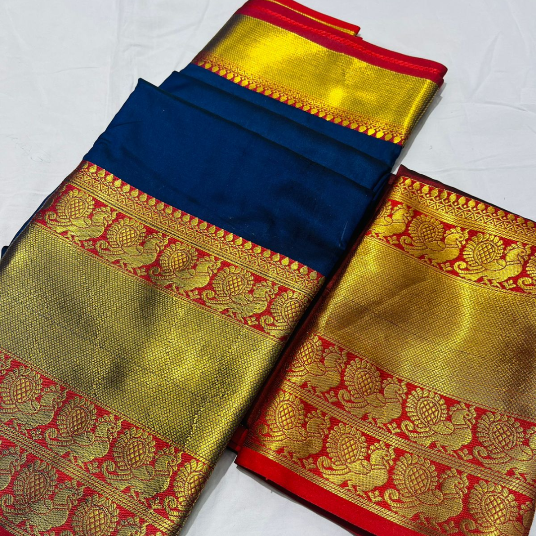 💐Fabric: Beautifully Woven Mysore Silk Saree with broad contrast borders of the saree.