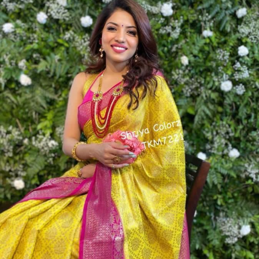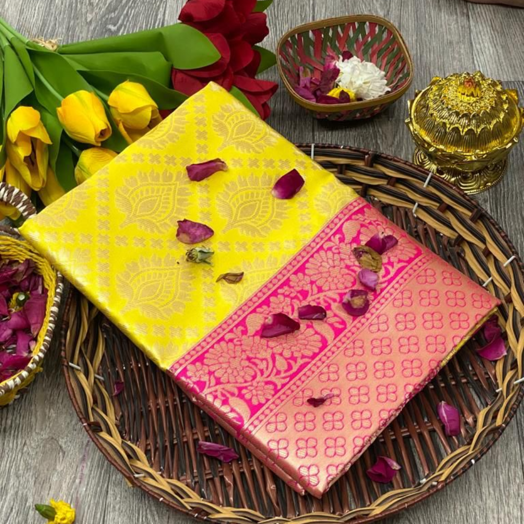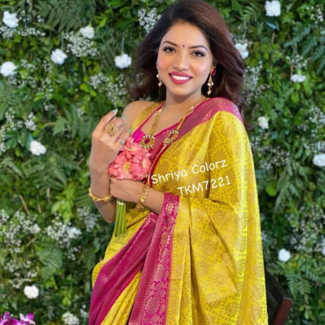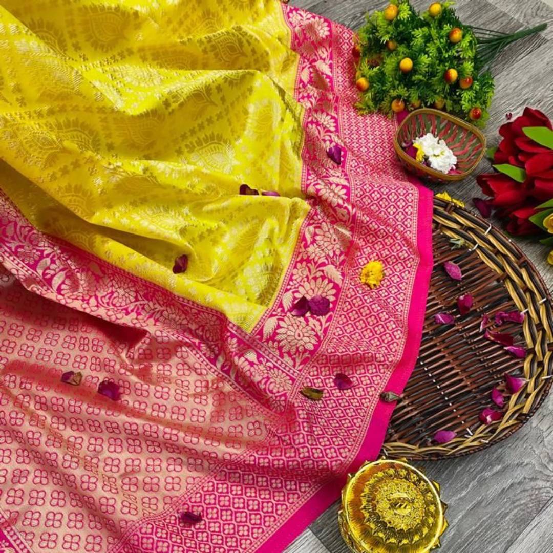 SHREYA YELLOW & PINK COMBINATION SAREE CATLOG