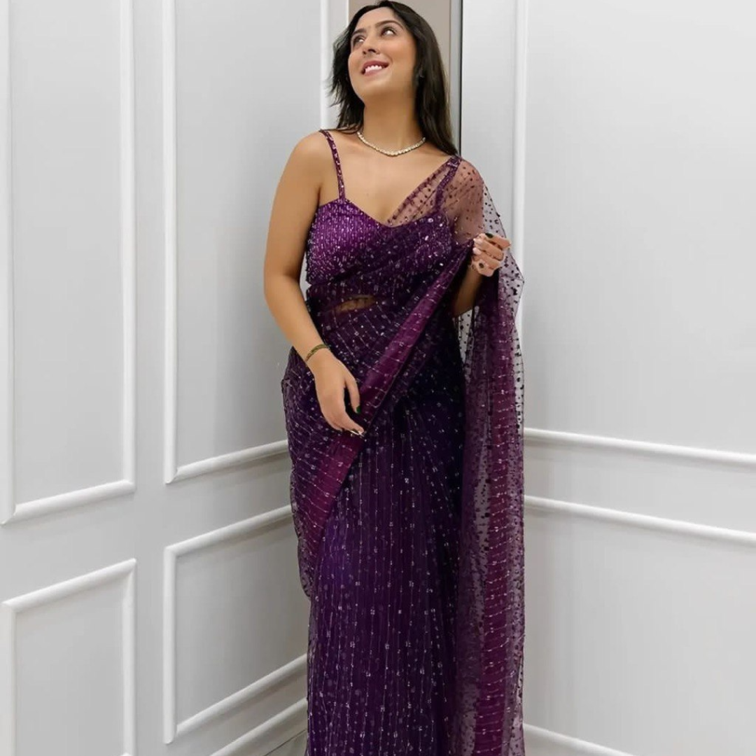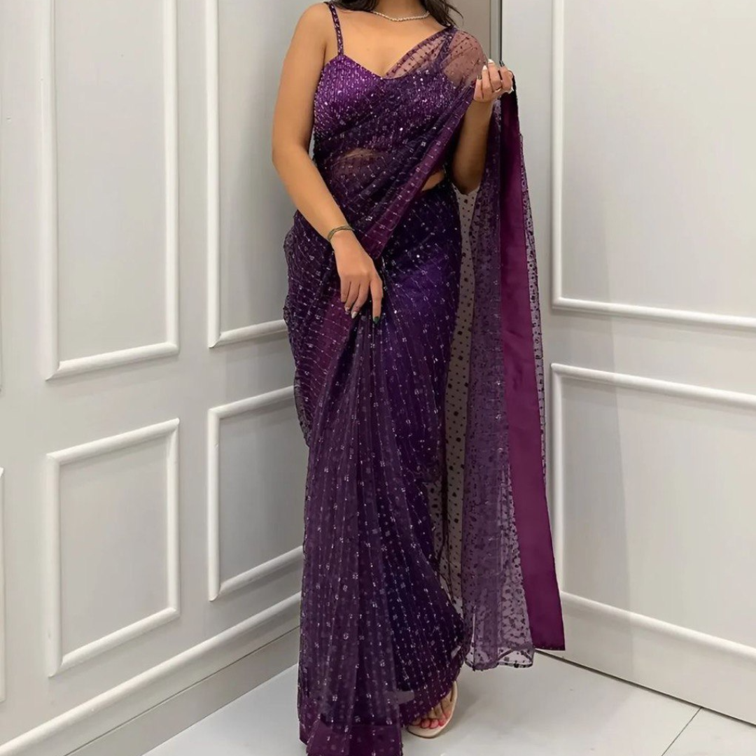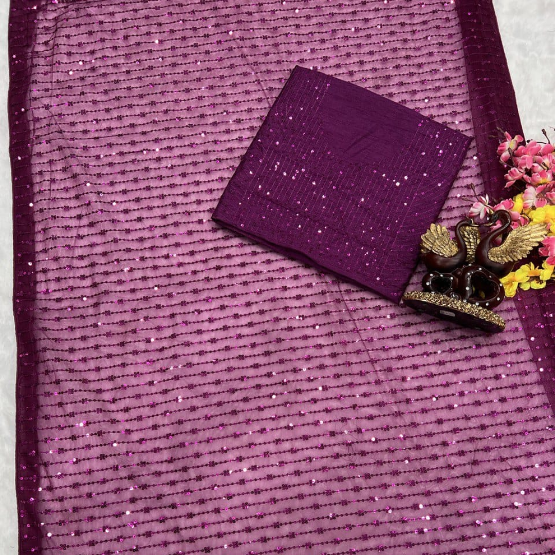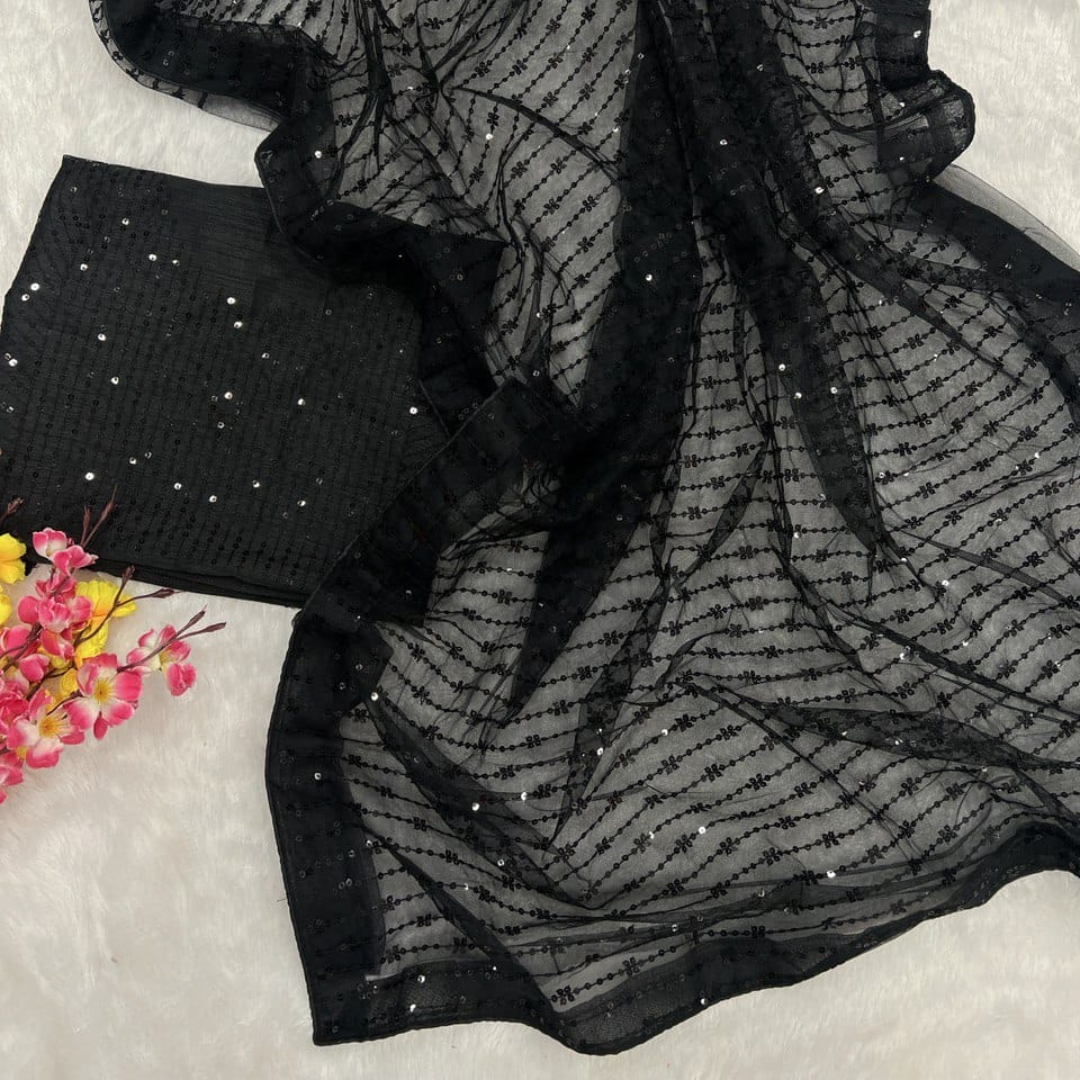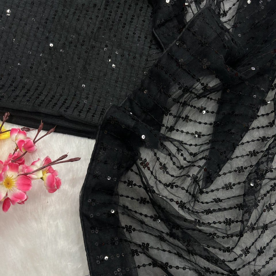 ⭕ WORK: Beautiful fancy Sequence Embroidery work with a back patch in the border