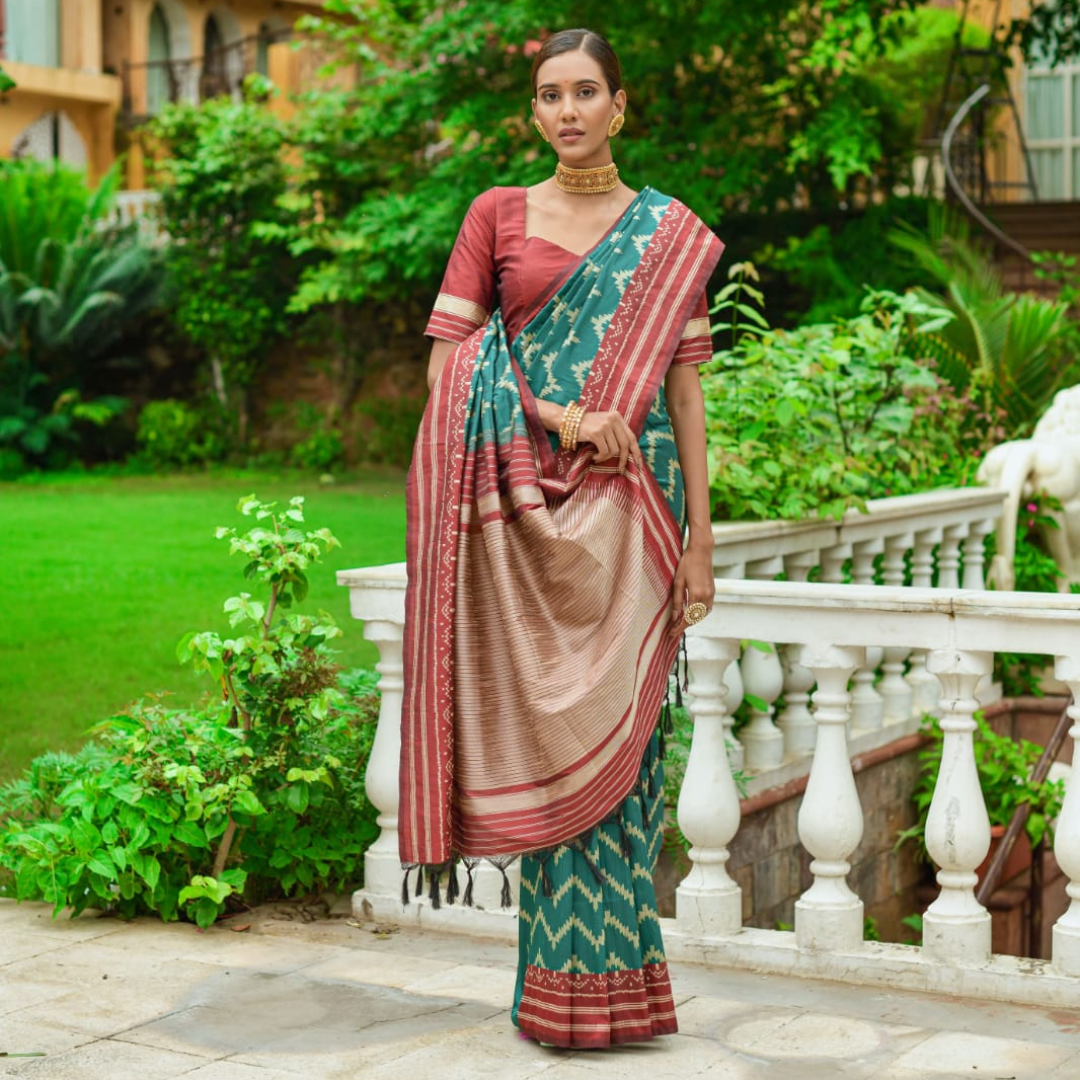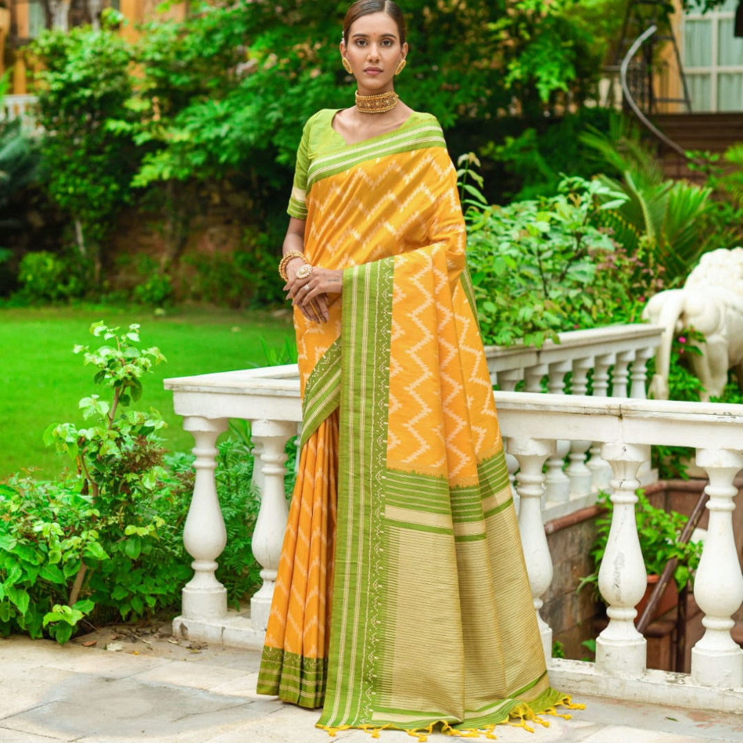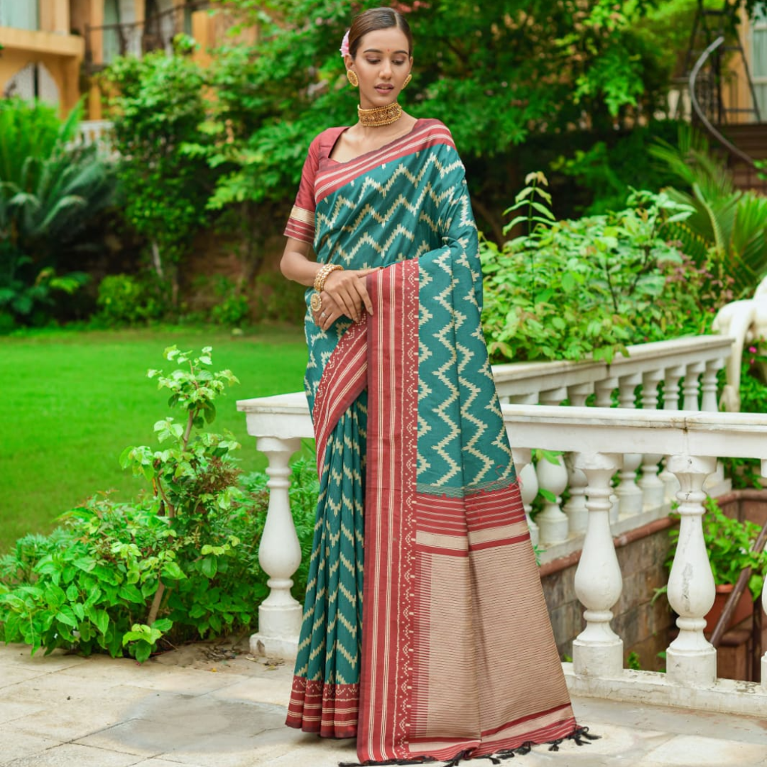 🔥Fabric: Soft Raw Silk Two tone Weaving saree With Antique Design with Exclusive contrast woven pallu and border