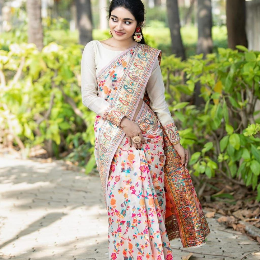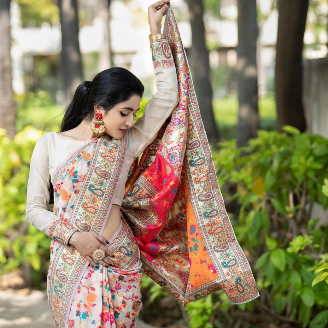 Beautiful saree ..multiple minakari weaving with pashmina saree concept