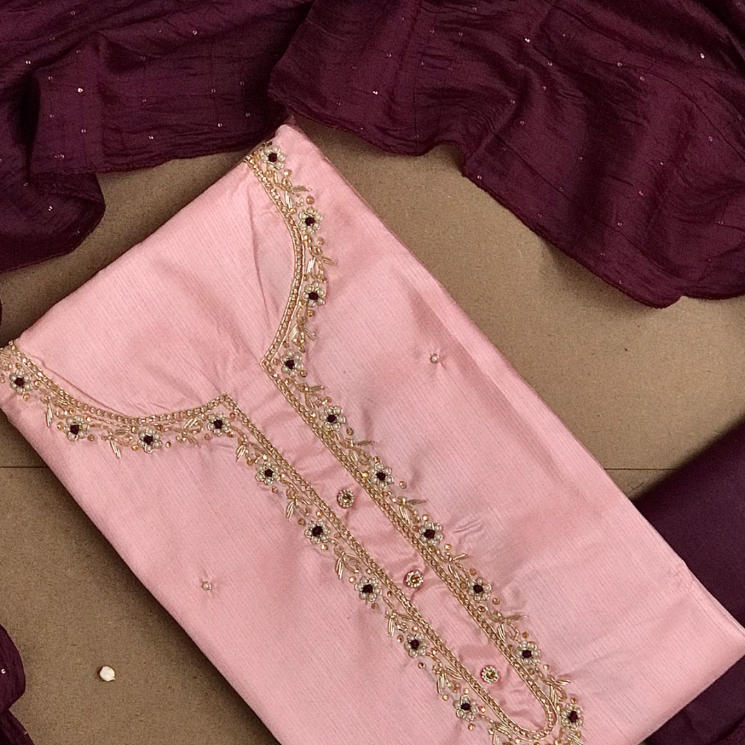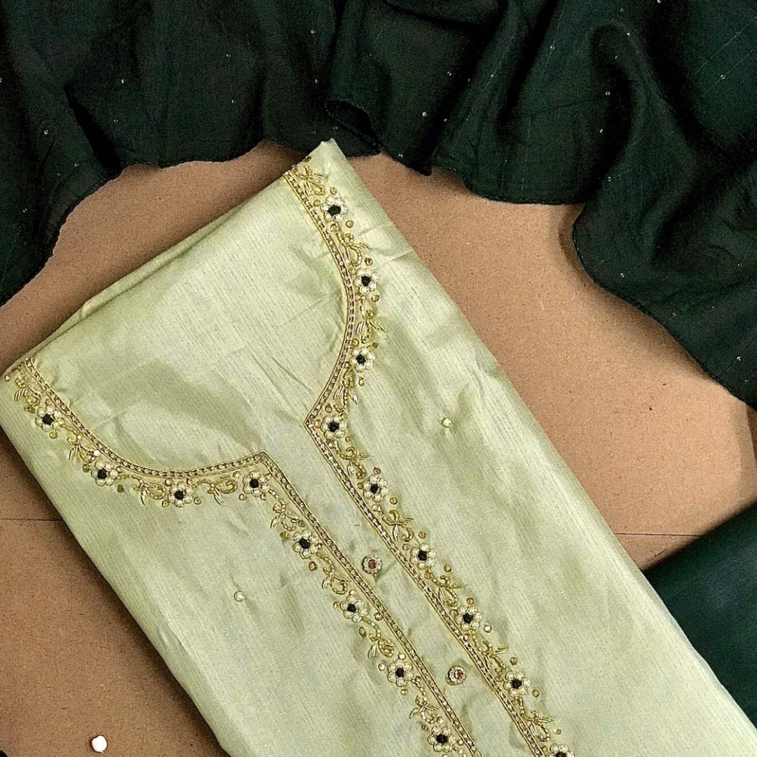 ๐ *TOP- SOUTH SILK WITH BEADS AND JARDOSI HANDWORK (2 MTR)*